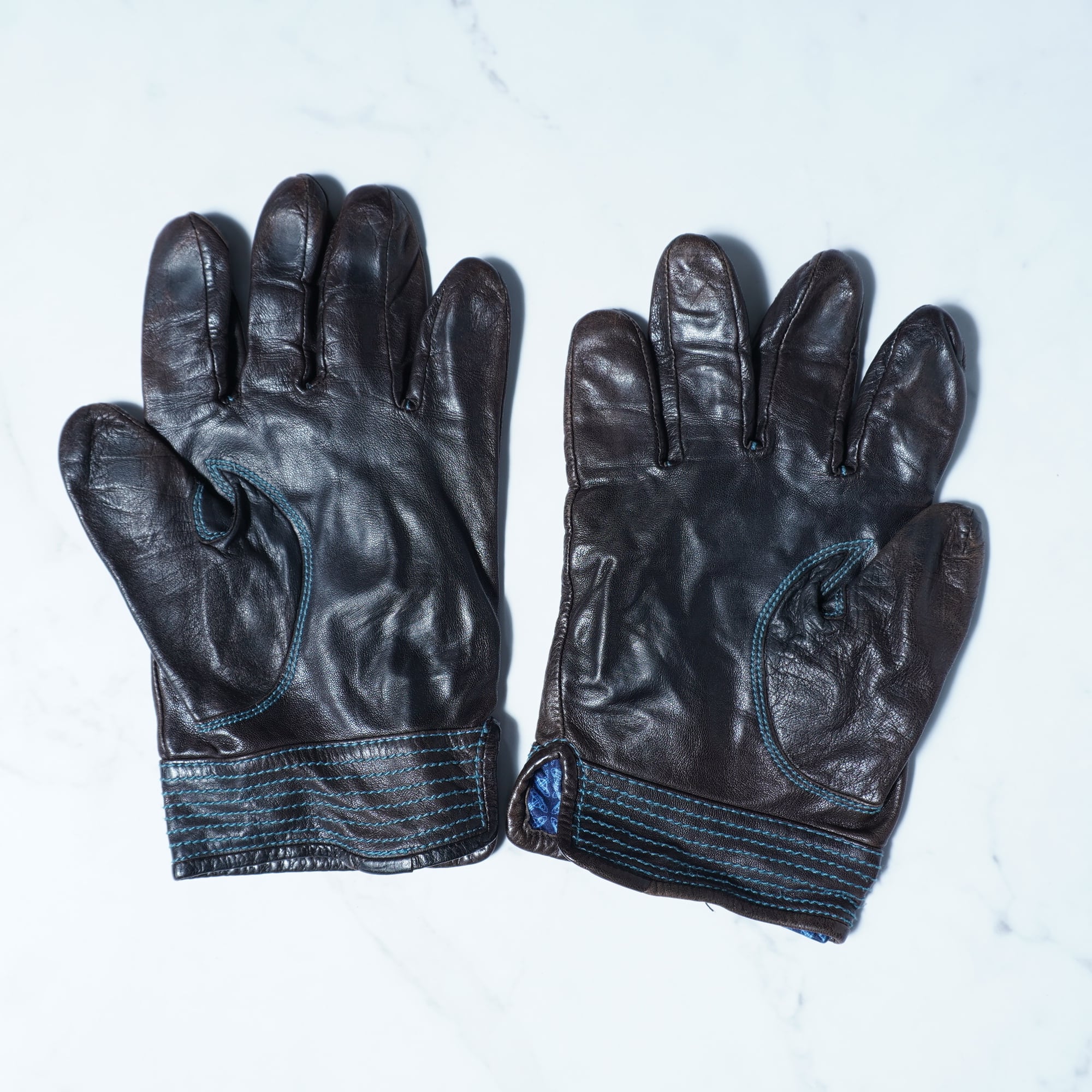 【Vivienne Westwood】ヴィヴィアンウエストウッド オーブロゴ ブルーステッチレザーグローブ brown
