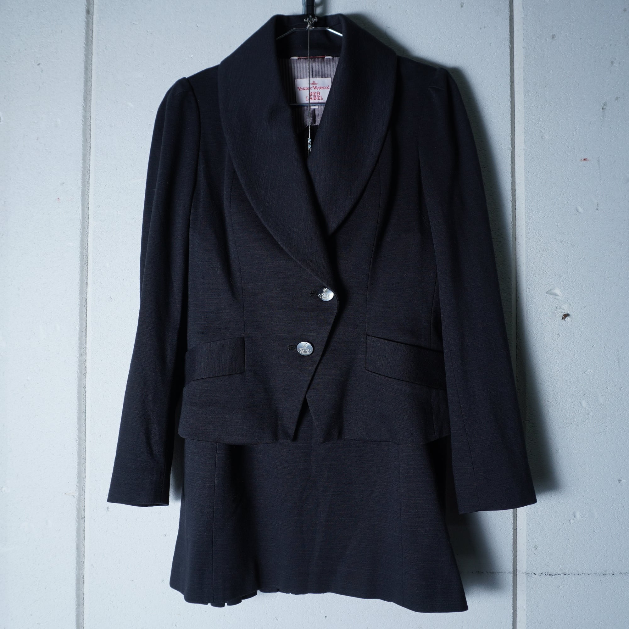 【Vivienne Westwood】ヴィヴィアンウエストウッド "オーブロゴボタン” ジャケット・プリーツスカートセットアップ black