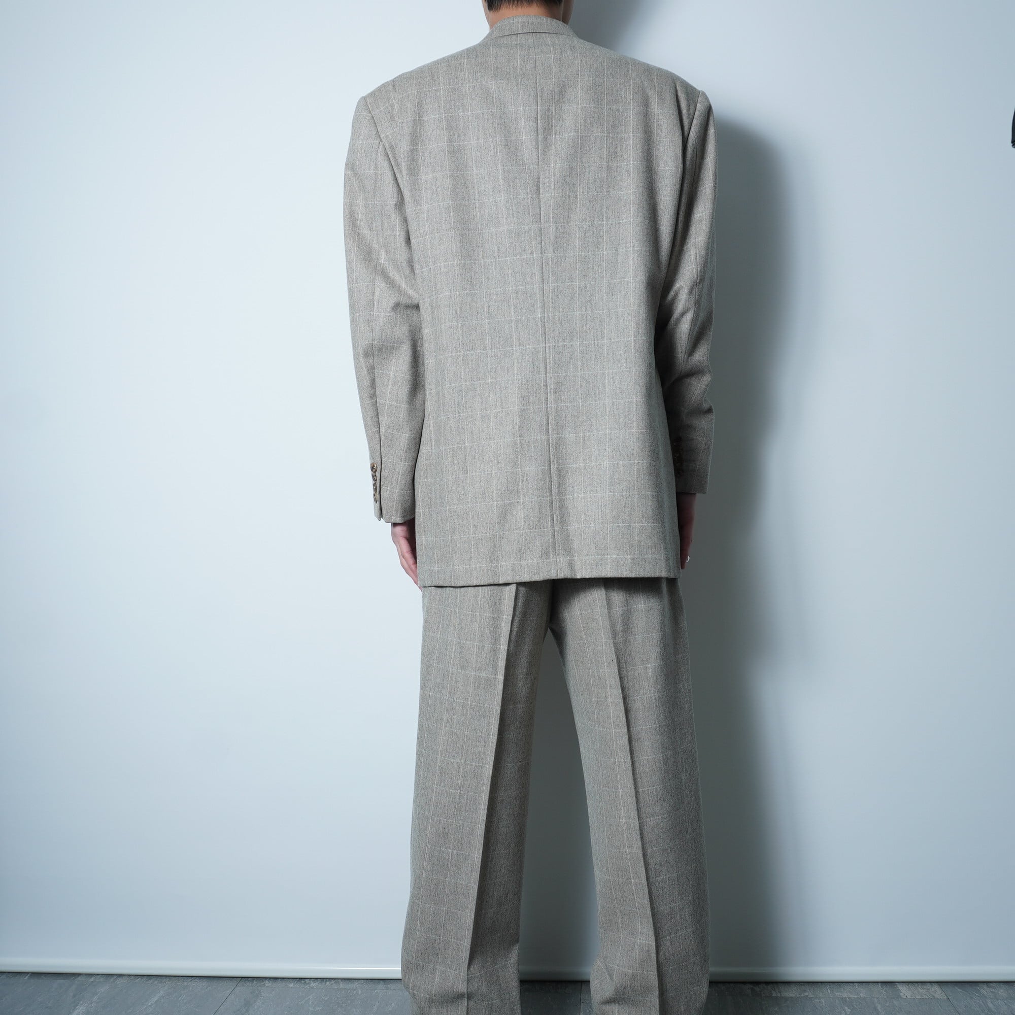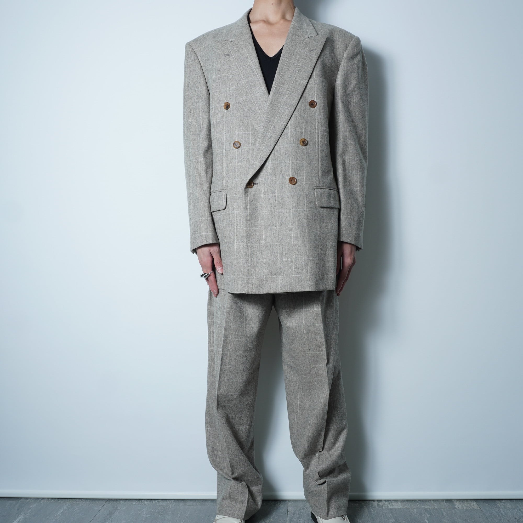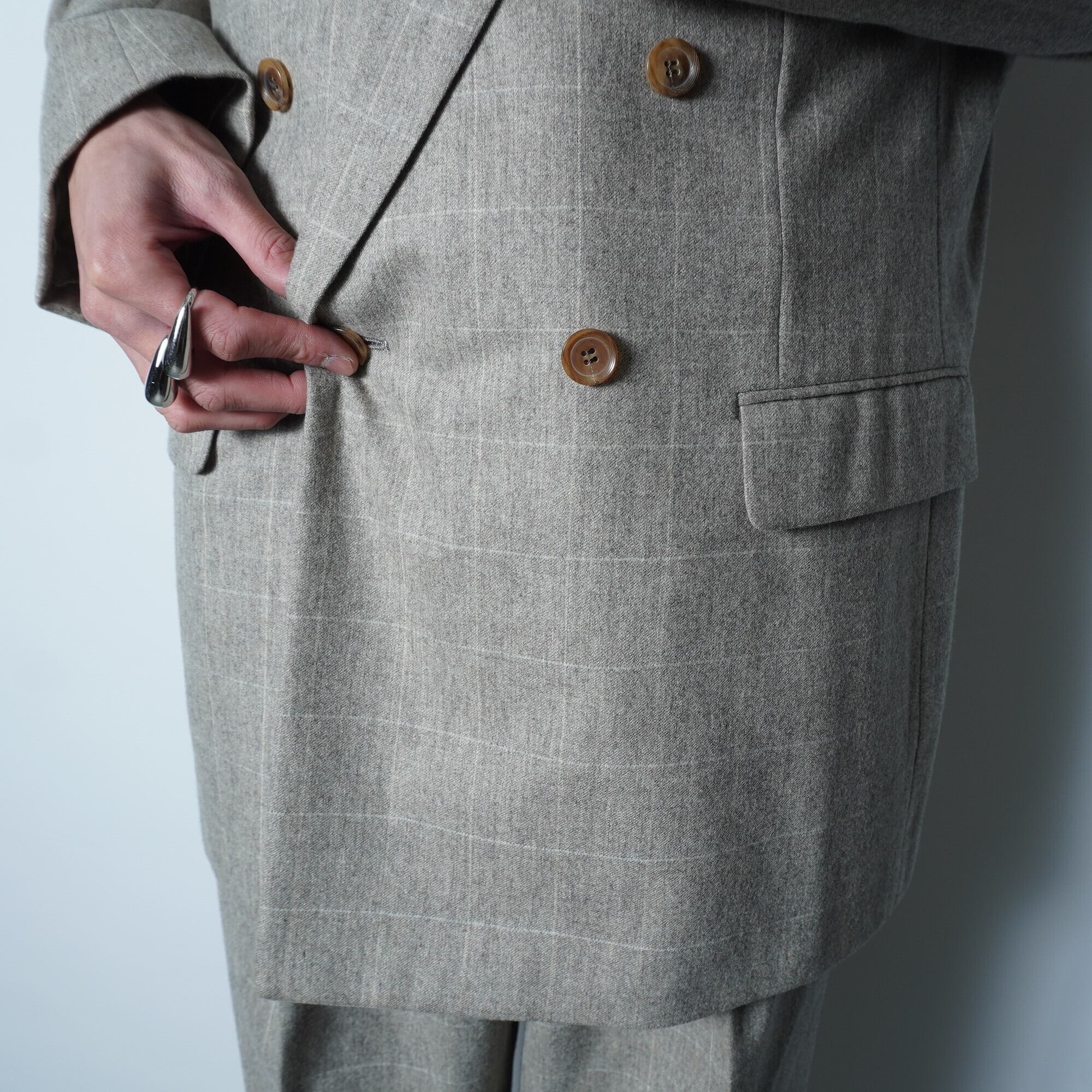 【Christian Dior】クリスチャンディオール カシミヤ混 ウール100% チェックダブルセットアップスーツ light gray