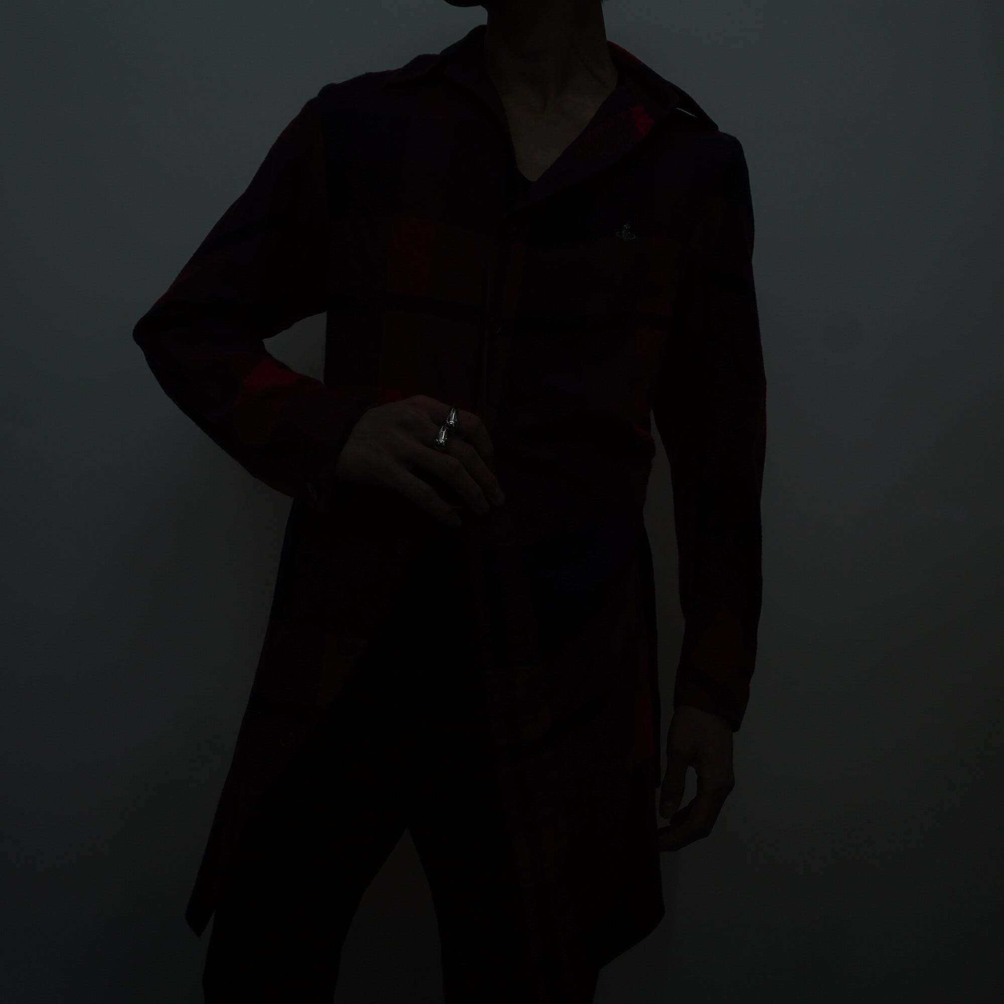 【Vivienne Westwood】ヴィヴィアンウエストウッド "オーブロゴ刺繡”チェック柄アシンメトリーシャツ red&navy