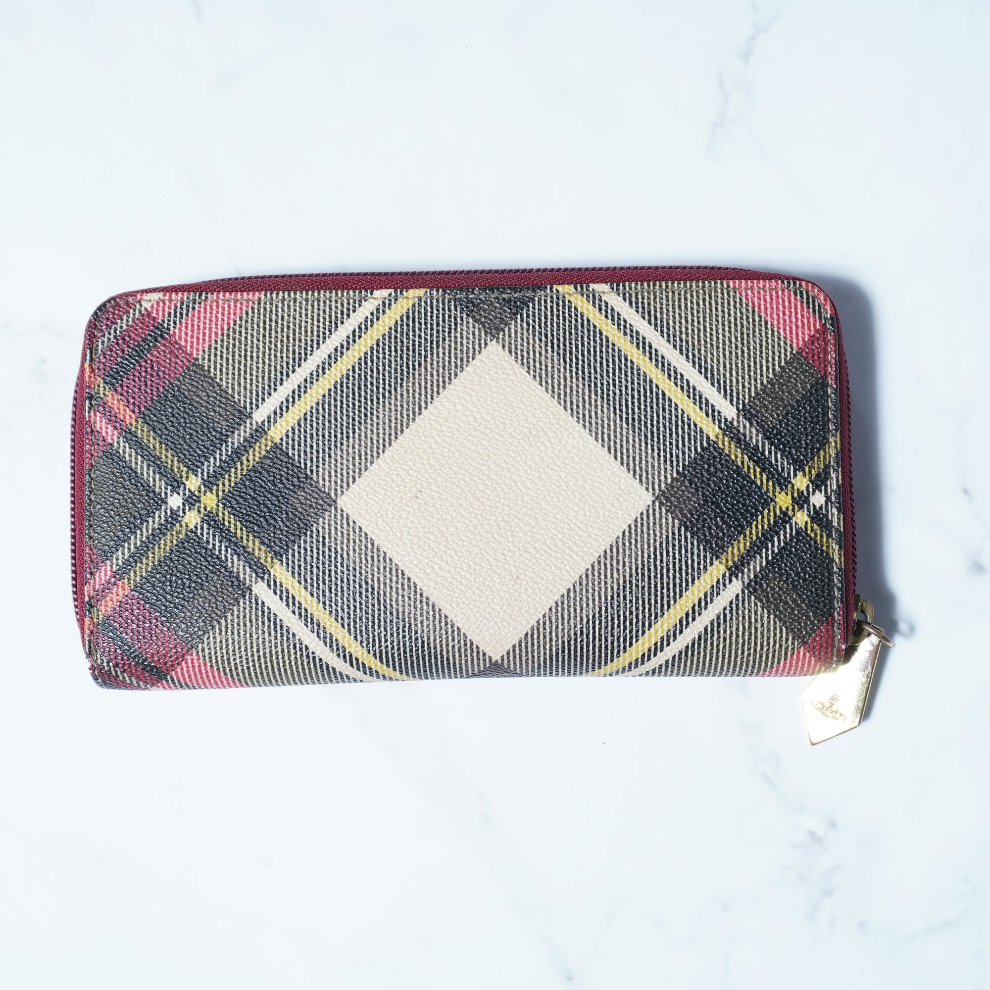 【Vivienne Westwood】ヴィヴィアンウエストウッド オーブロゴ クロスチェックレザーロングウォレット red&yellow&black