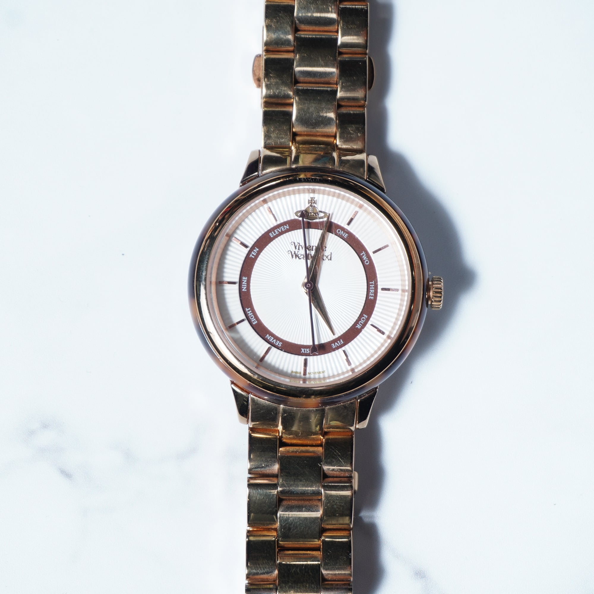 【Vivienne Westwood】"稼動品"ヴィヴィアンウエストウッド オーブロゴ ホワイトフェイスクォーツウォッチ gold