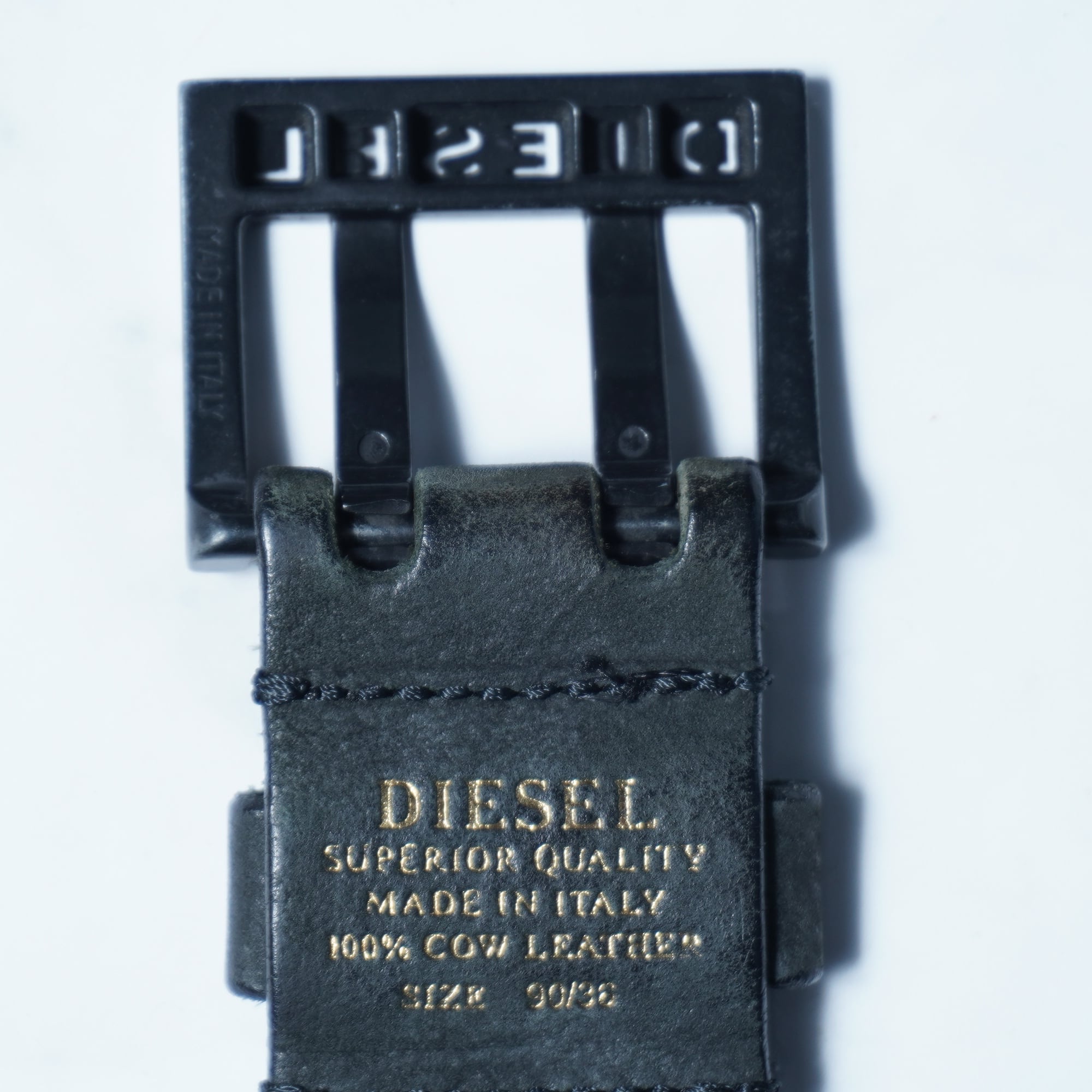 【DIESEL】ディーゼル Y2K ロゴバックルダブルピンカウレザーベルト black