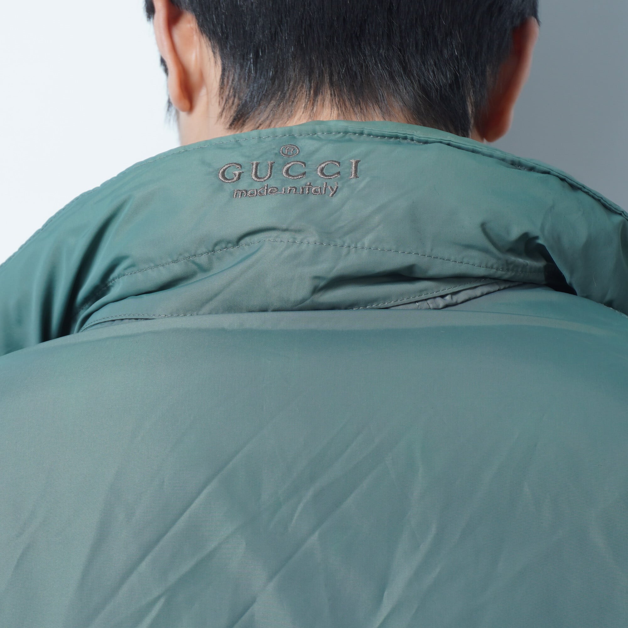 【GUCCI】グッチ イタリア製 ロゴ刺繍パファージャケット khaki