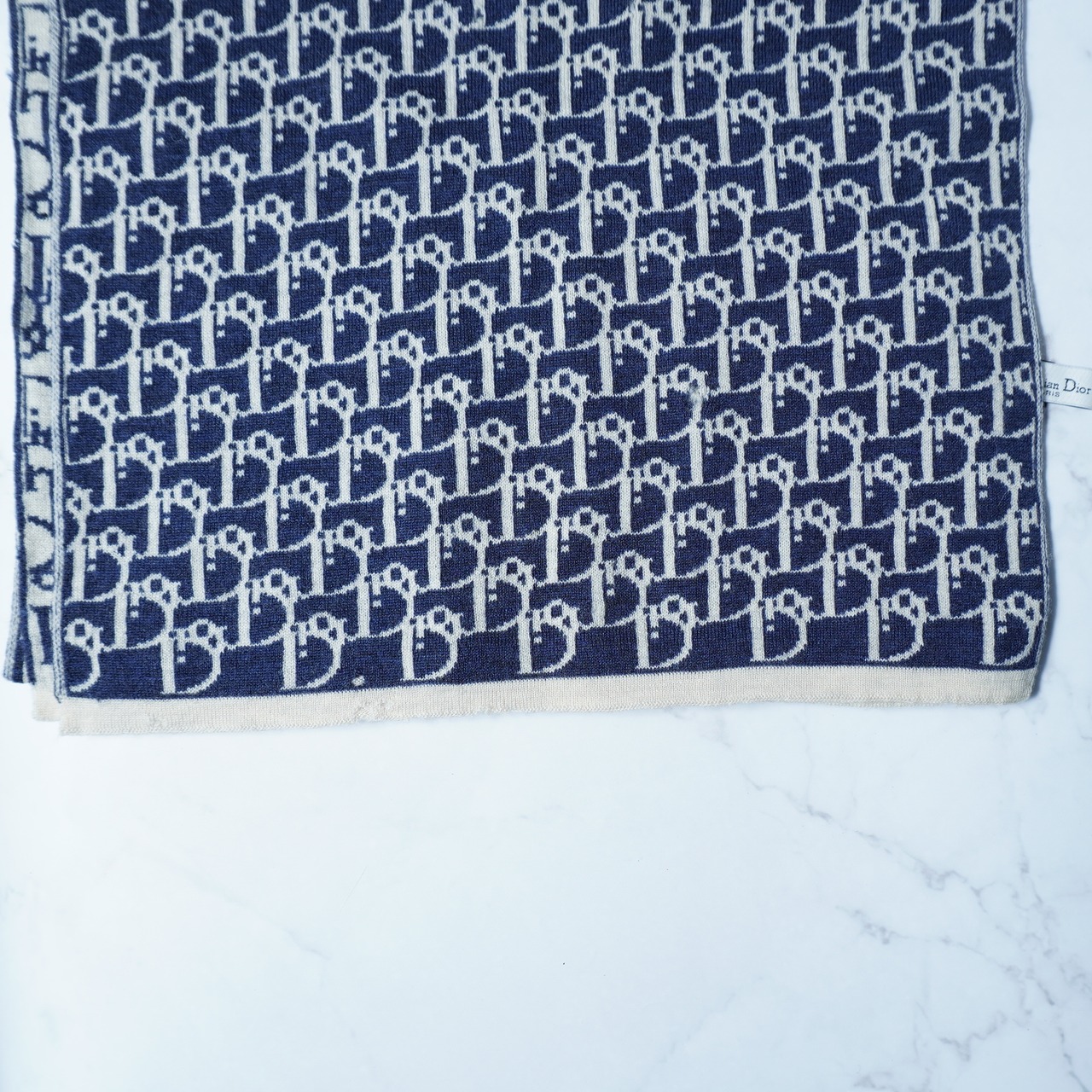 【Christian Dior】クリスチャンディオール "トロッター総柄" WOOL100%マフラー navy&white