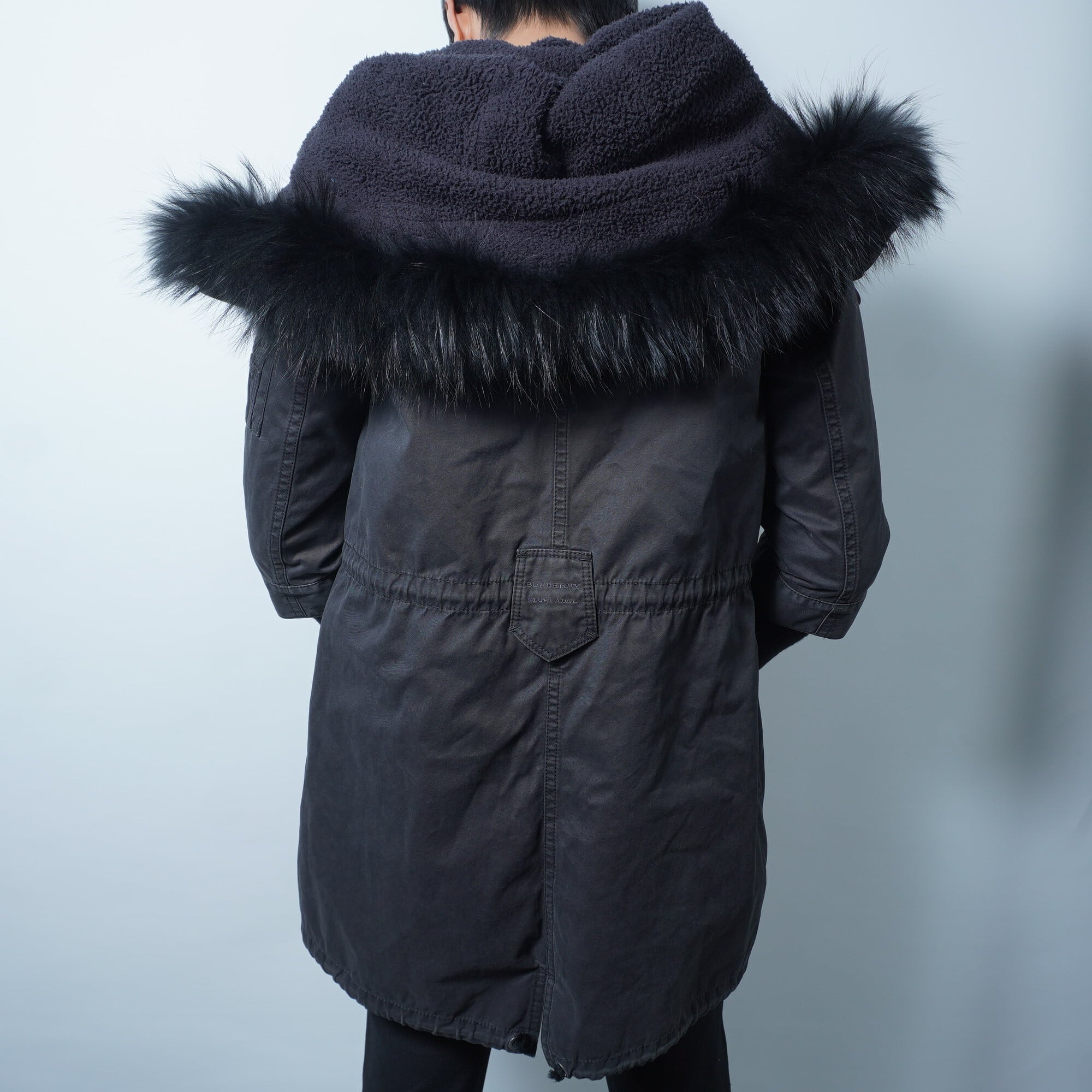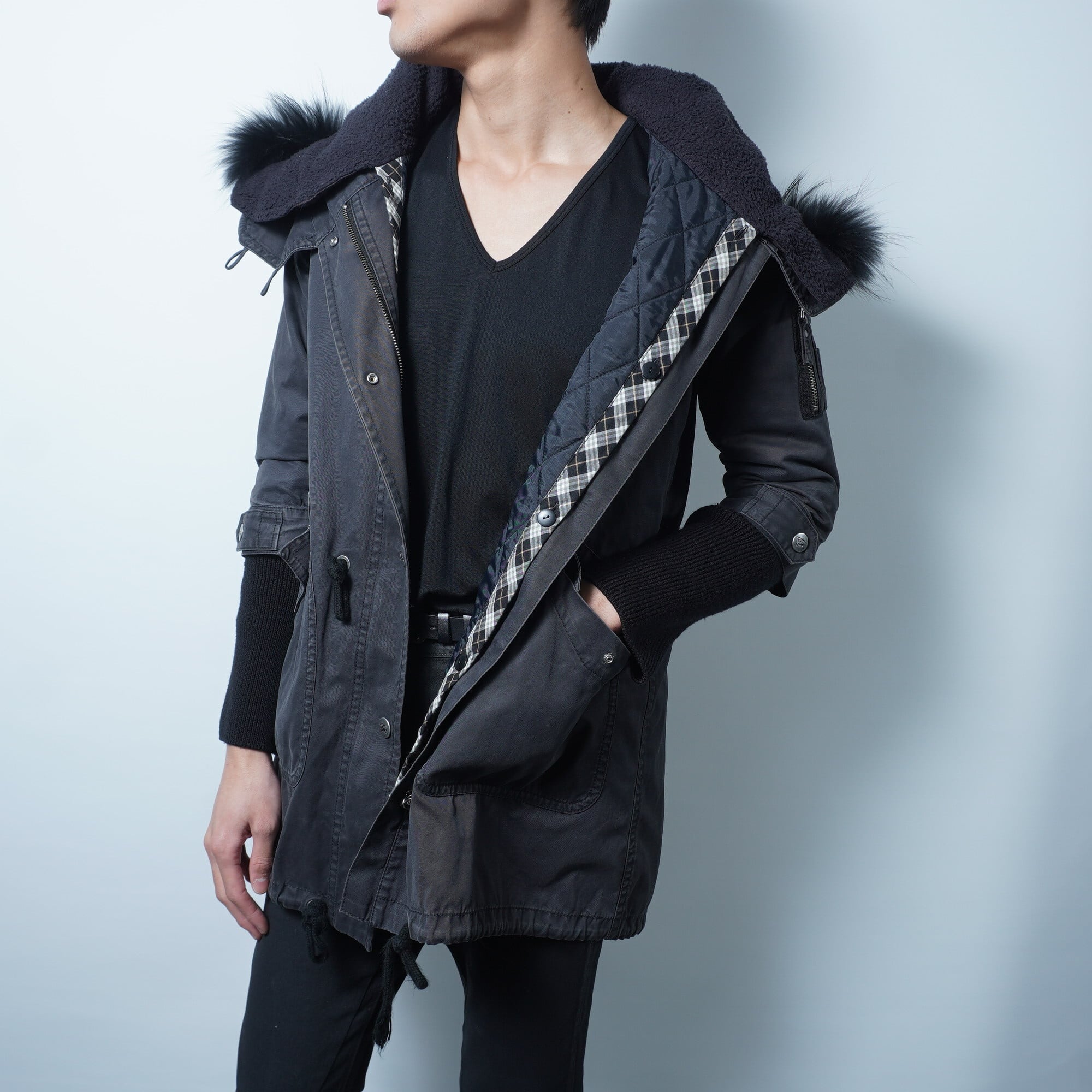 【BURBERRY】バーバリーブラックレーベル レイヤードデザインラクーンファーコットンギミックモッズコート charcoal