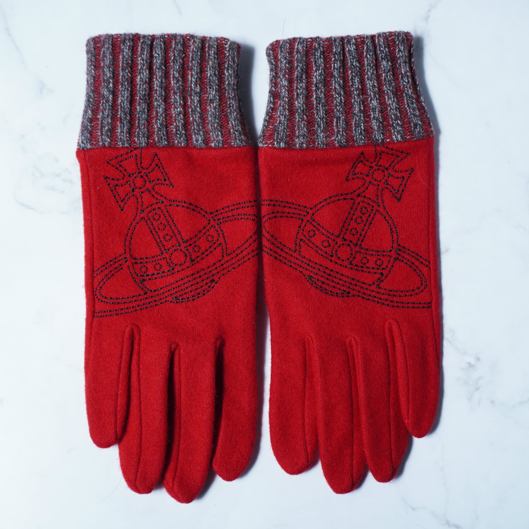 【Vivienne Westwood】ヴィヴィアンウエストウッド "オーブロゴ刺繍”ウール手袋 red