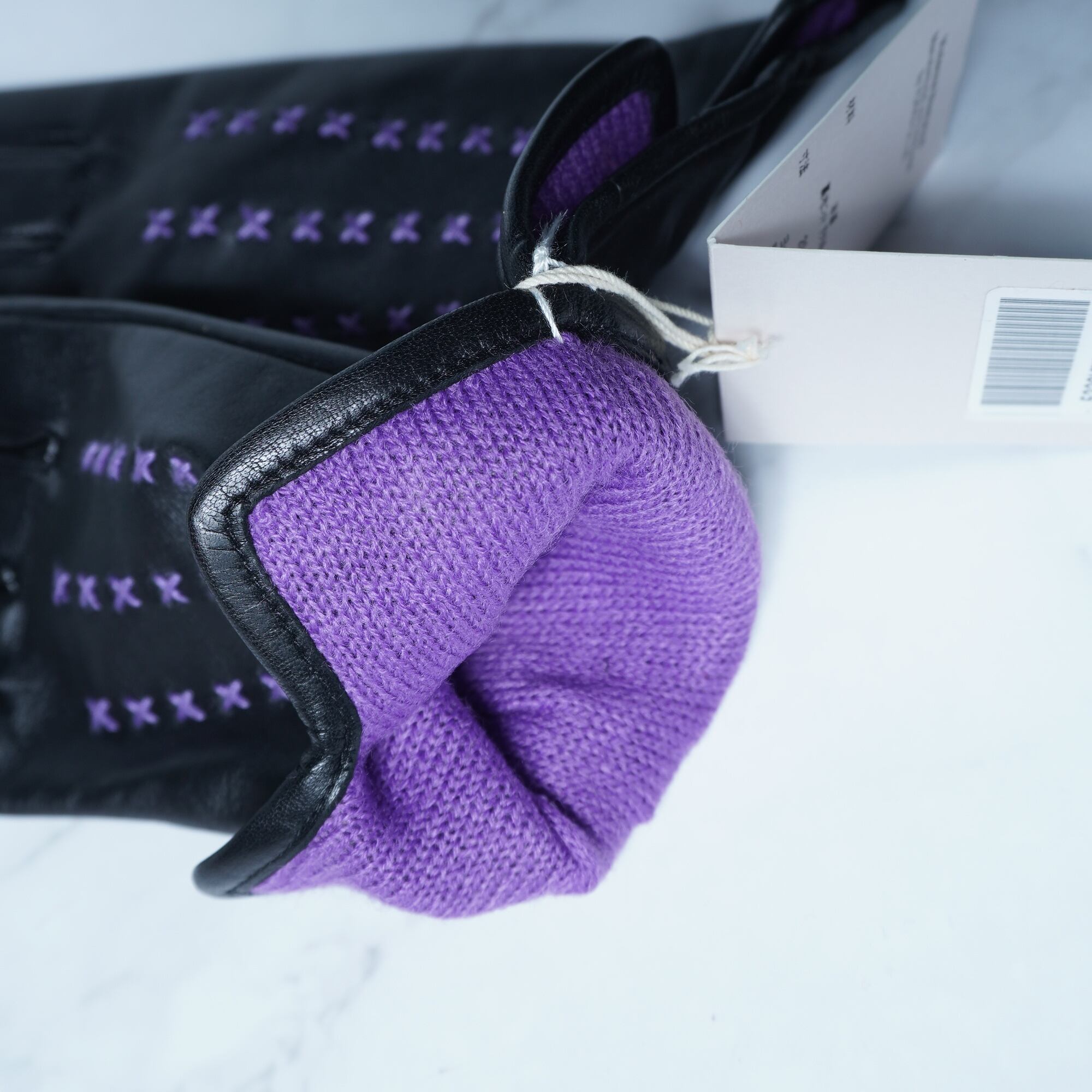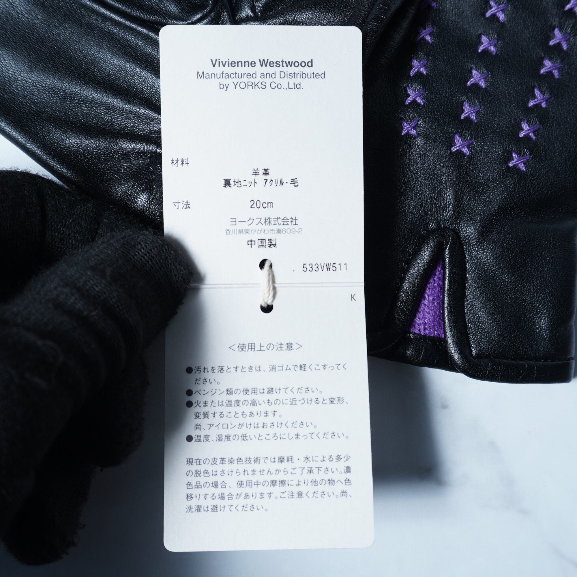 【Vivienne Westwood】ヴィヴィアンウエストウッド "オーブロゴ” ”タグ付き・美品”パープルステッチラムレザーグローブ black