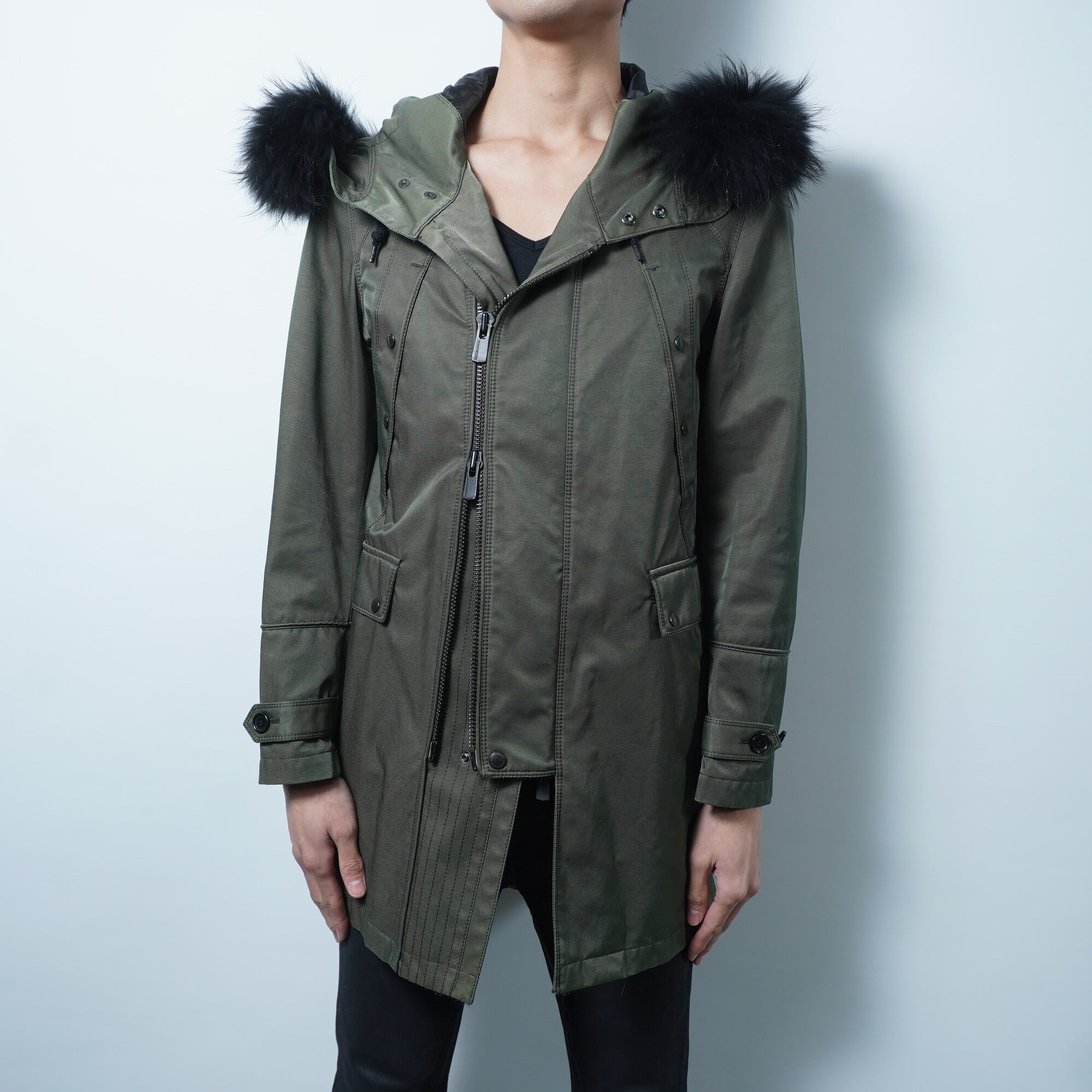 【BLACKBARRETT by NEIL BARRETT】ブラックバレットバイニールバレット コーティングコットンたぬきファーモッズコート khaki