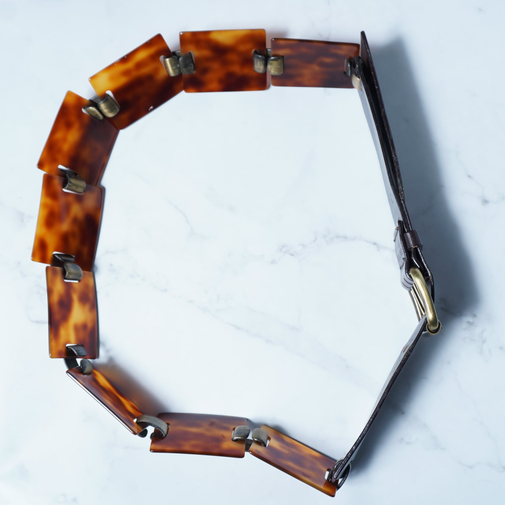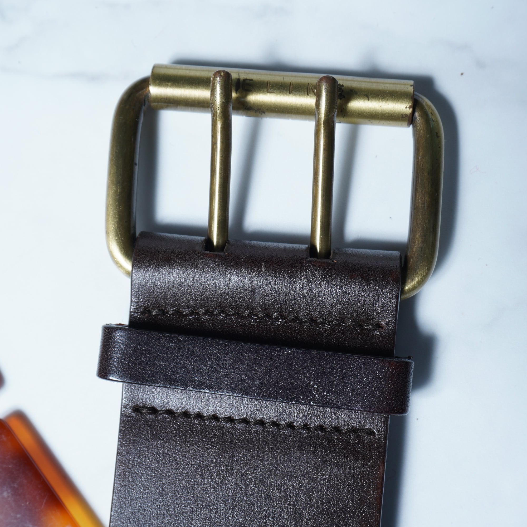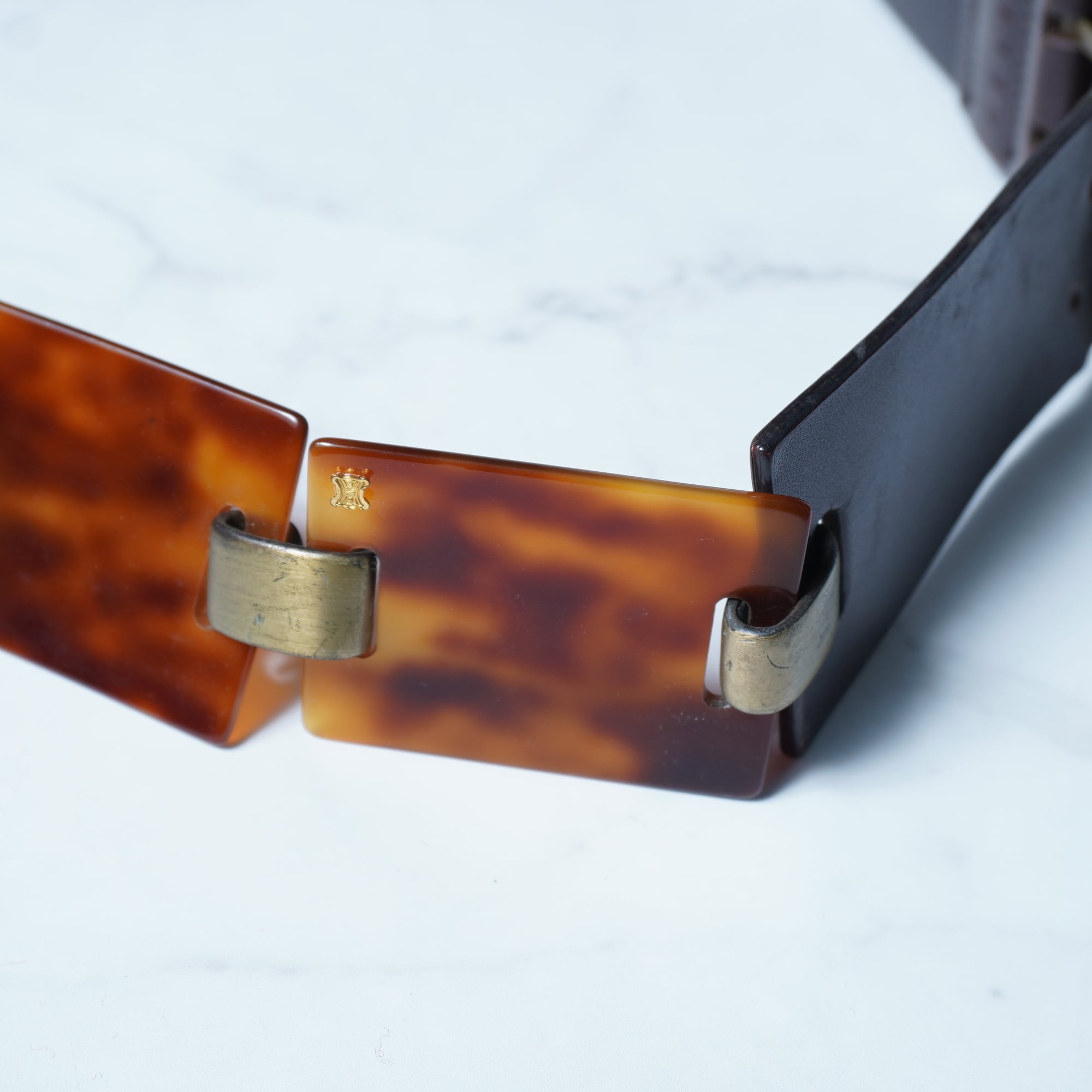 【CELINE】セリーヌ レザー鼈甲切替ダブルホールゴールドバックルレザーベルト brown