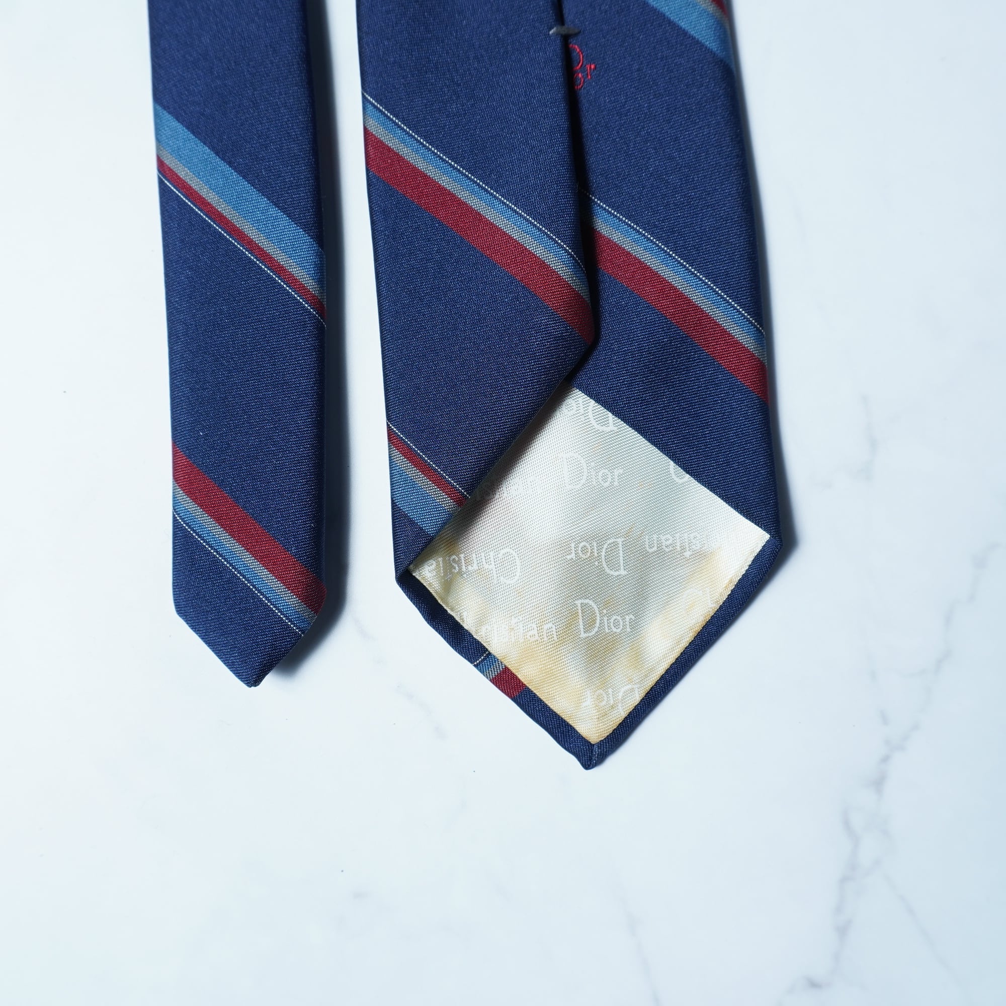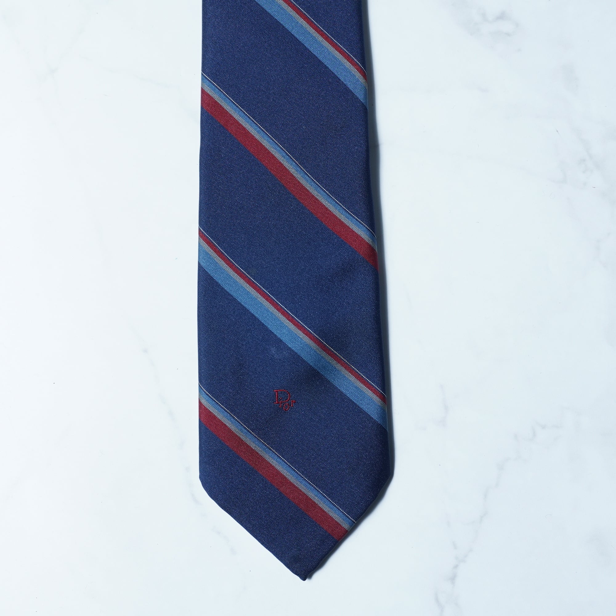 【Christian Dior】クリスチャンディオール ロゴ入 レジメンタルネクタイ navy&red&blue