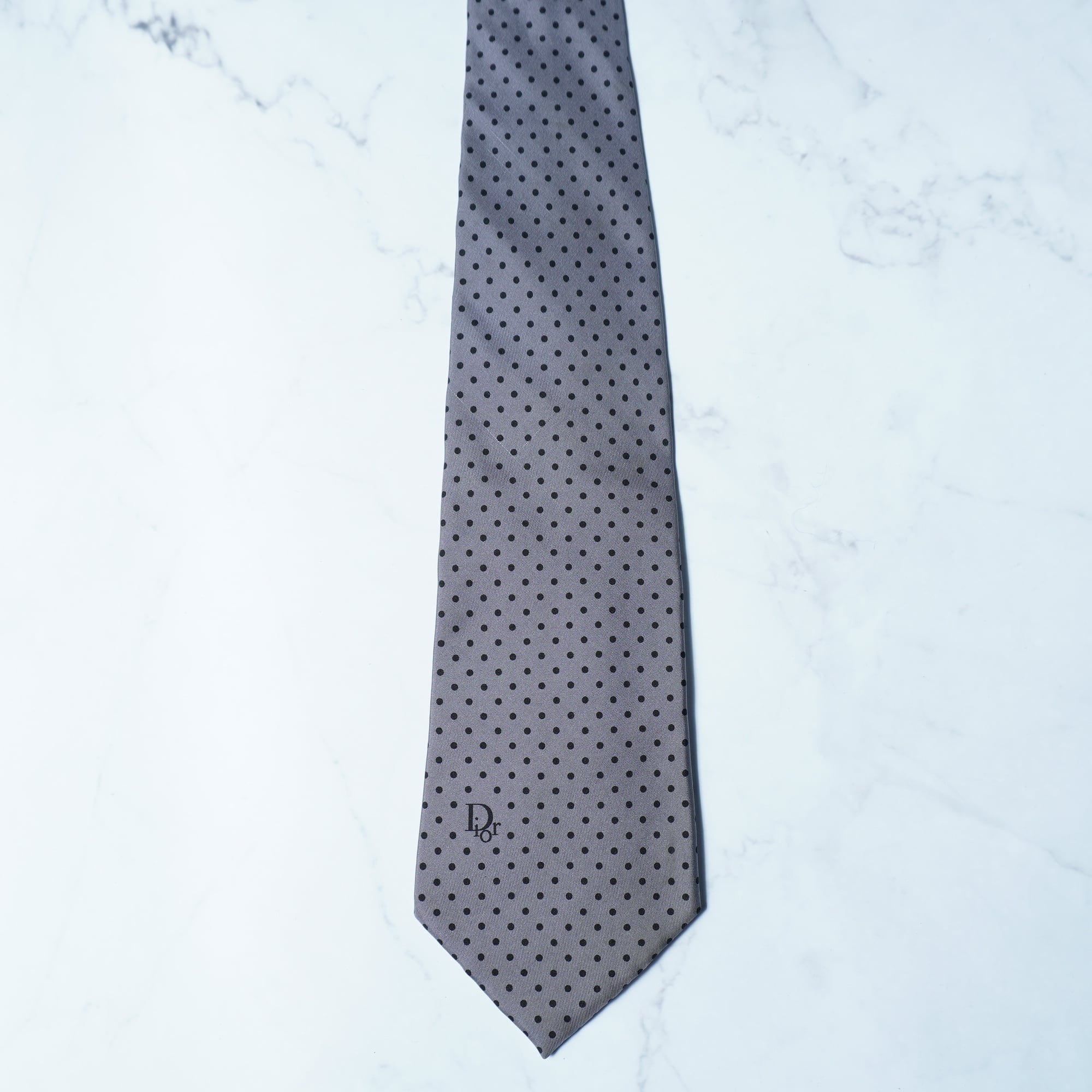 【Christian Dior】クリスチャンディオール ロゴ入 ドット柄ネクタイ gray&black