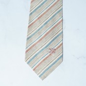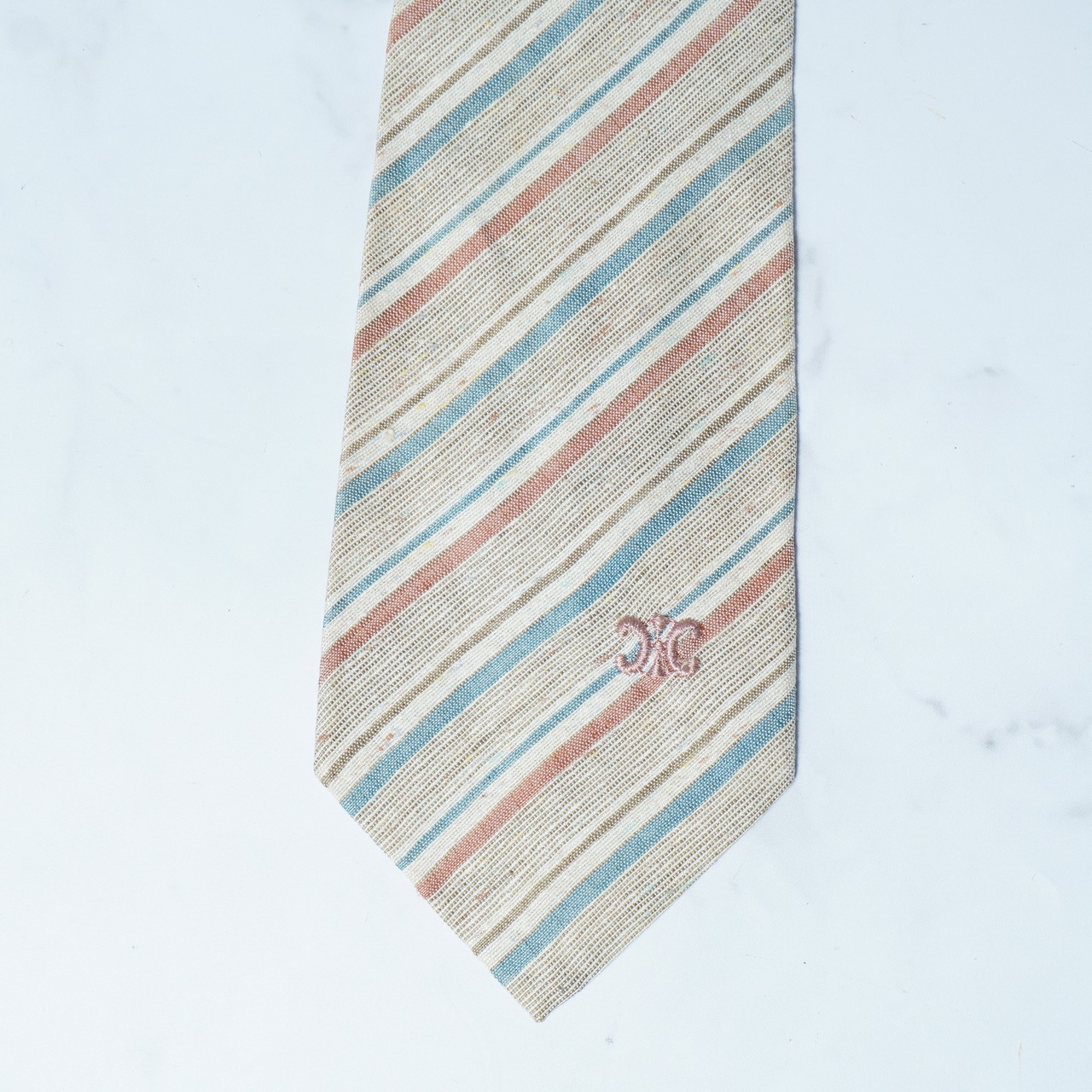 【CELINE】セリーヌ トリオンフ刺繍レジメンタルネクタイ beige&red&blue