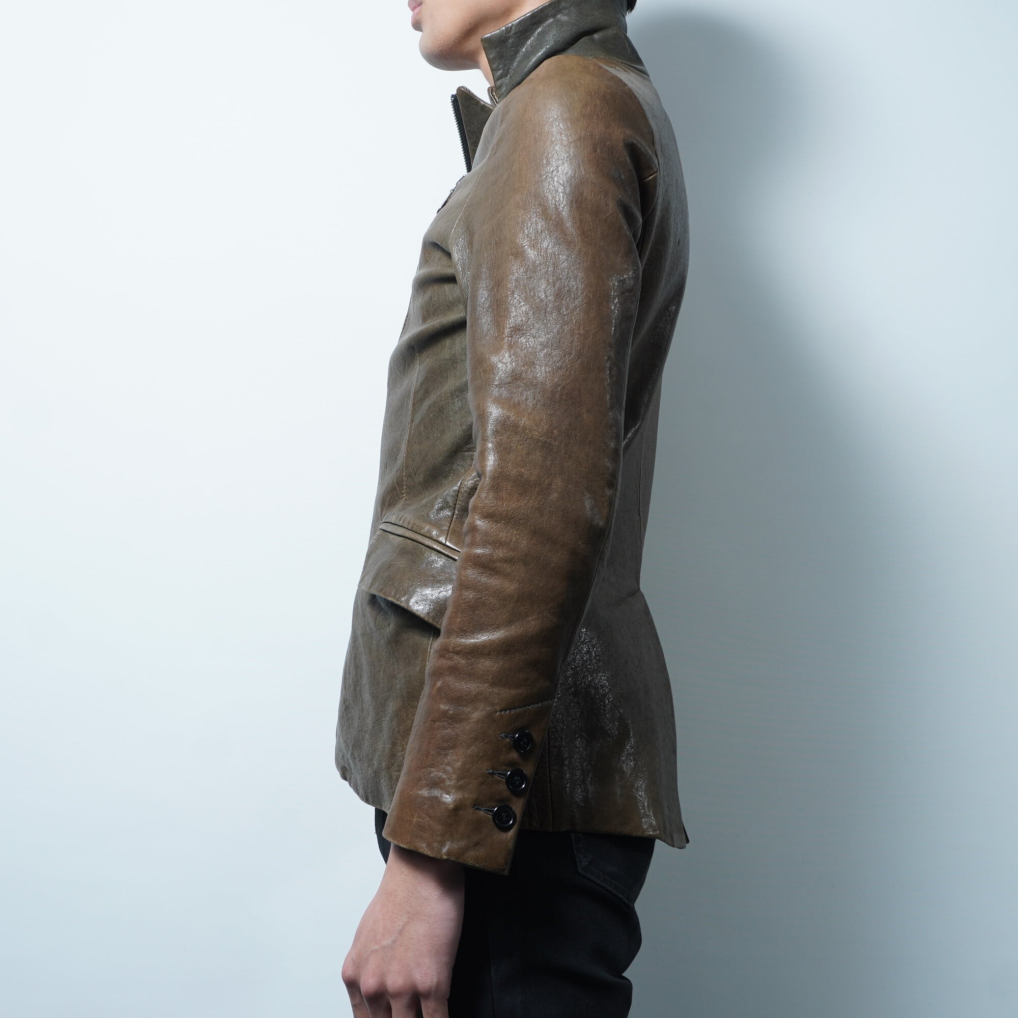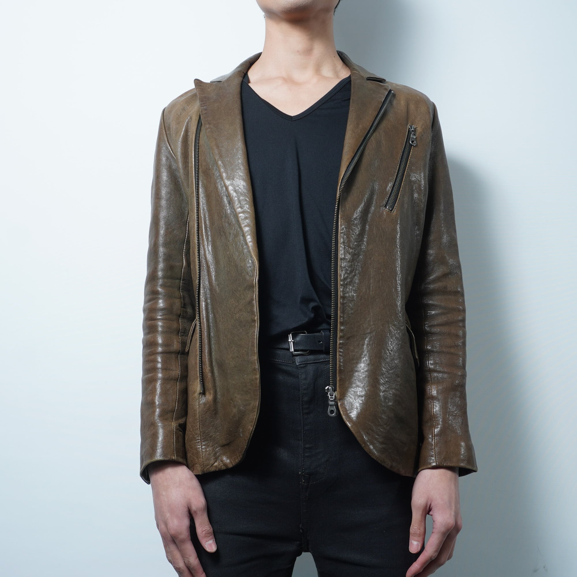 【FUGA】フーガ 00s 羊革ダブルジップ2WAYジャケット brown