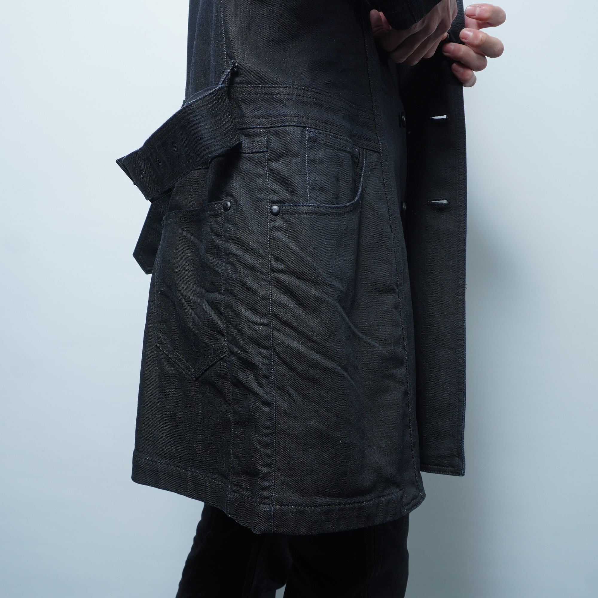【BLACKBARRETT by NEIL BARRETT】ブラックバレットバイニールバレット 00s ジップデザインコーティングコットントレンチコート black