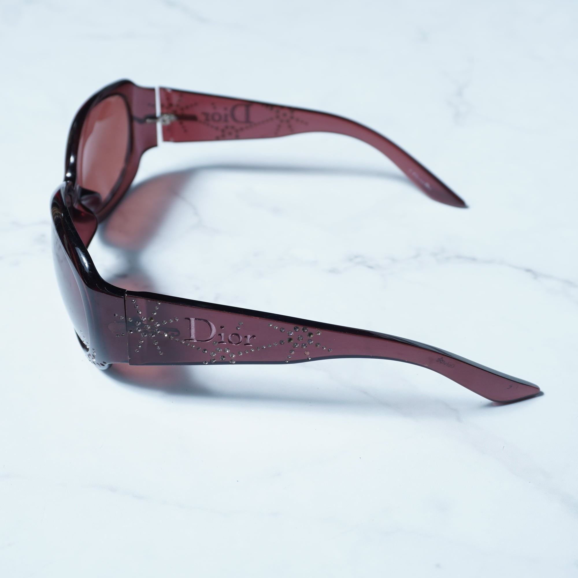 【Christian Dior】クリスチャンディオール ”テンプルロゴ”ラメ装飾サングラス brown