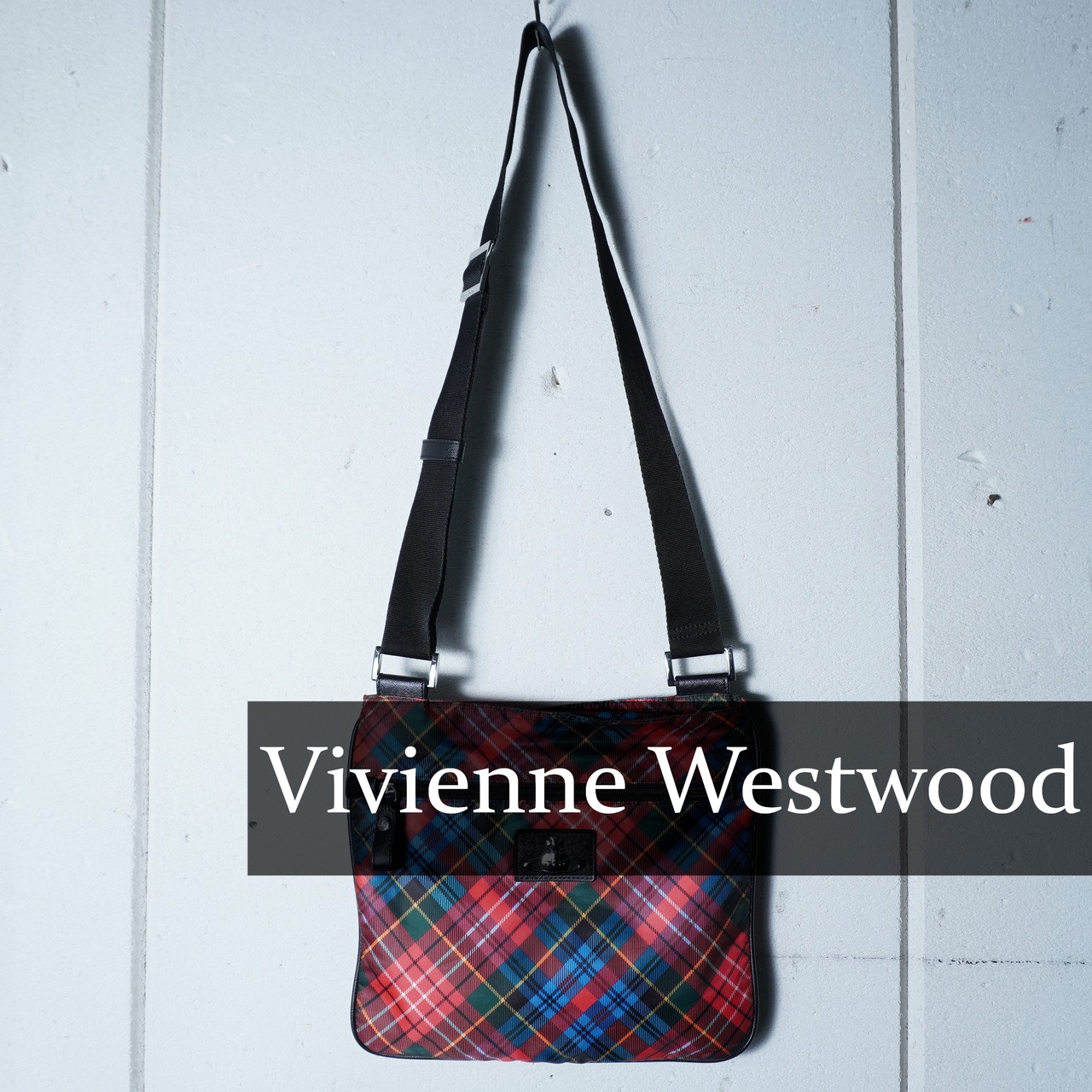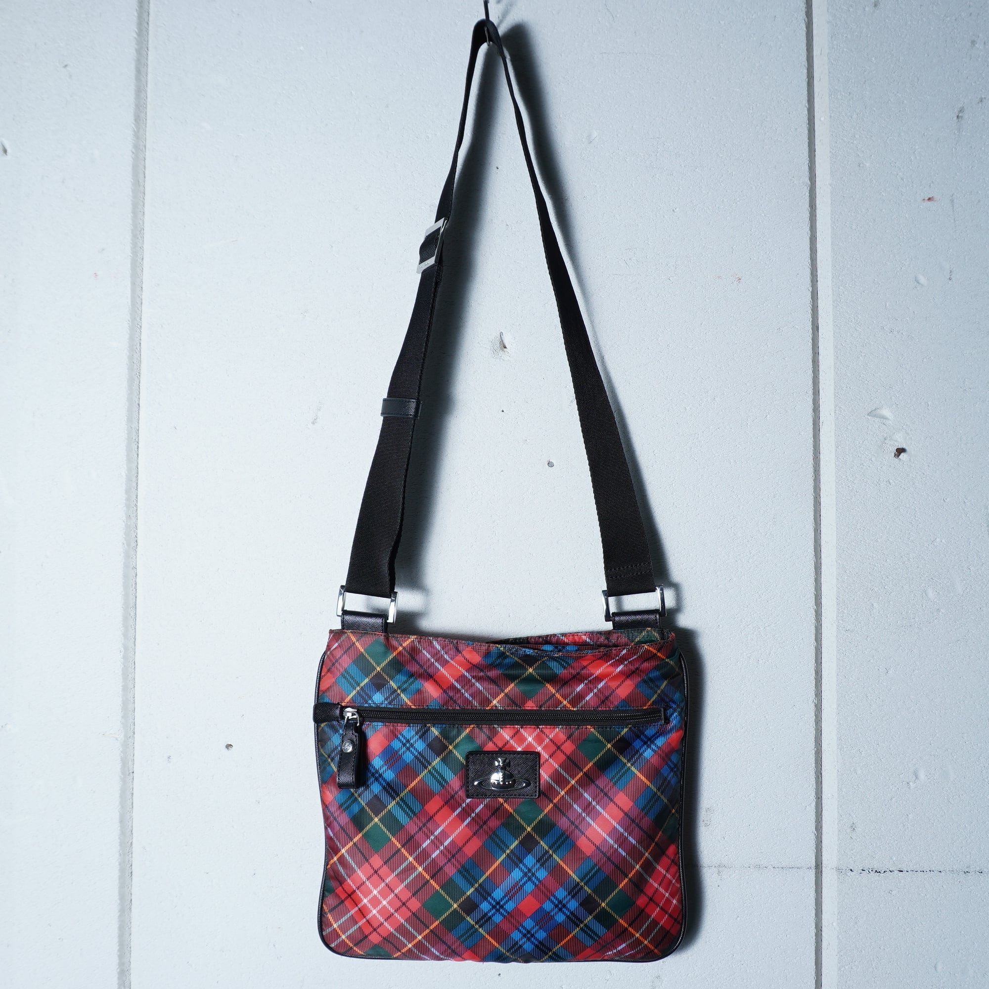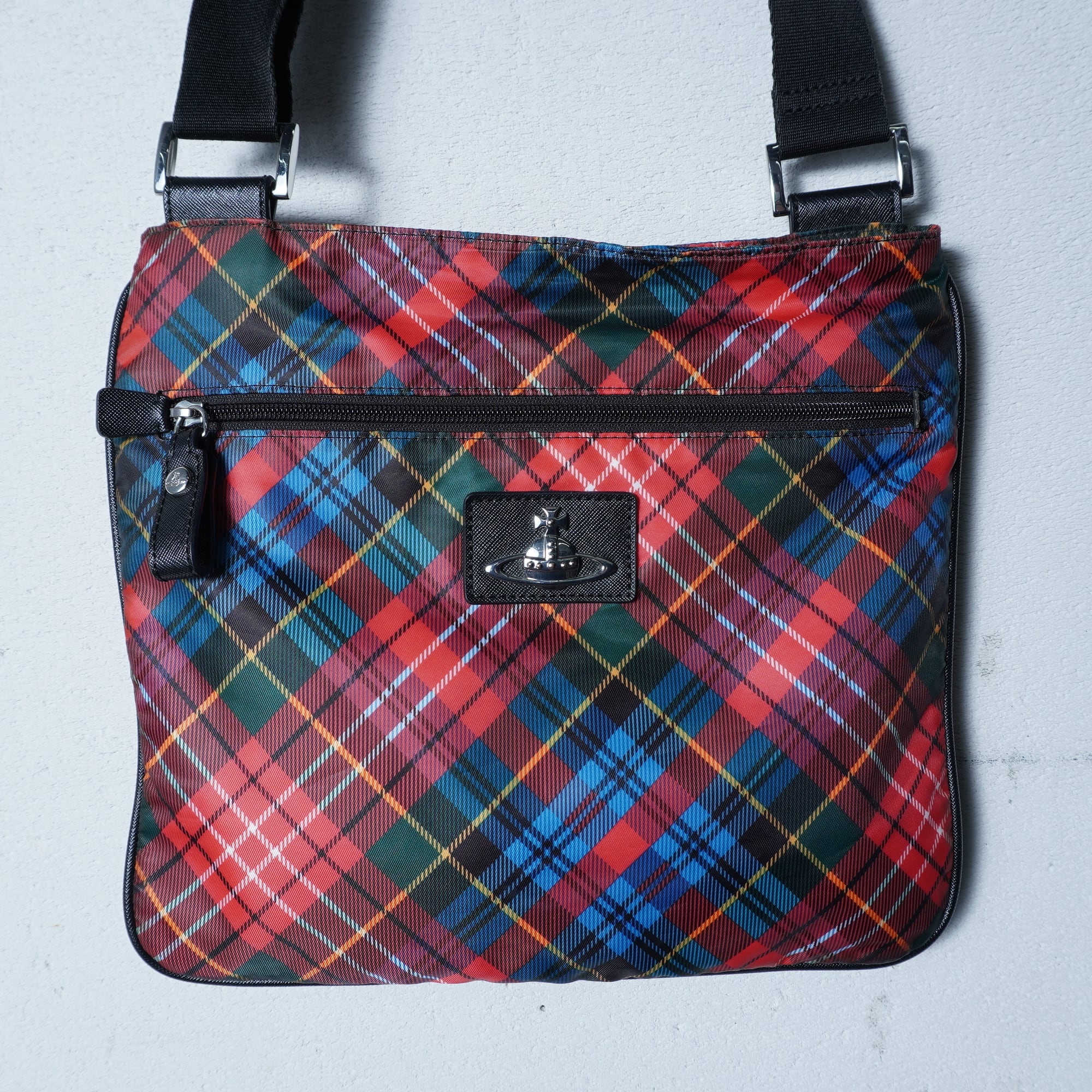 【Vivienne Westwood】ヴィヴィアンウエストウッド "シルバーオーブロゴ” クロスチェックナイロンショルダーバッグ red&black&blue
