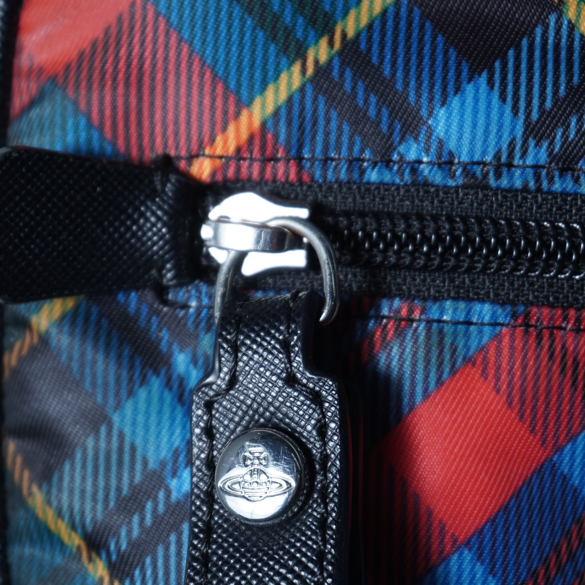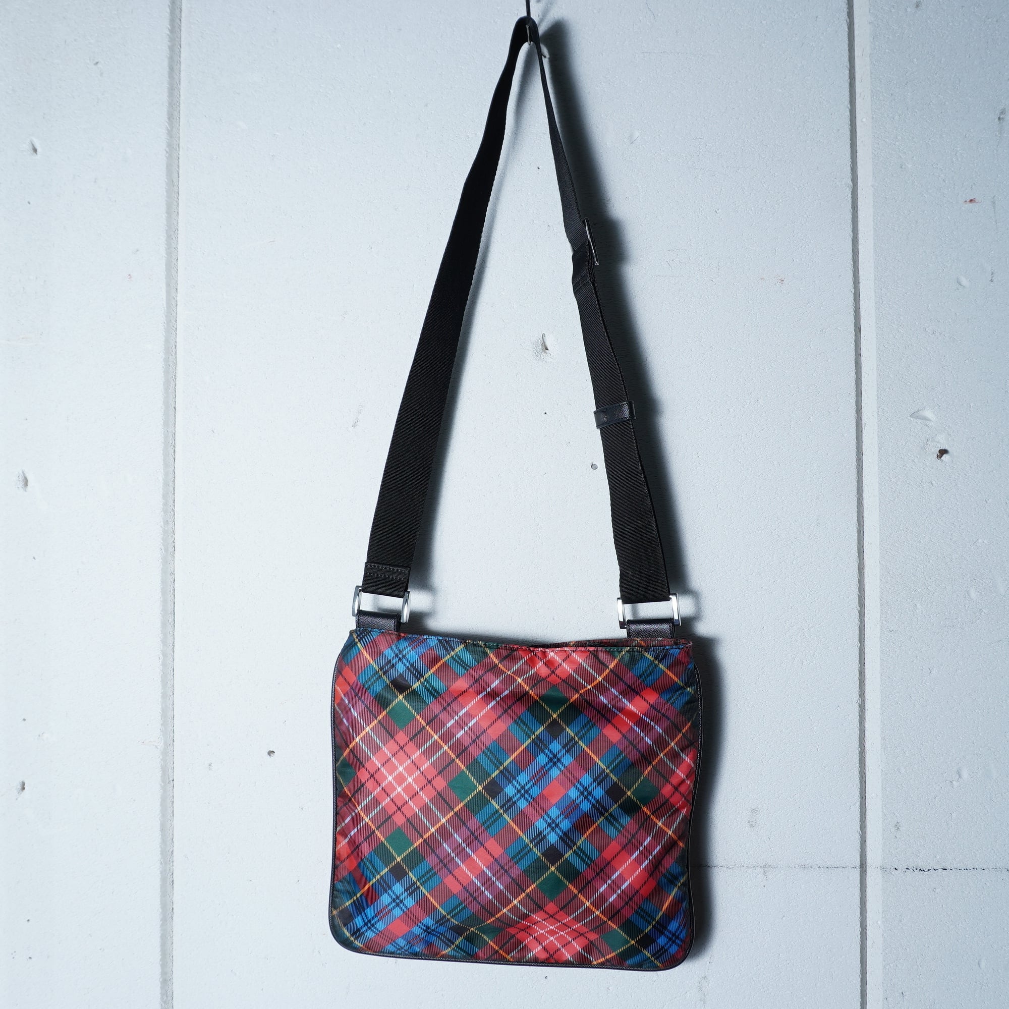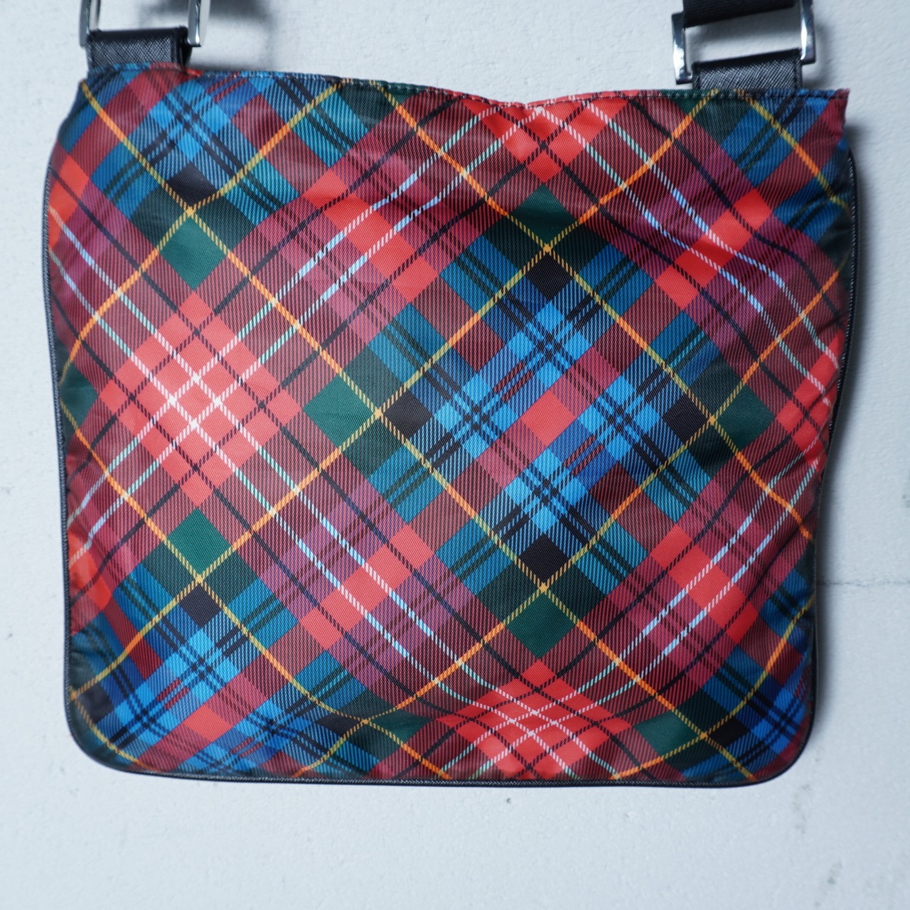 【Vivienne Westwood】ヴィヴィアンウエストウッド "シルバーオーブロゴ” クロスチェックナイロンショルダーバッグ red&black&blue