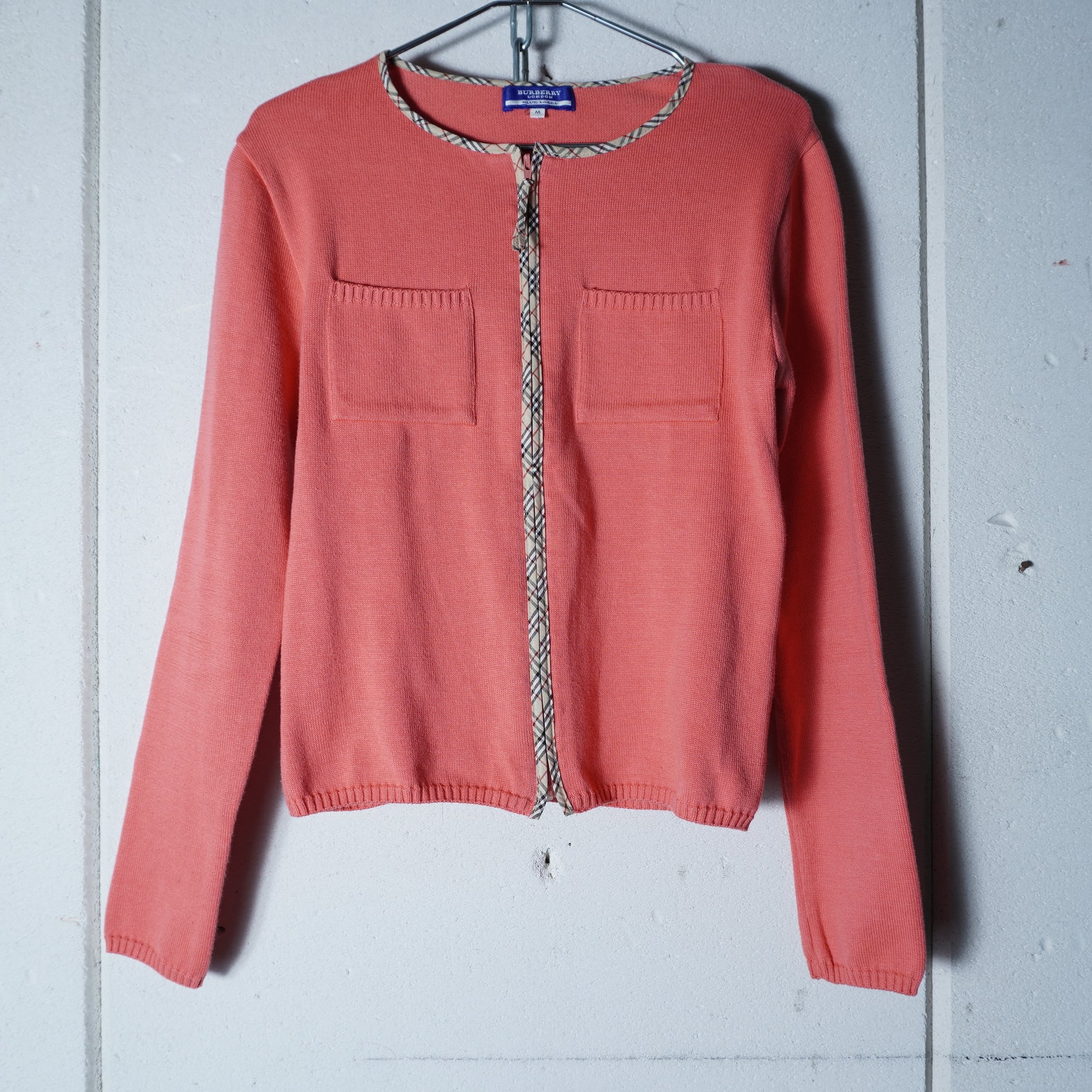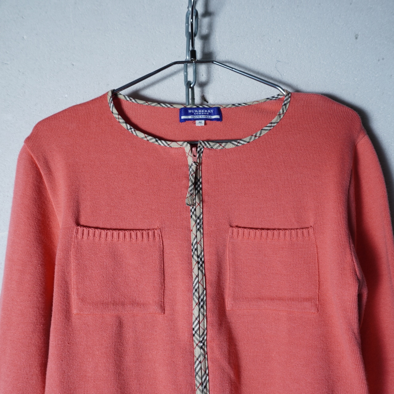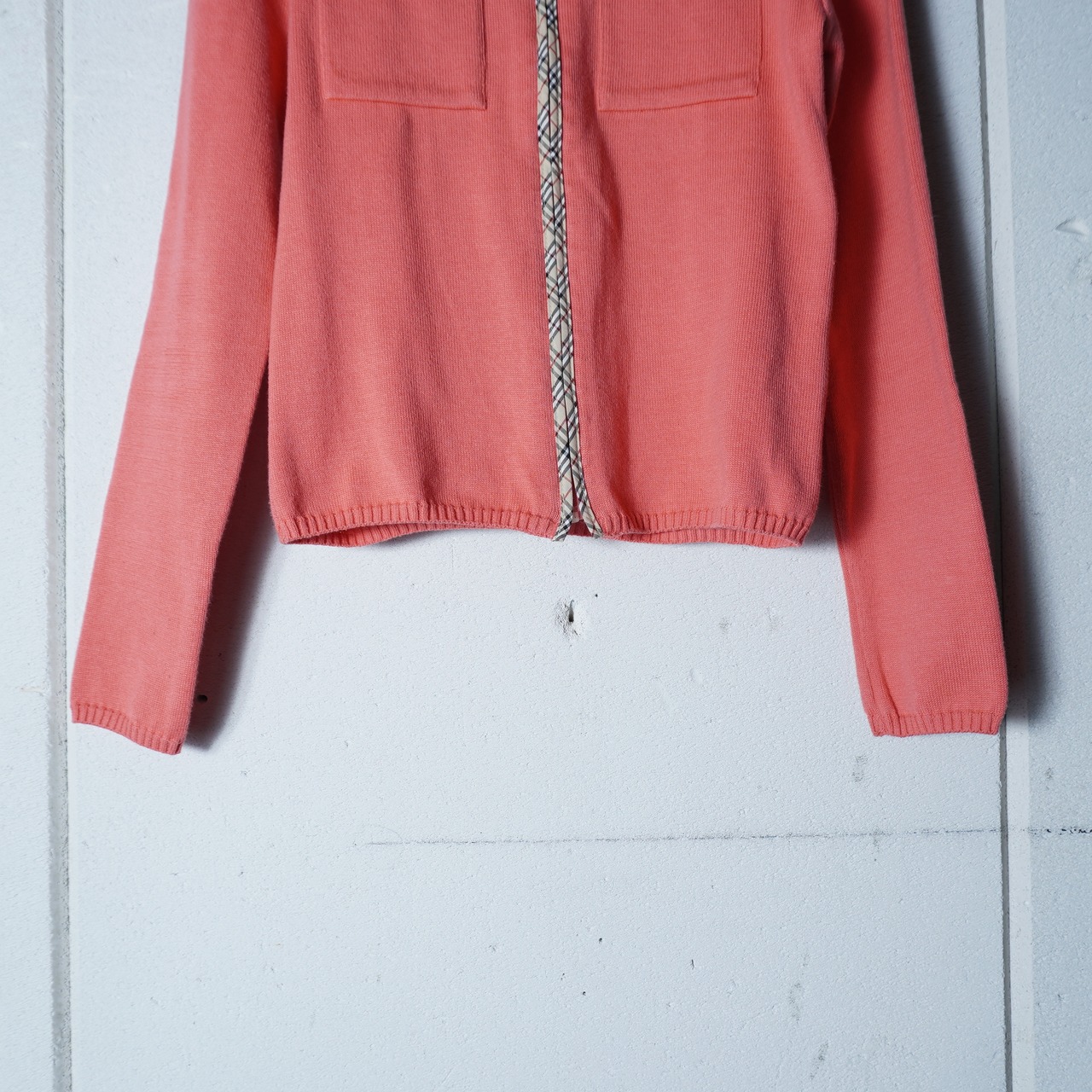【BURBERRY】バーバリー "ノヴァチェック” ジップアップニットカーディガン pink