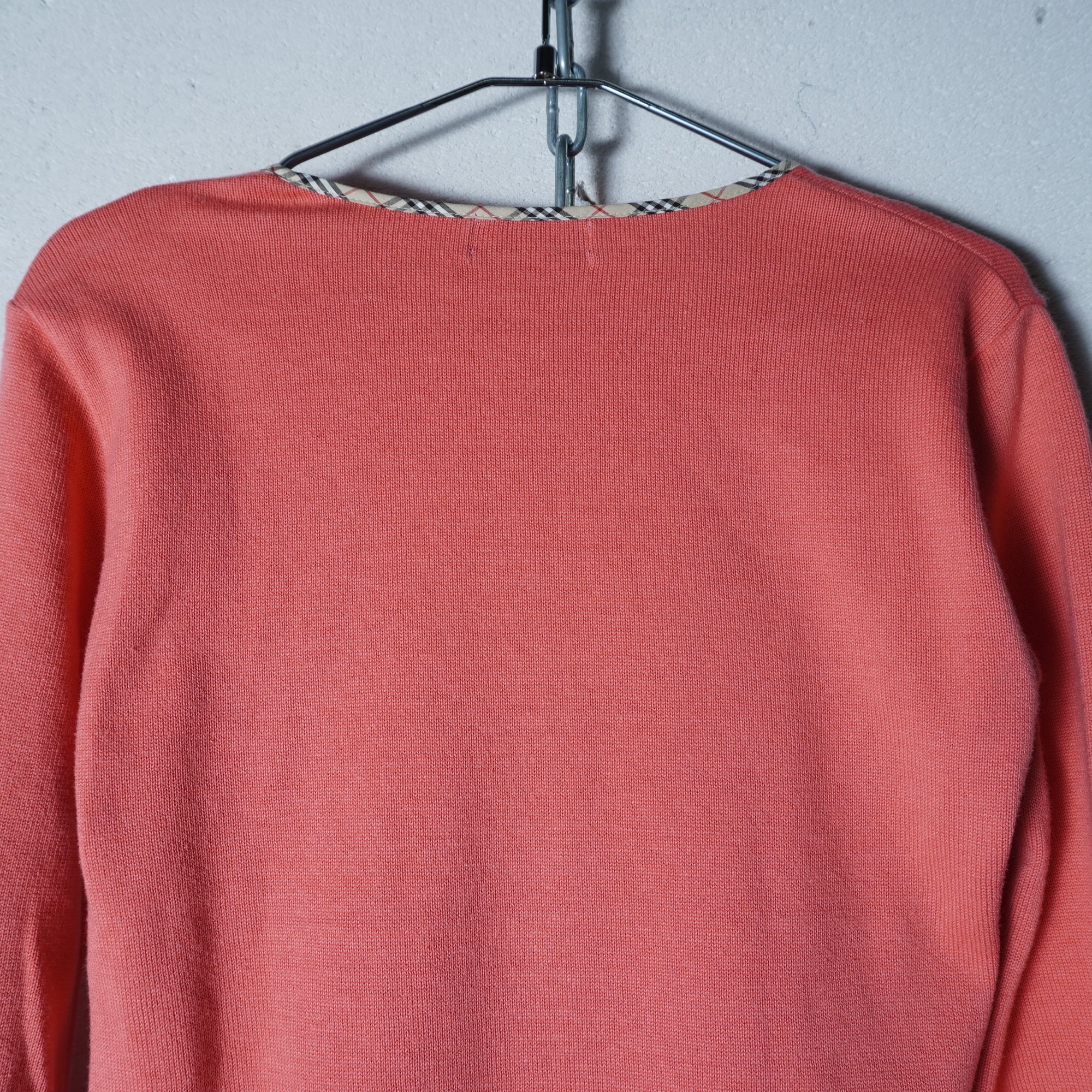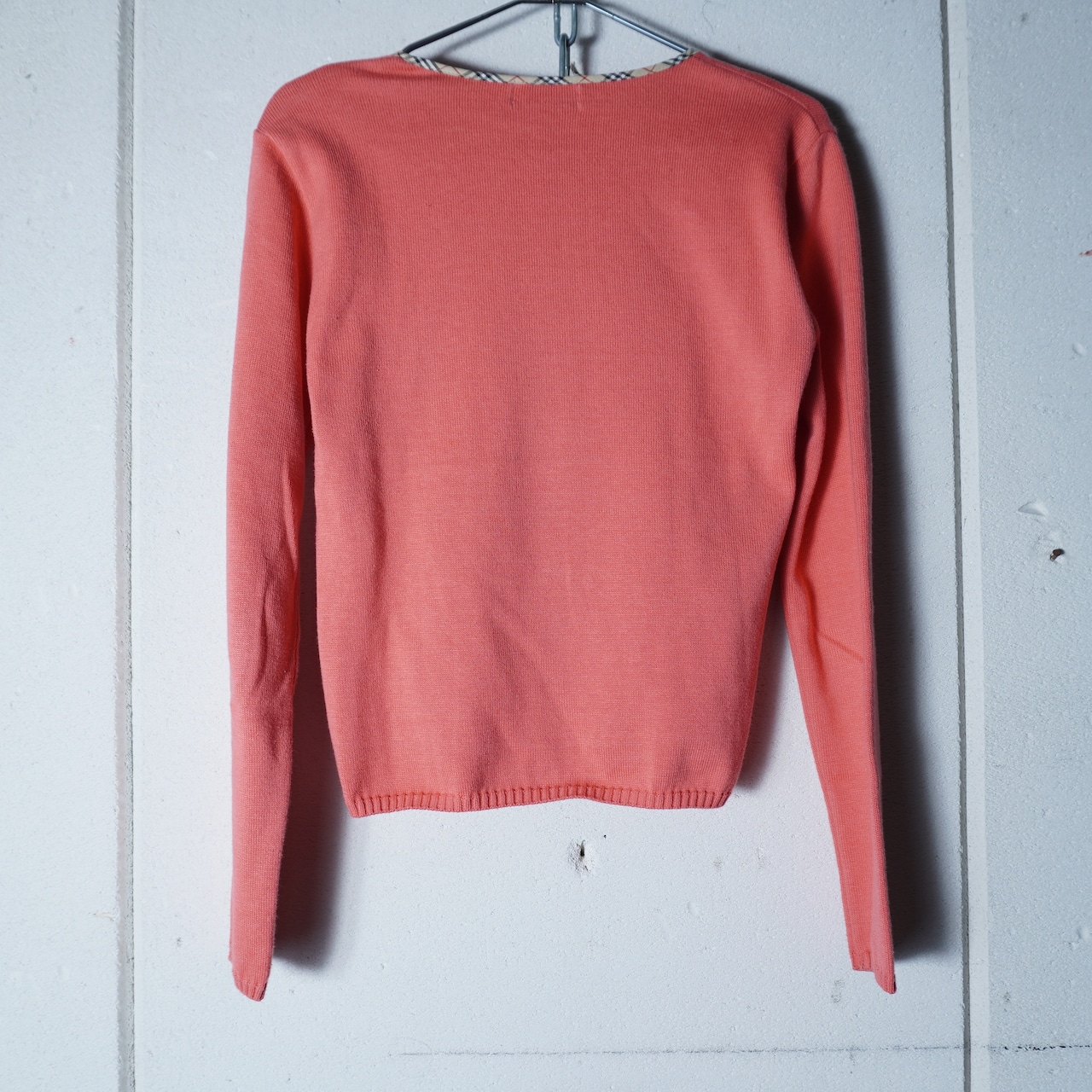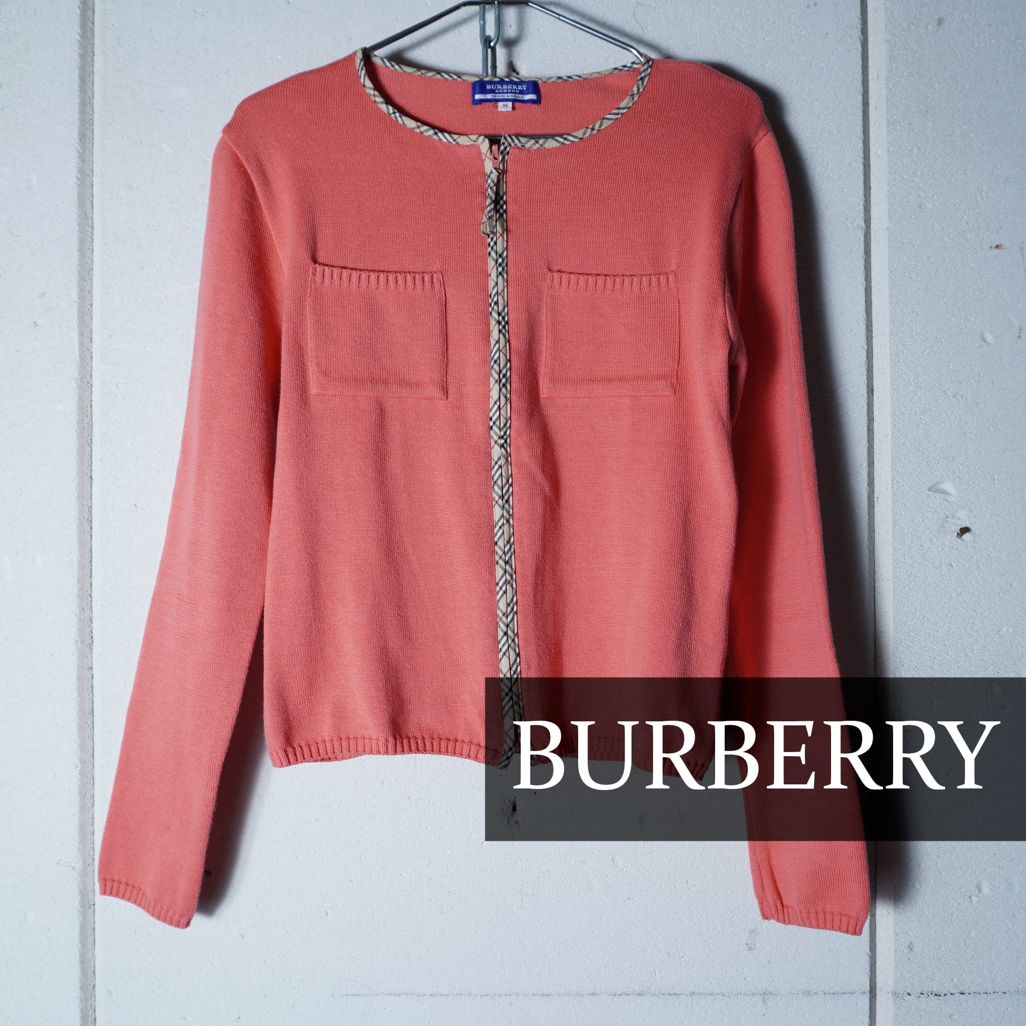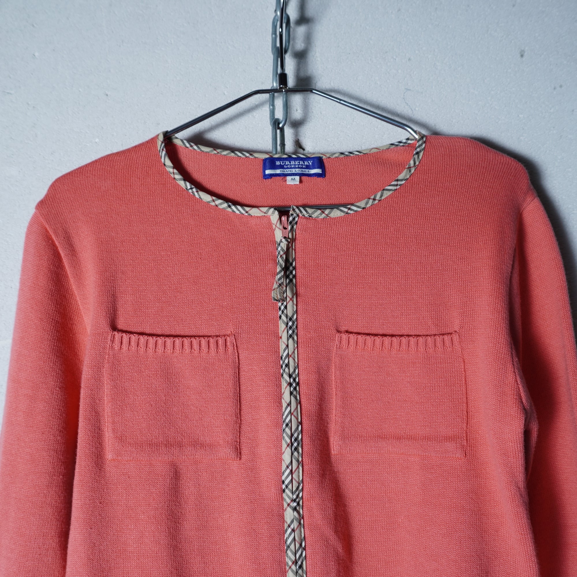 【BURBERRY】バーバリー "ノヴァチェック” ジップアップニットカーディガン pink