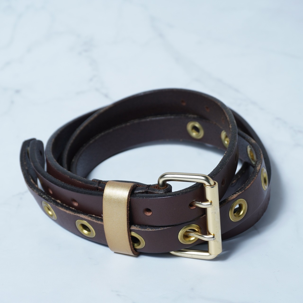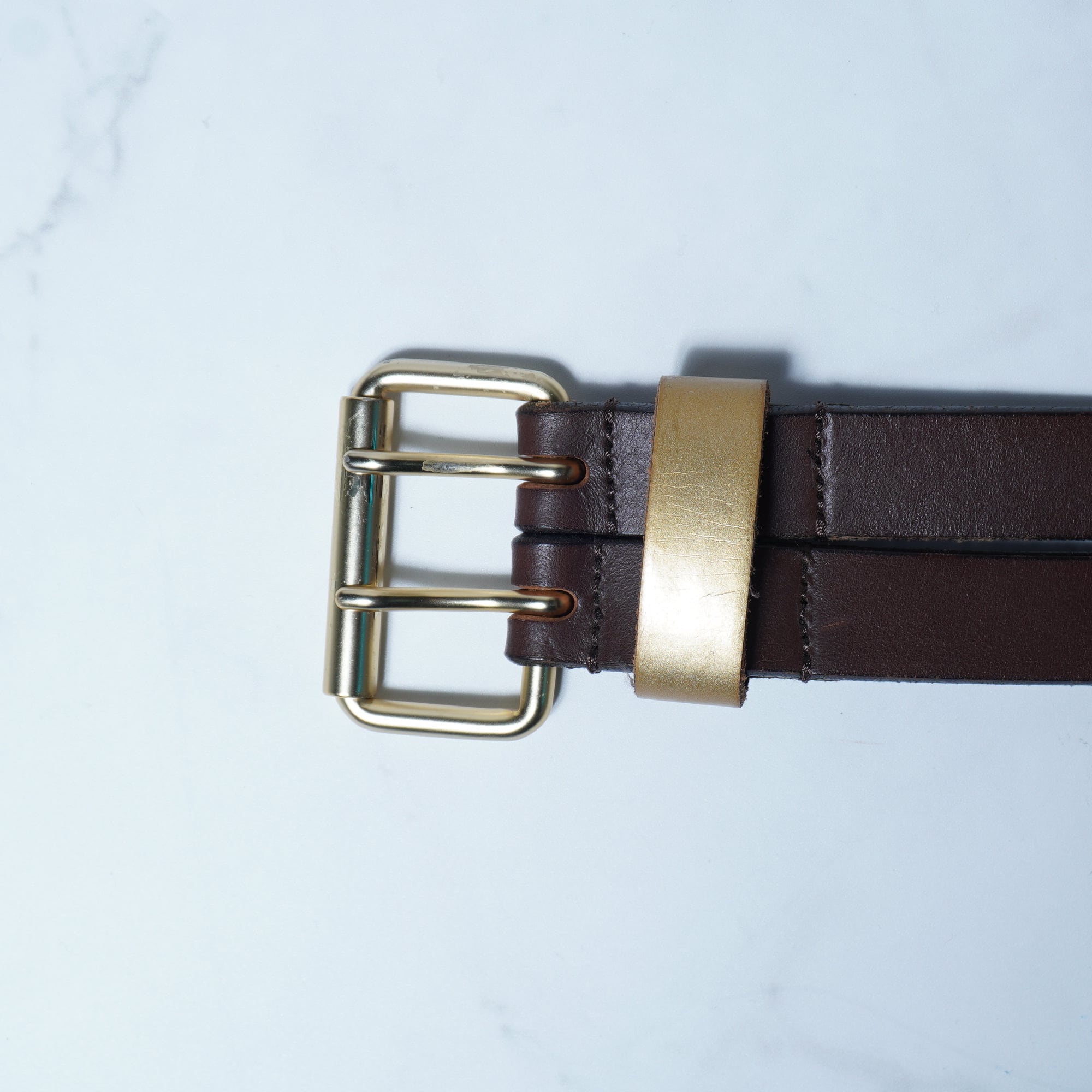 Vivienne Westwomwmd "オーブロゴ" ダブルホールゴールドバックルレザーベルト brown