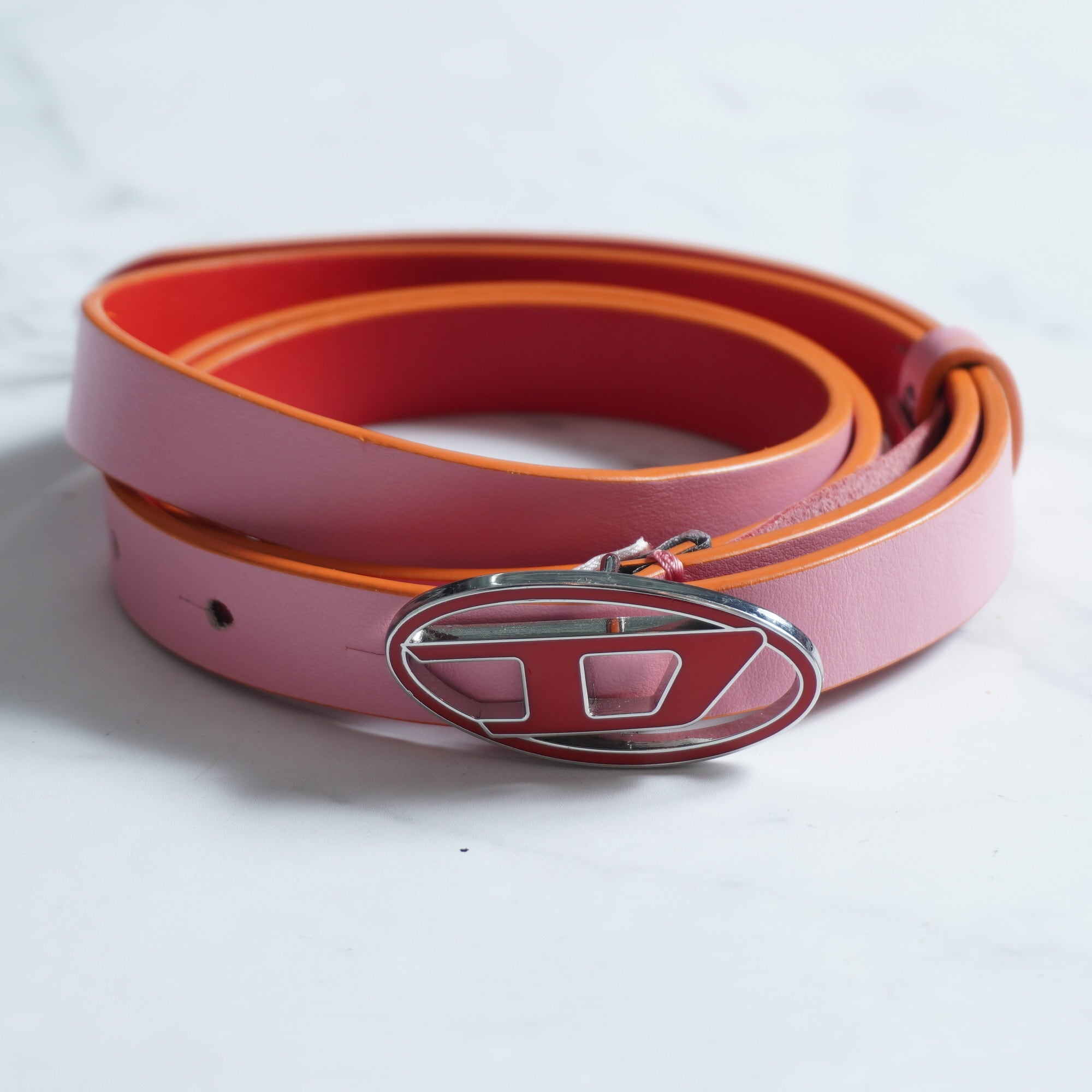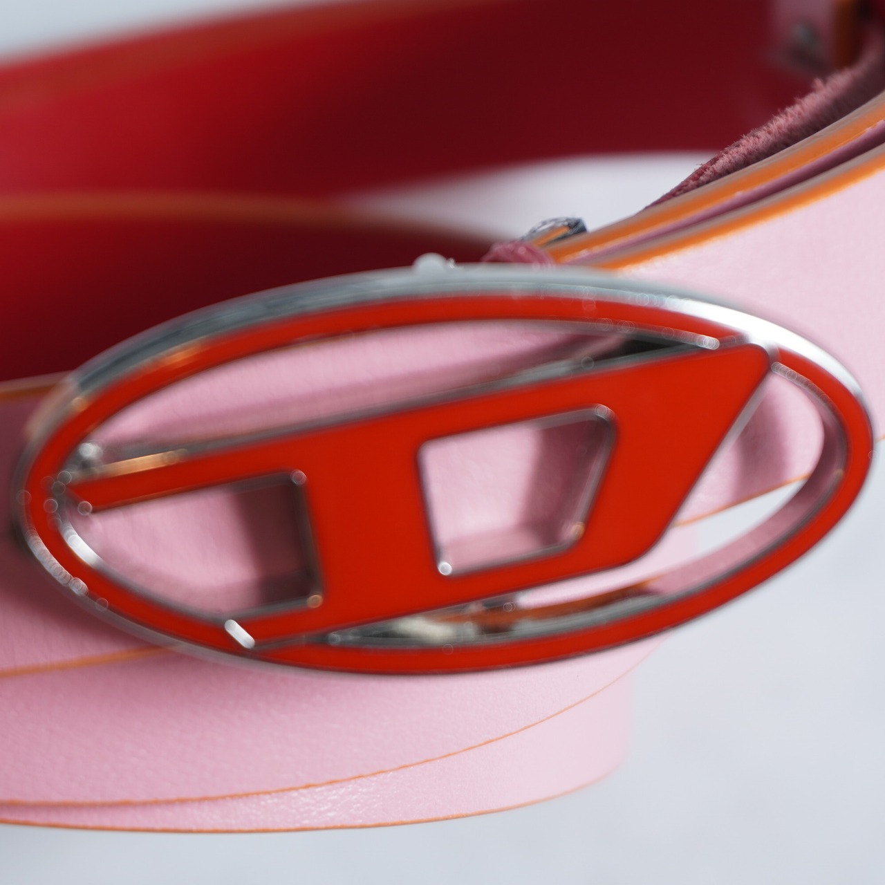 DIESEL 現行品 "Dロゴ" カウレザーベルト 80 pink