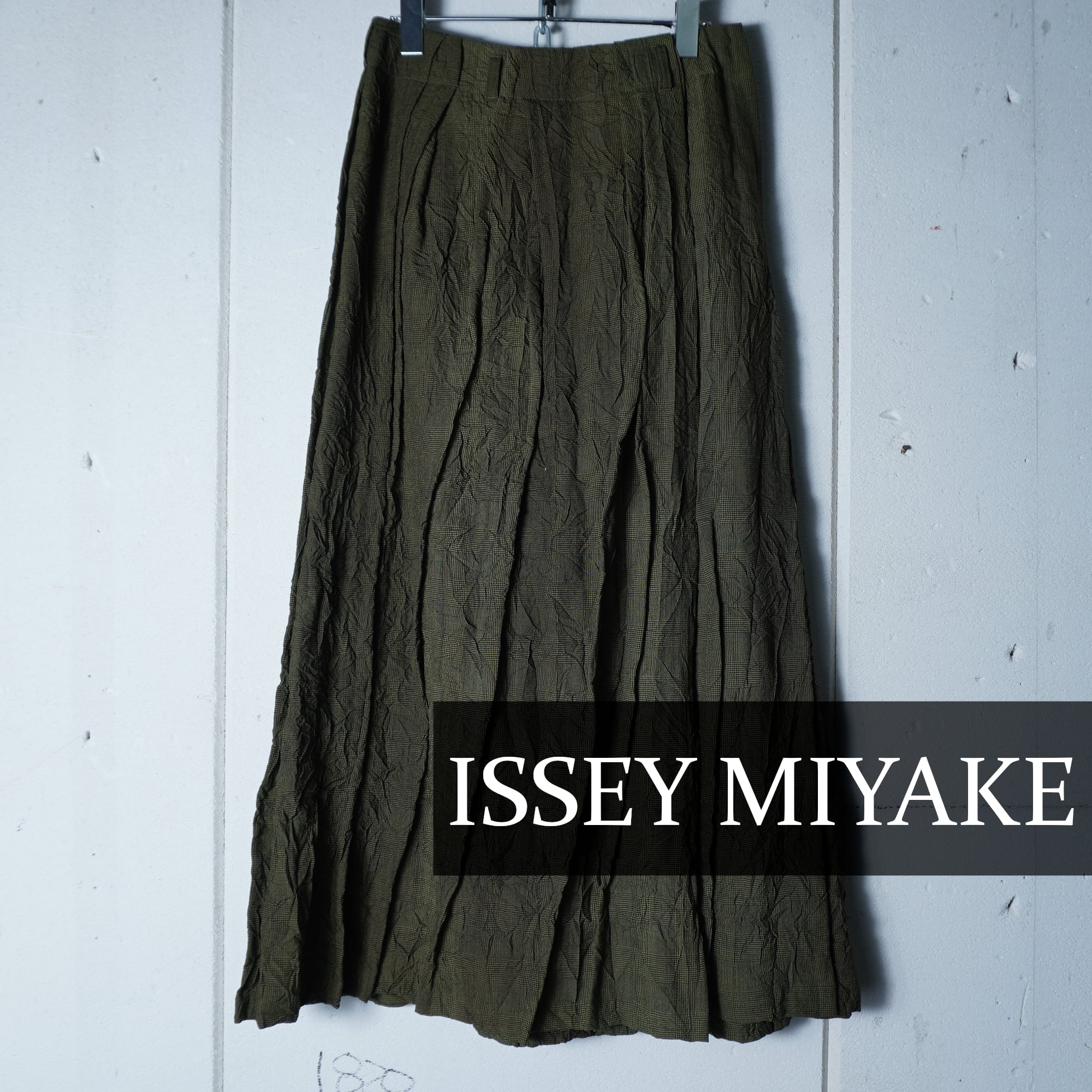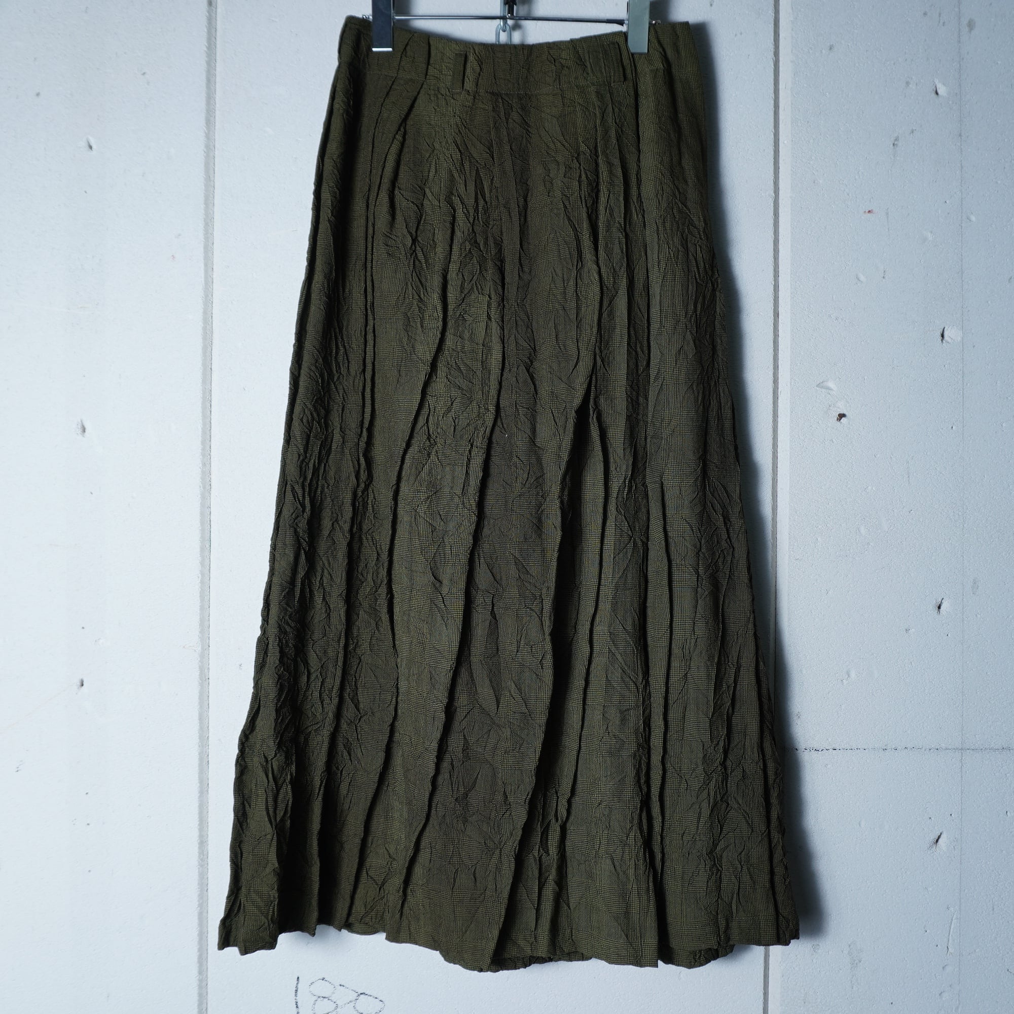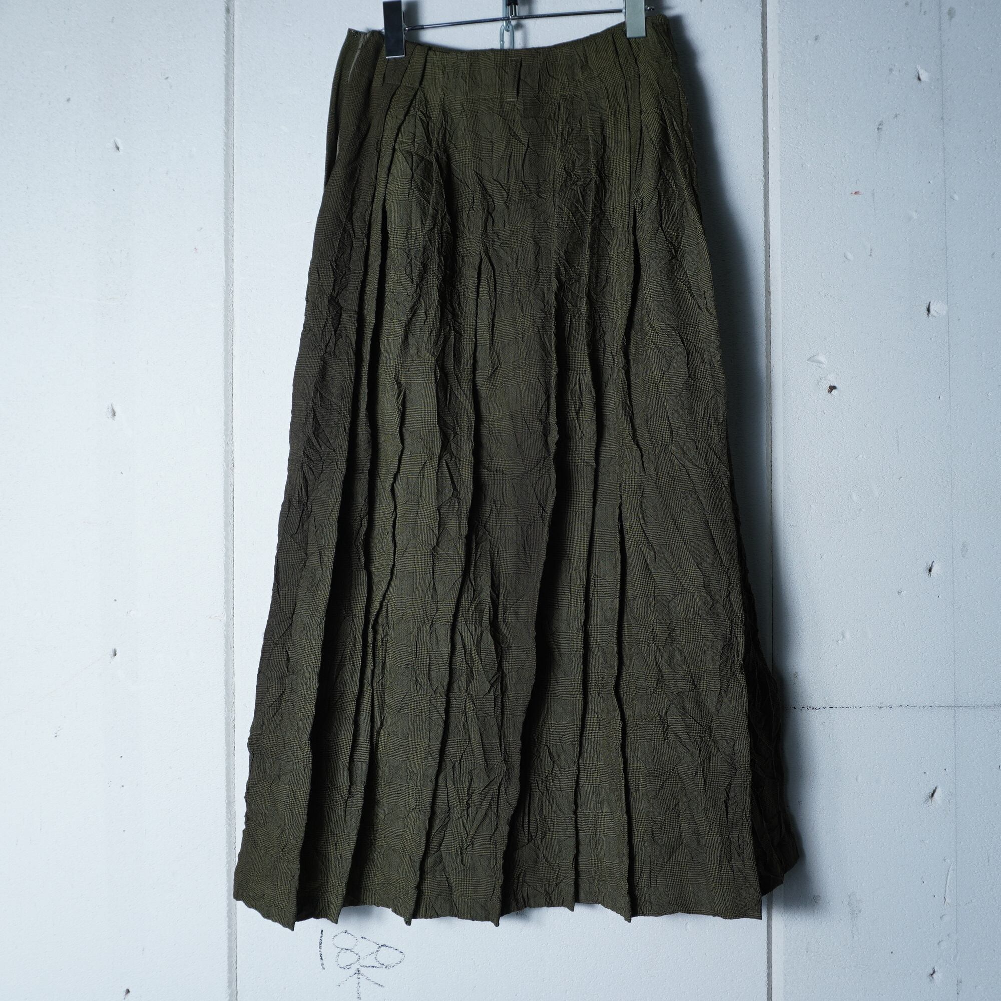 【ISSEY MIYAKE】イッセイミヤケhai sporting gear "ARCHIVE" シワ加工ランダム染プリーツスカート khaki
