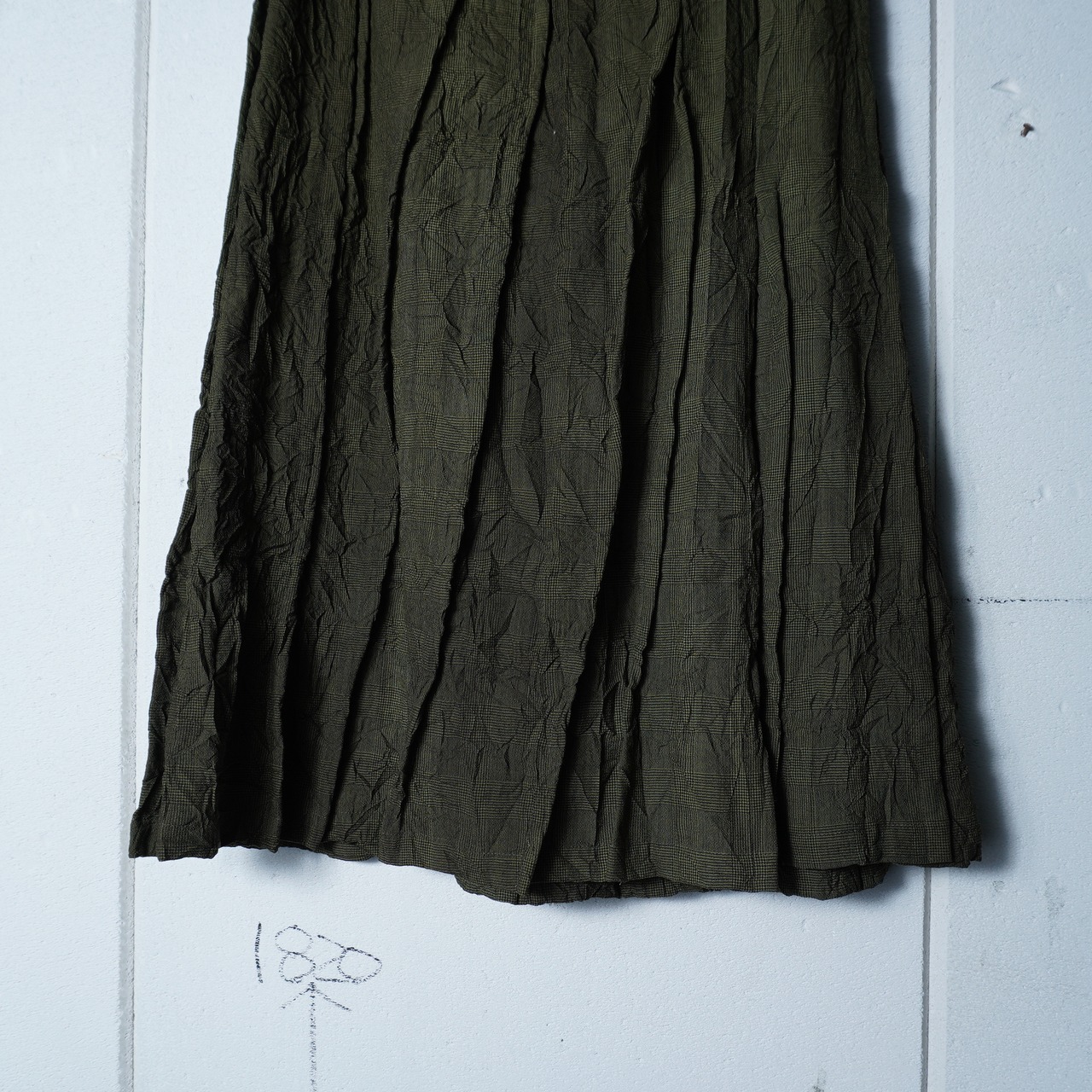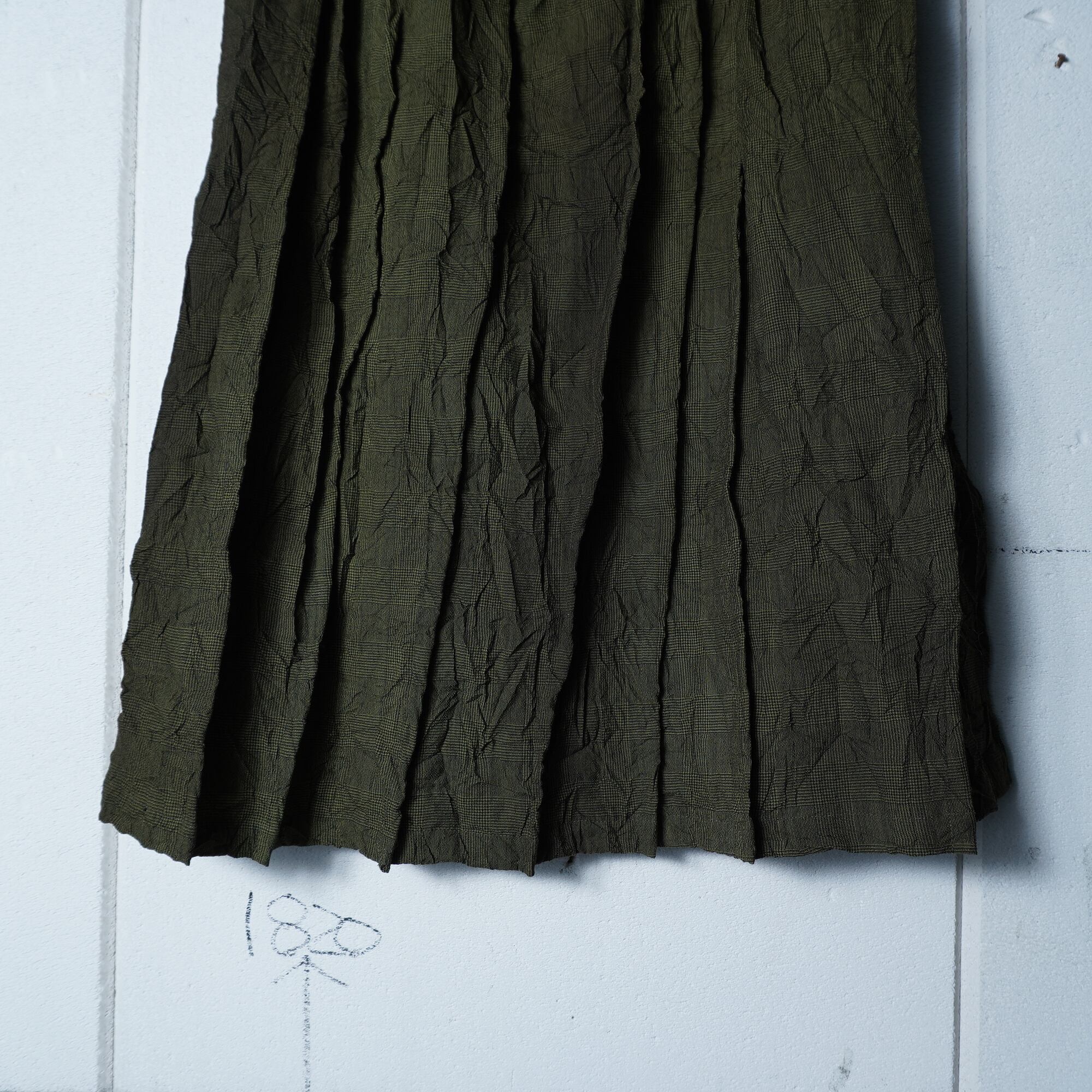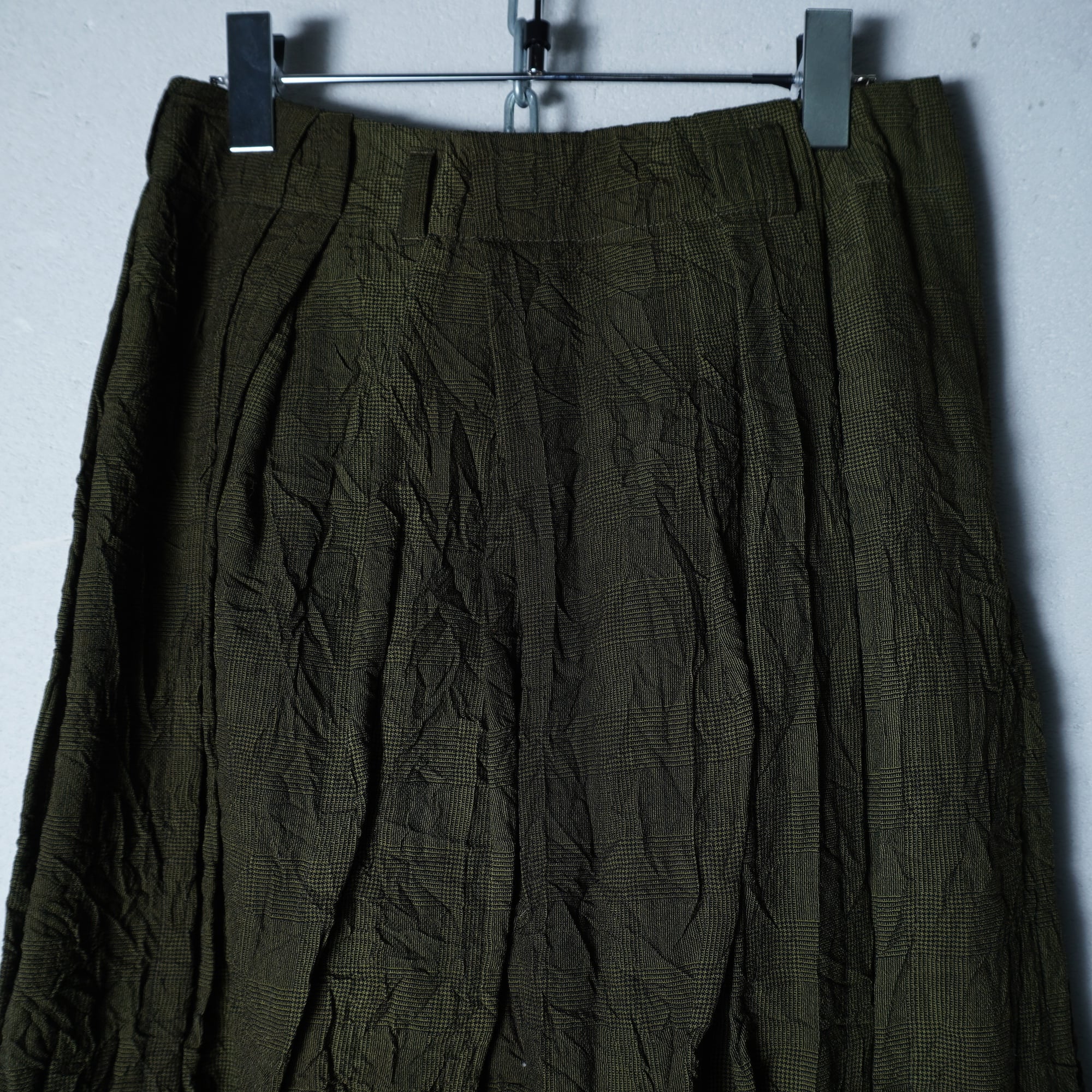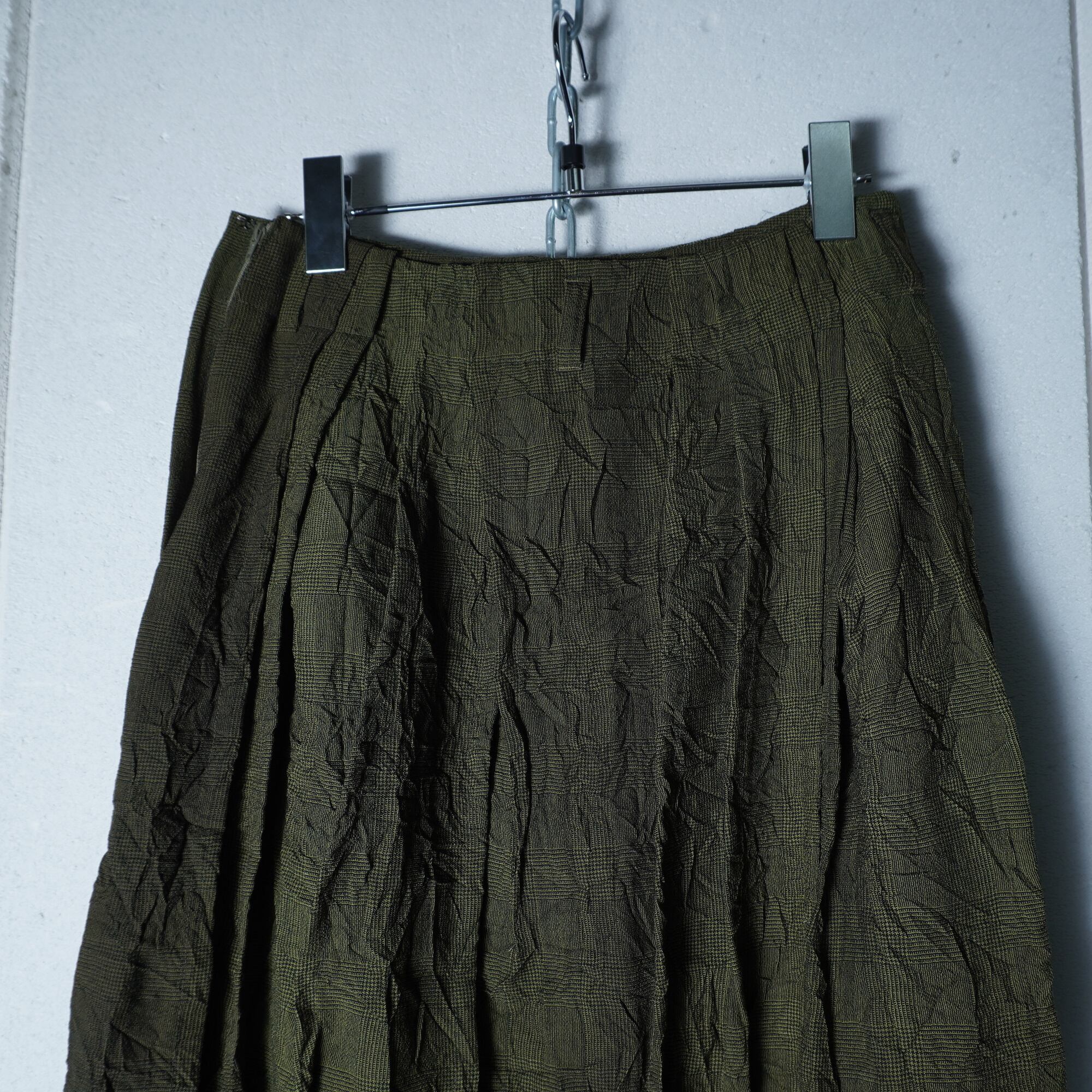 【ISSEY MIYAKE】イッセイミヤケhai sporting gear "ARCHIVE" シワ加工ランダム染プリーツスカート khaki
