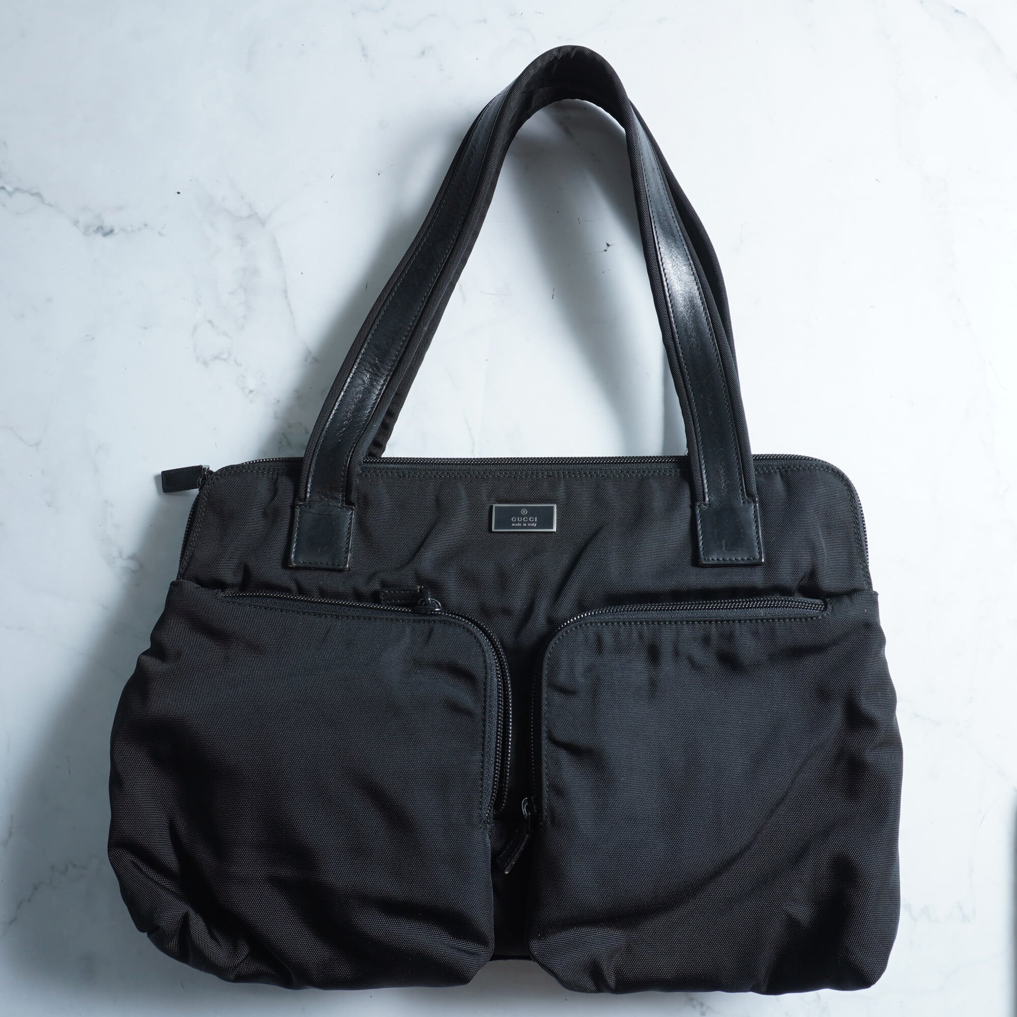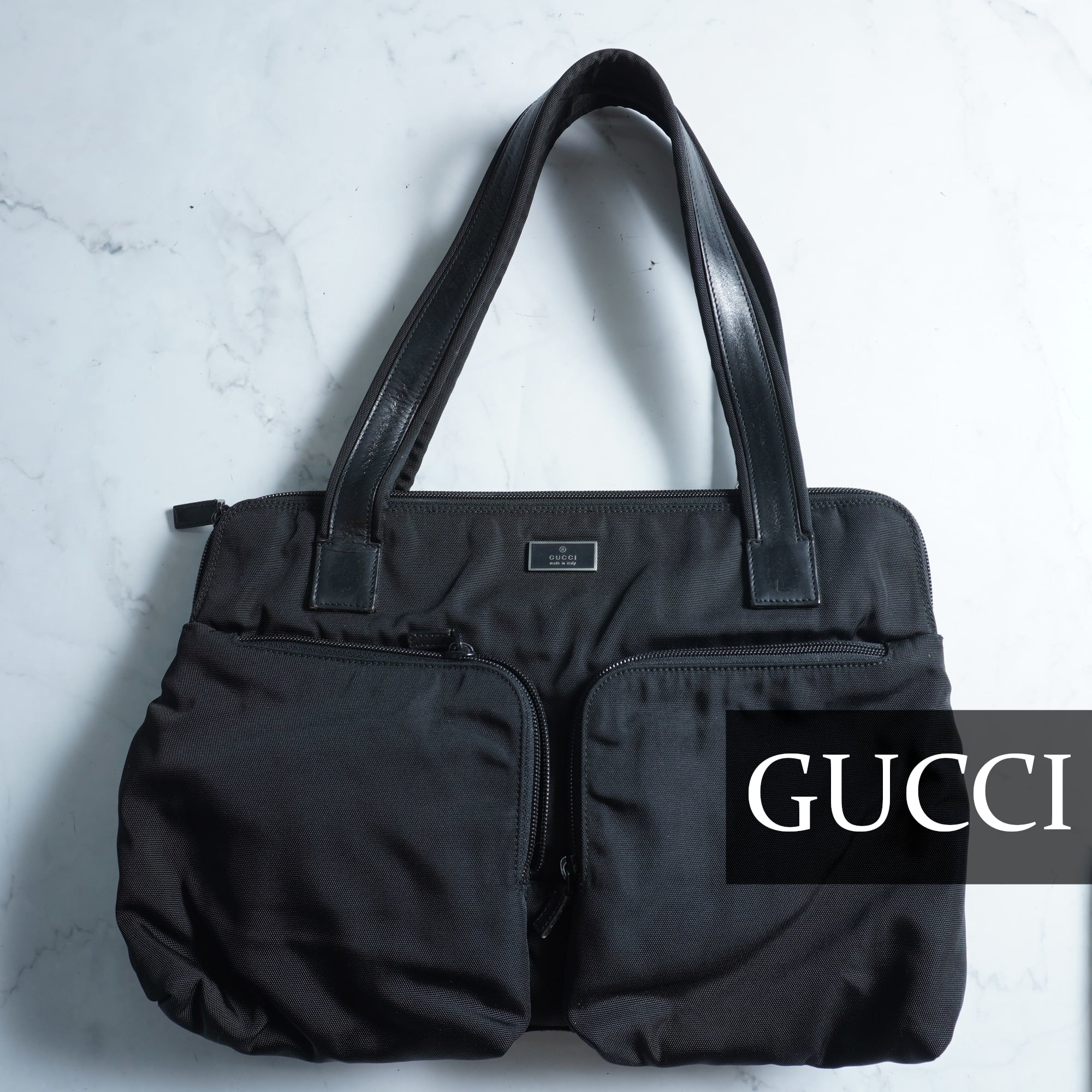 【GUCCI】グッチ レザー切替ナイロンハンドバッグブリーフケース black