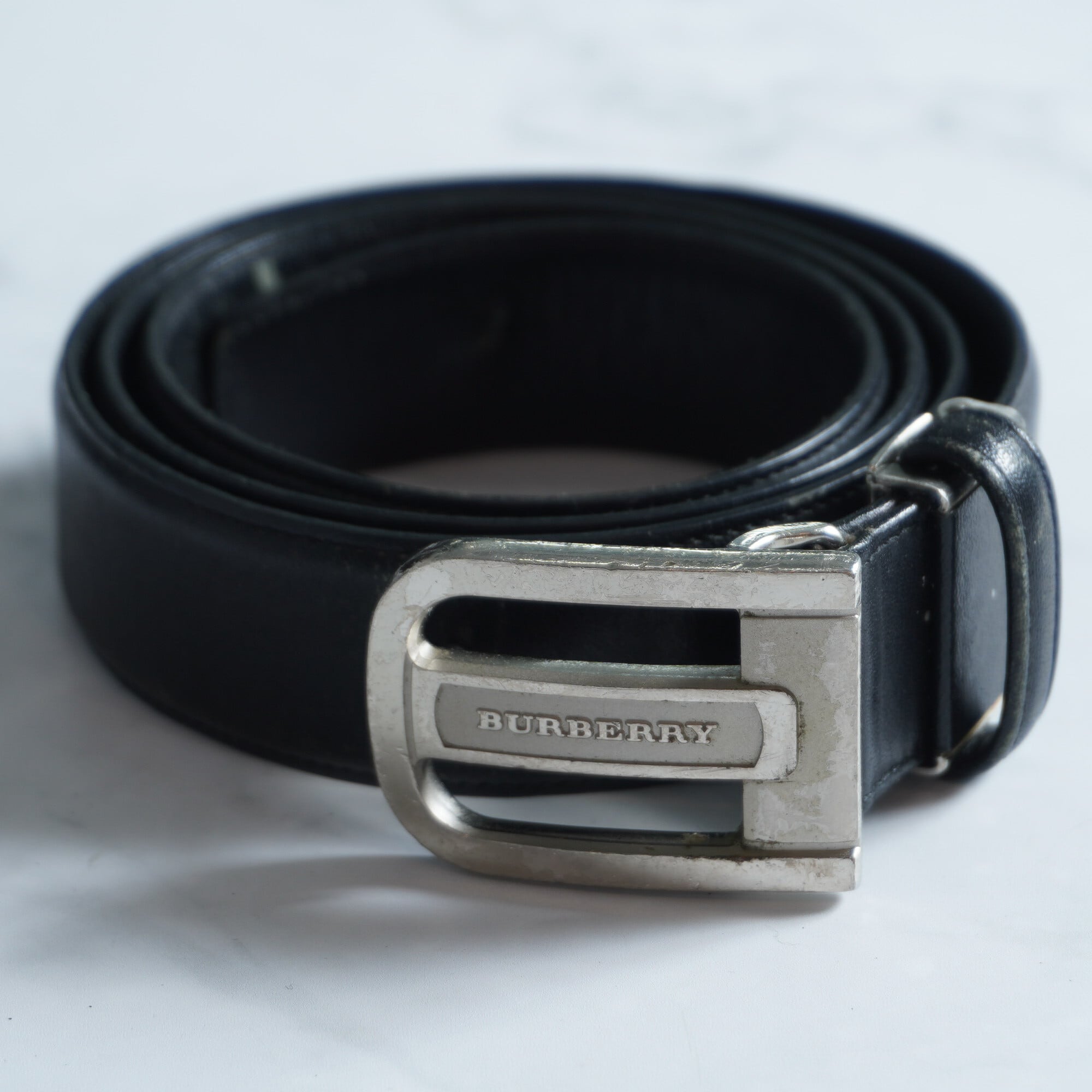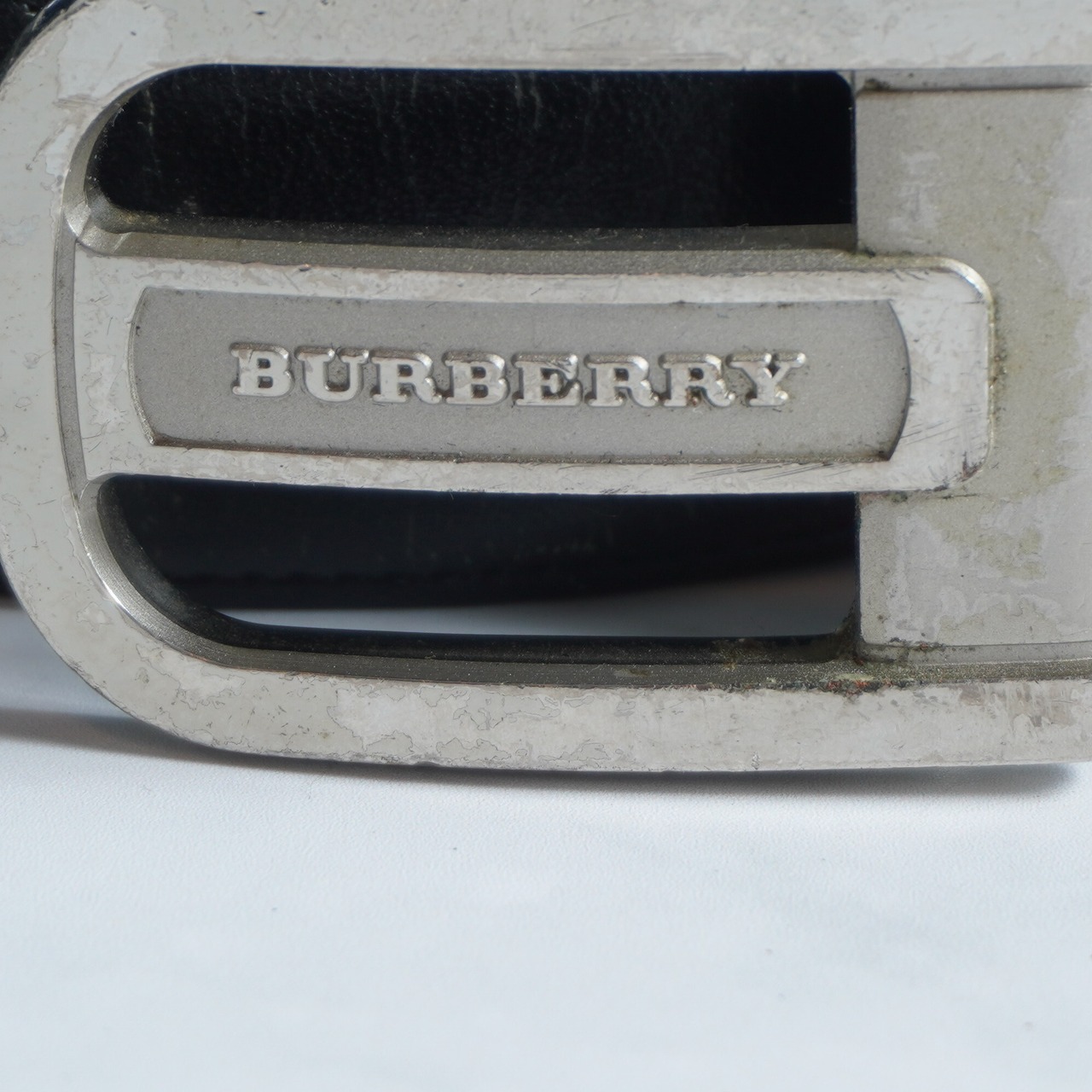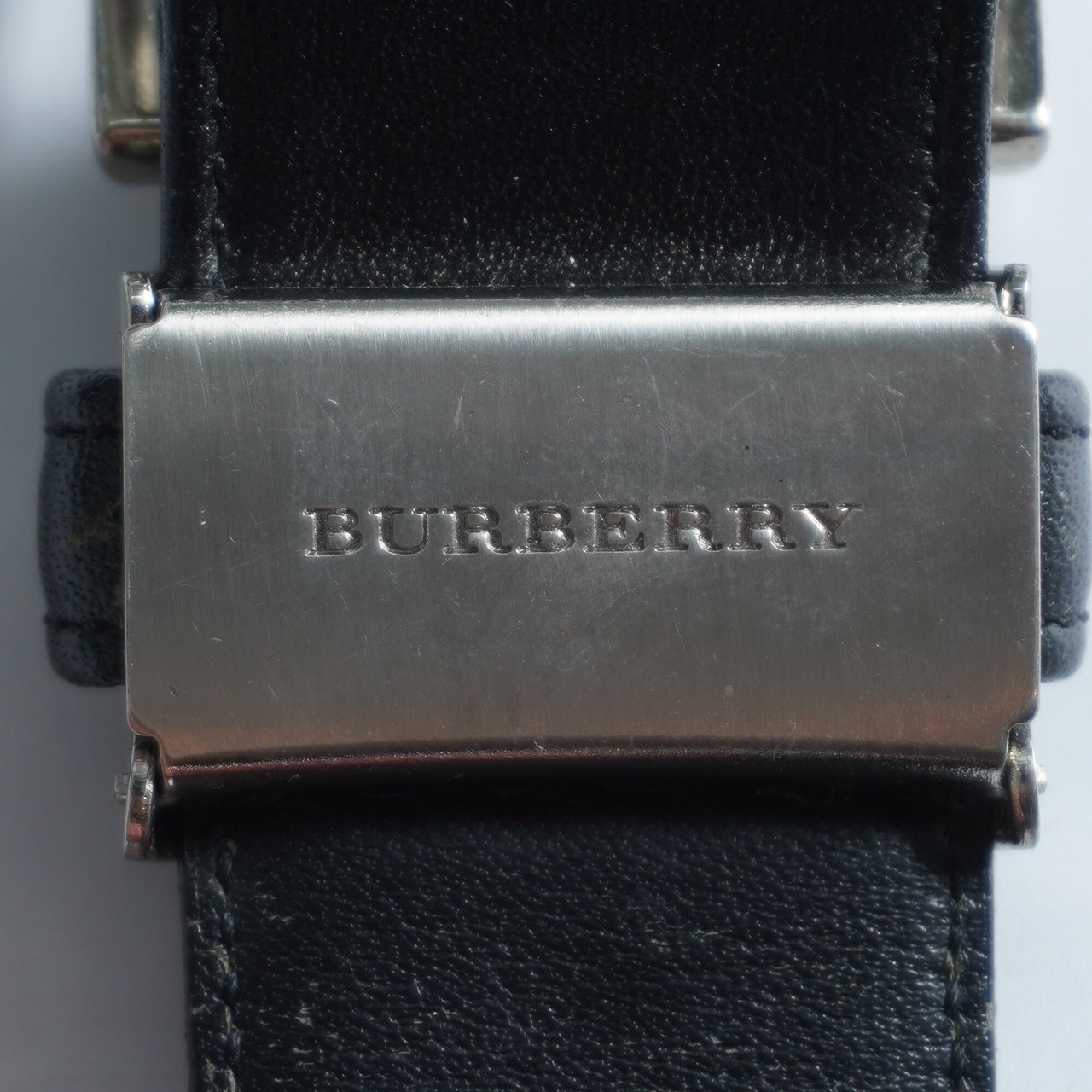 ・アイコニックなバーバリーのロゴが印象的なバックル