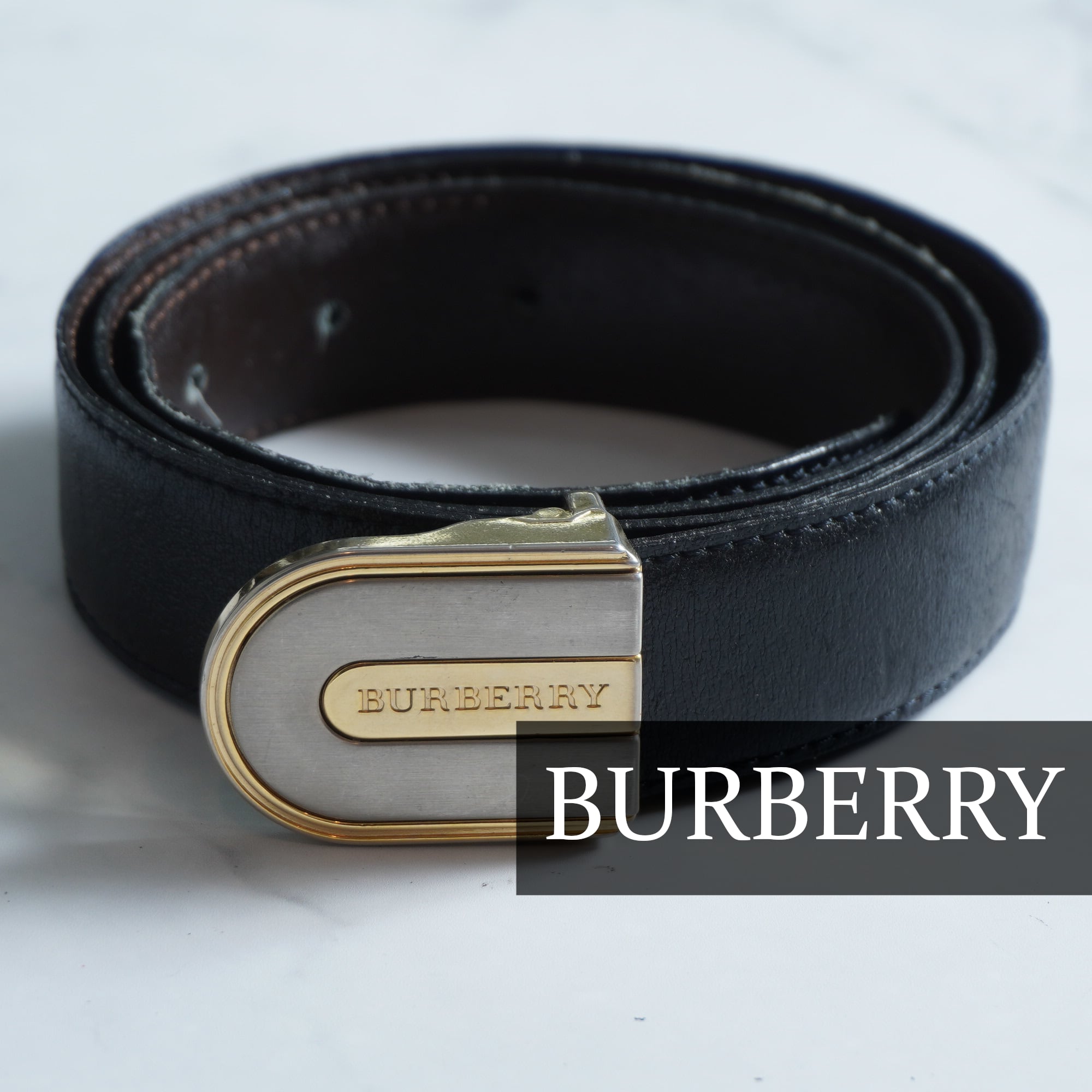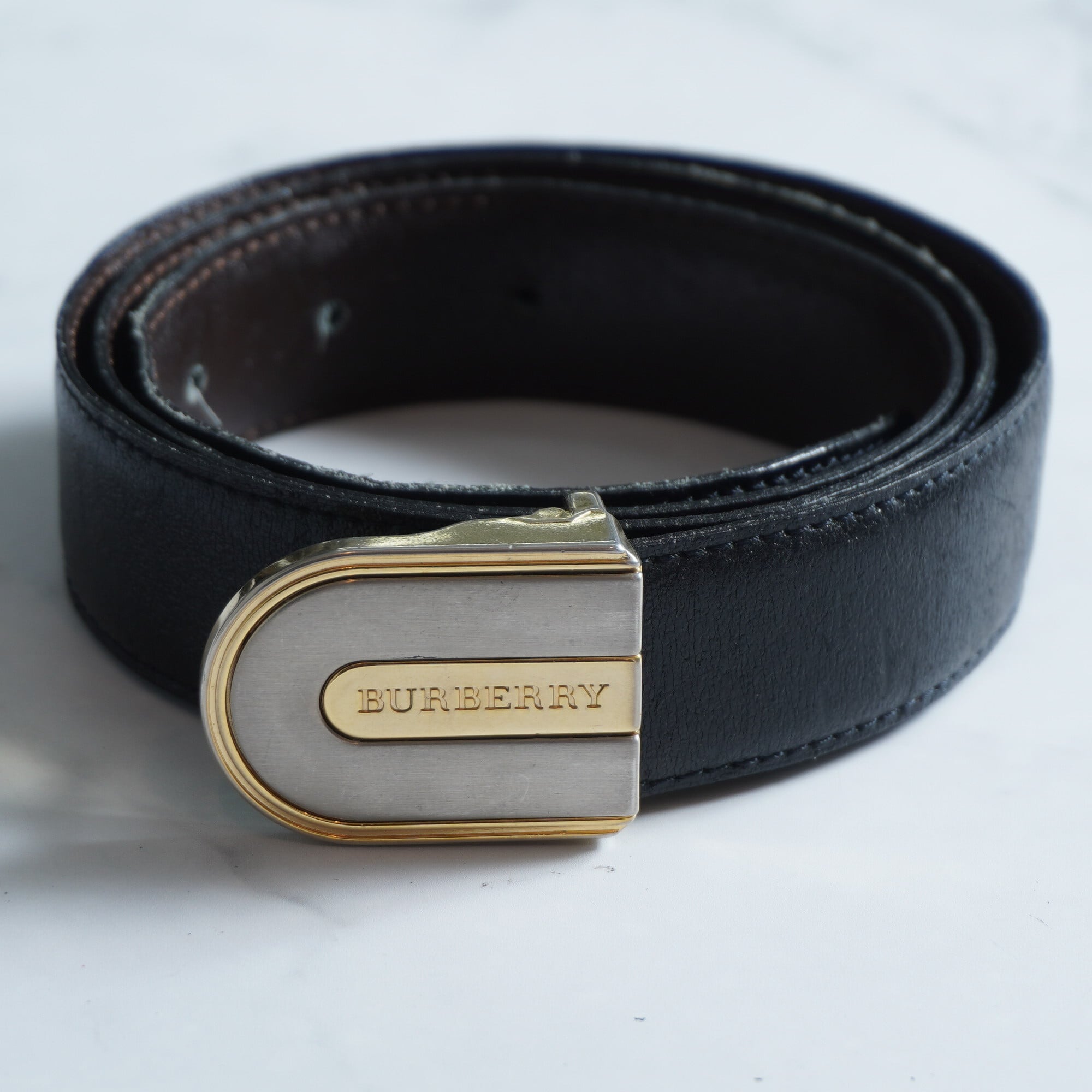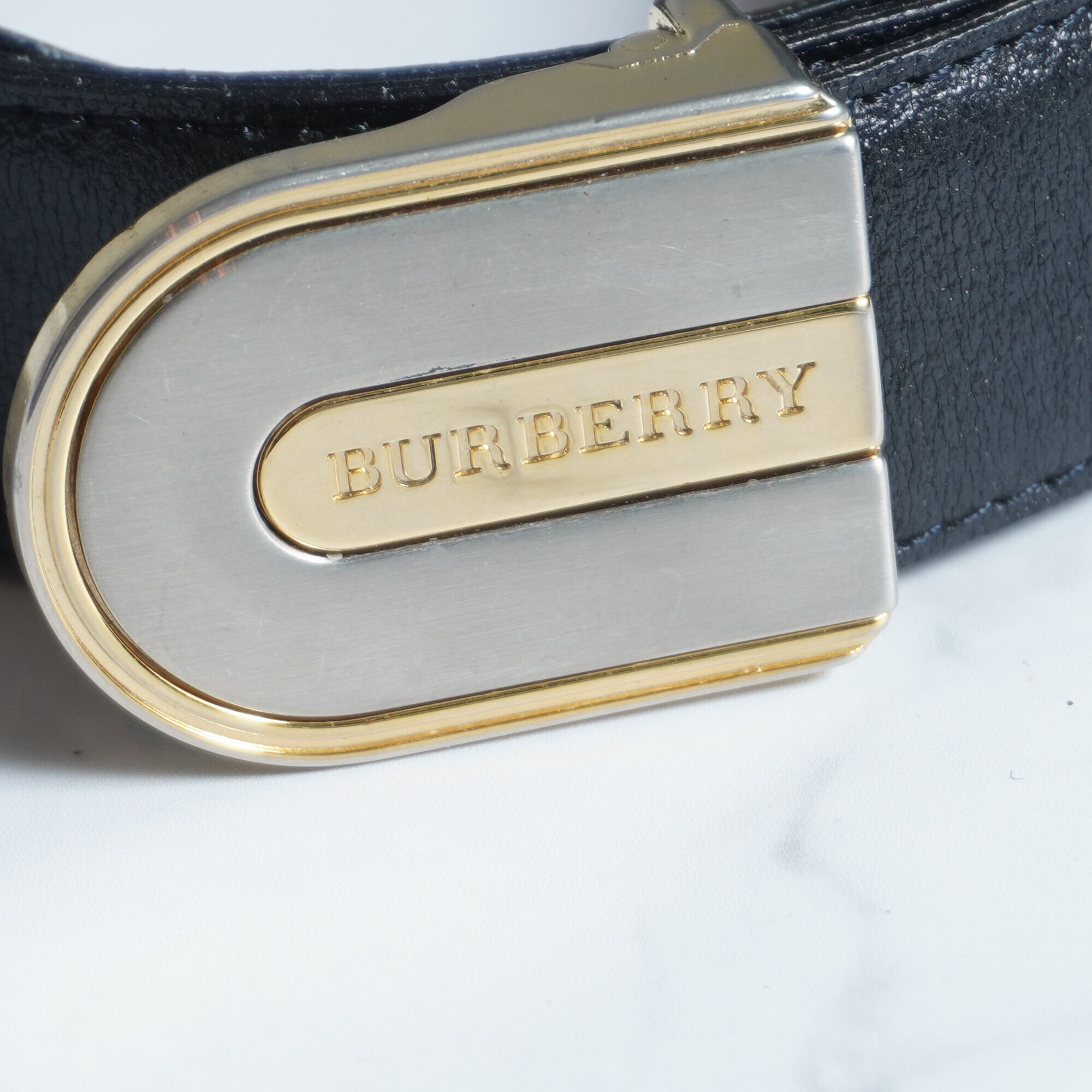 【BURBERRY】バーバリーLONDON ロゴ刻印バックルレザーベルト black