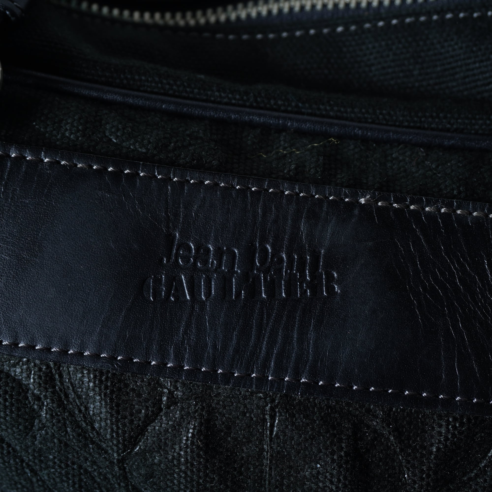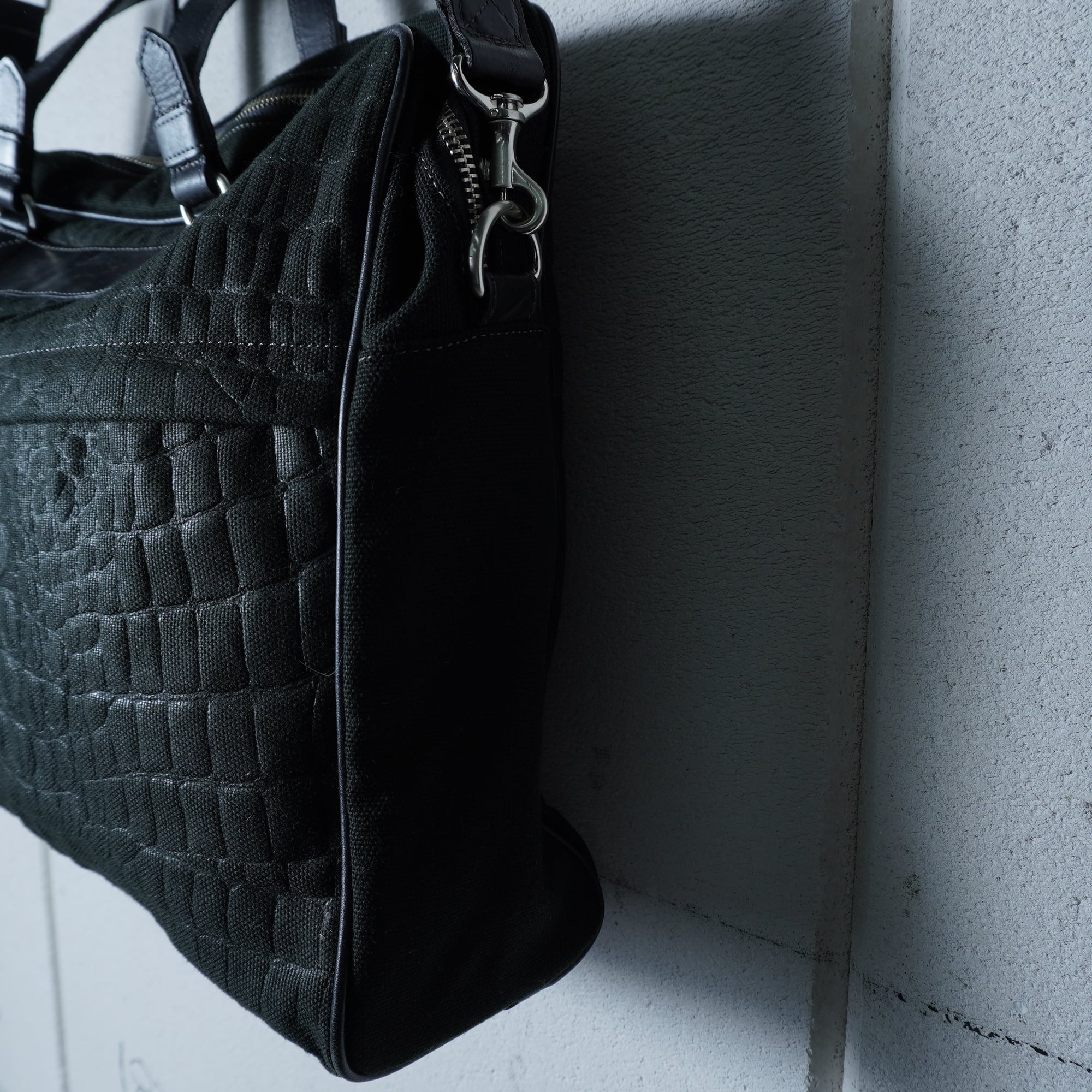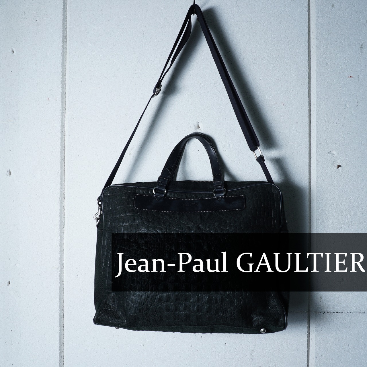 【Jean Paul GAULTIER】ジャンポールゴルチエ "ロゴ入" クロコダイル型押レザー切替2WAYショルダーハンドバッグ black