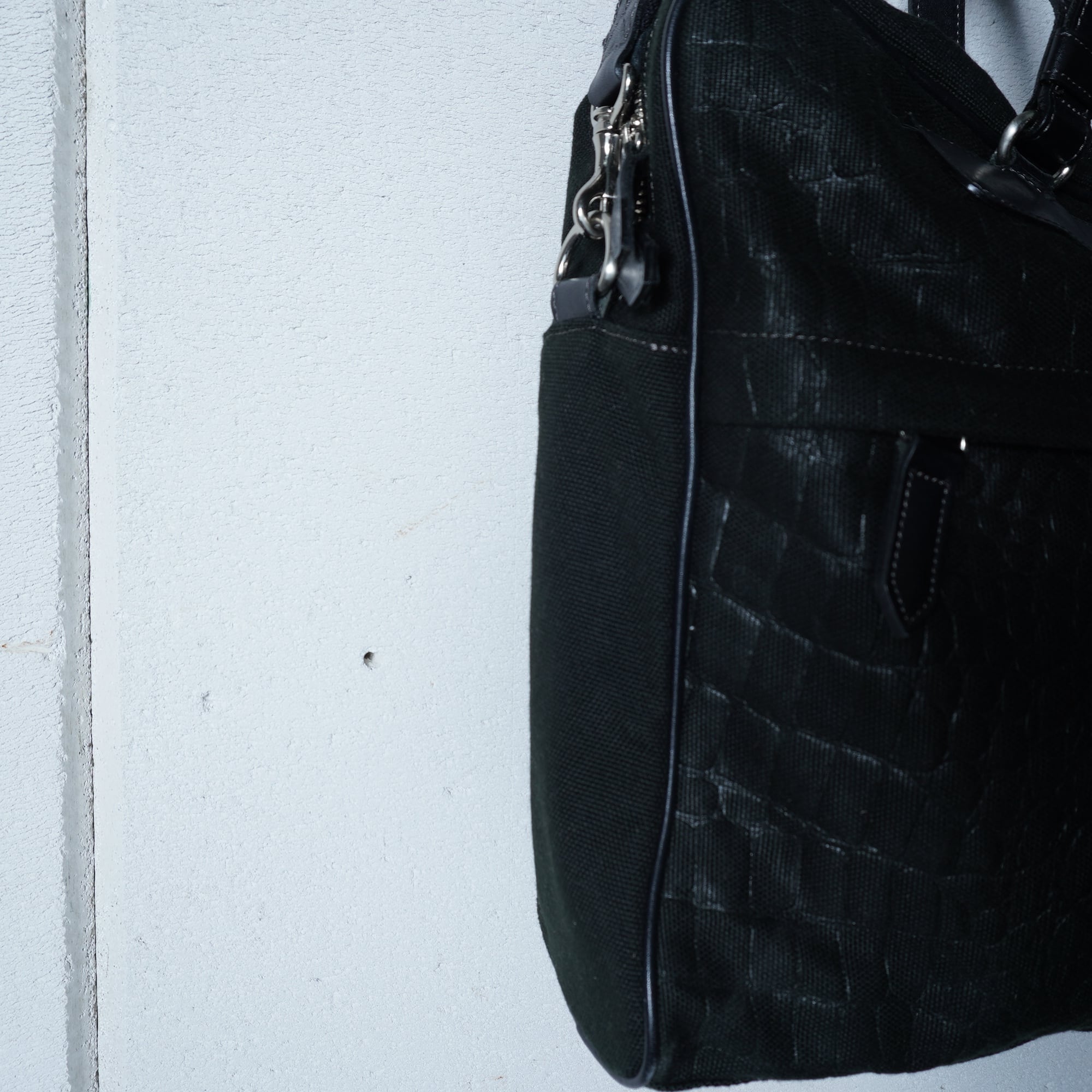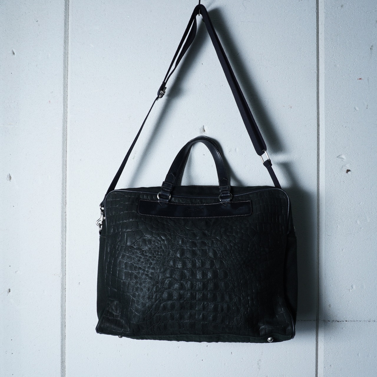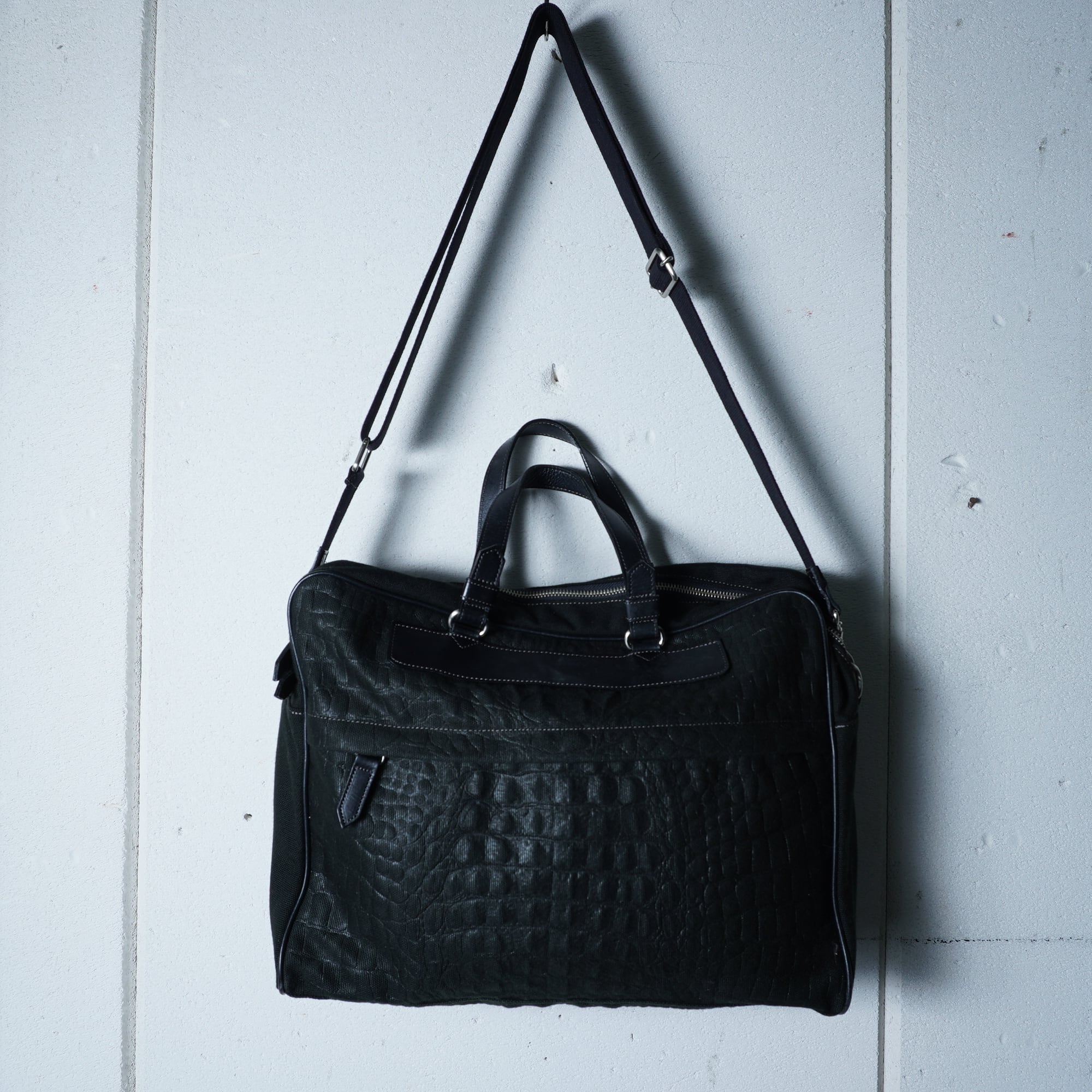 【Jean Paul GAULTIER】ジャンポールゴルチエ "ロゴ入" クロコダイル型押レザー切替2WAYショルダーハンドバッグ black