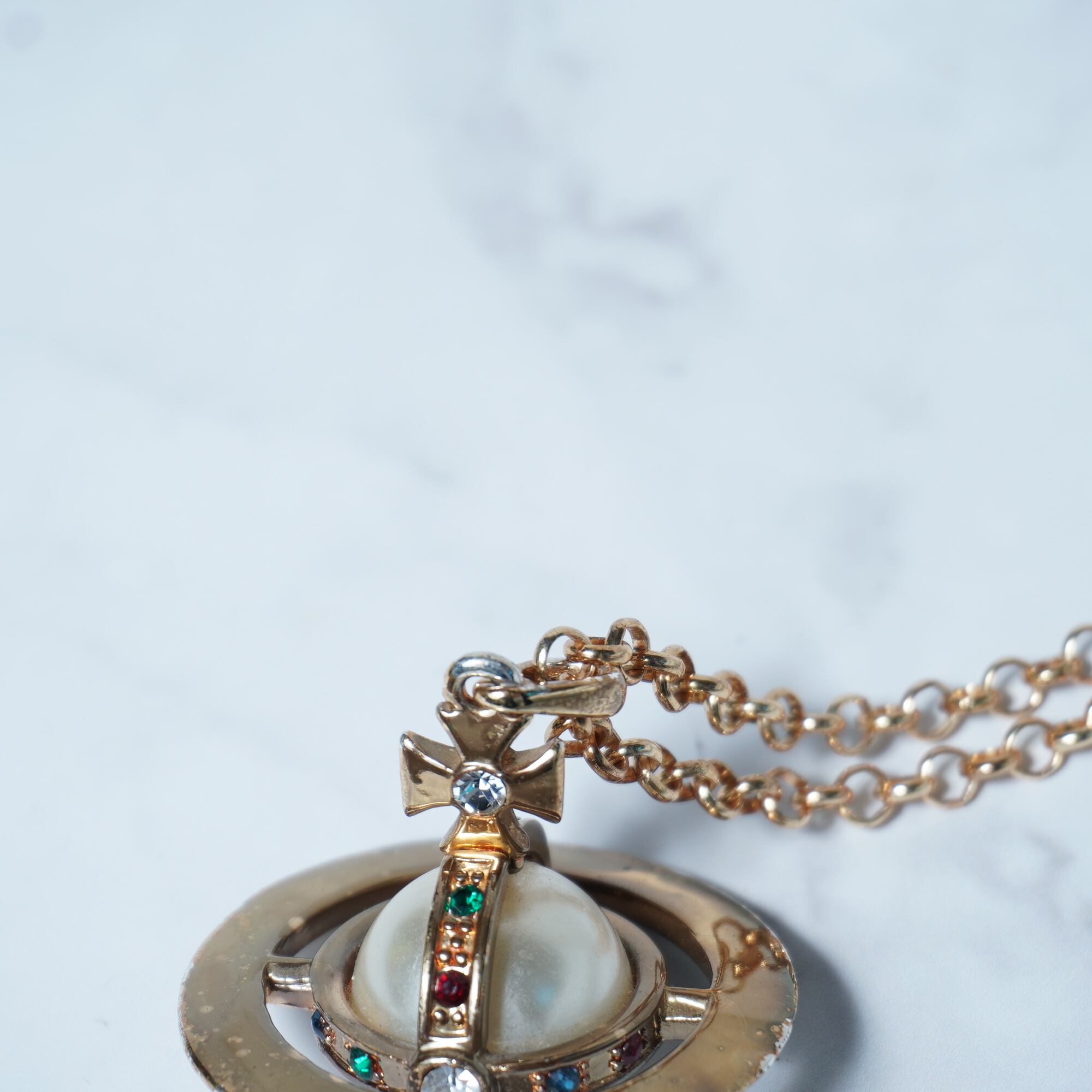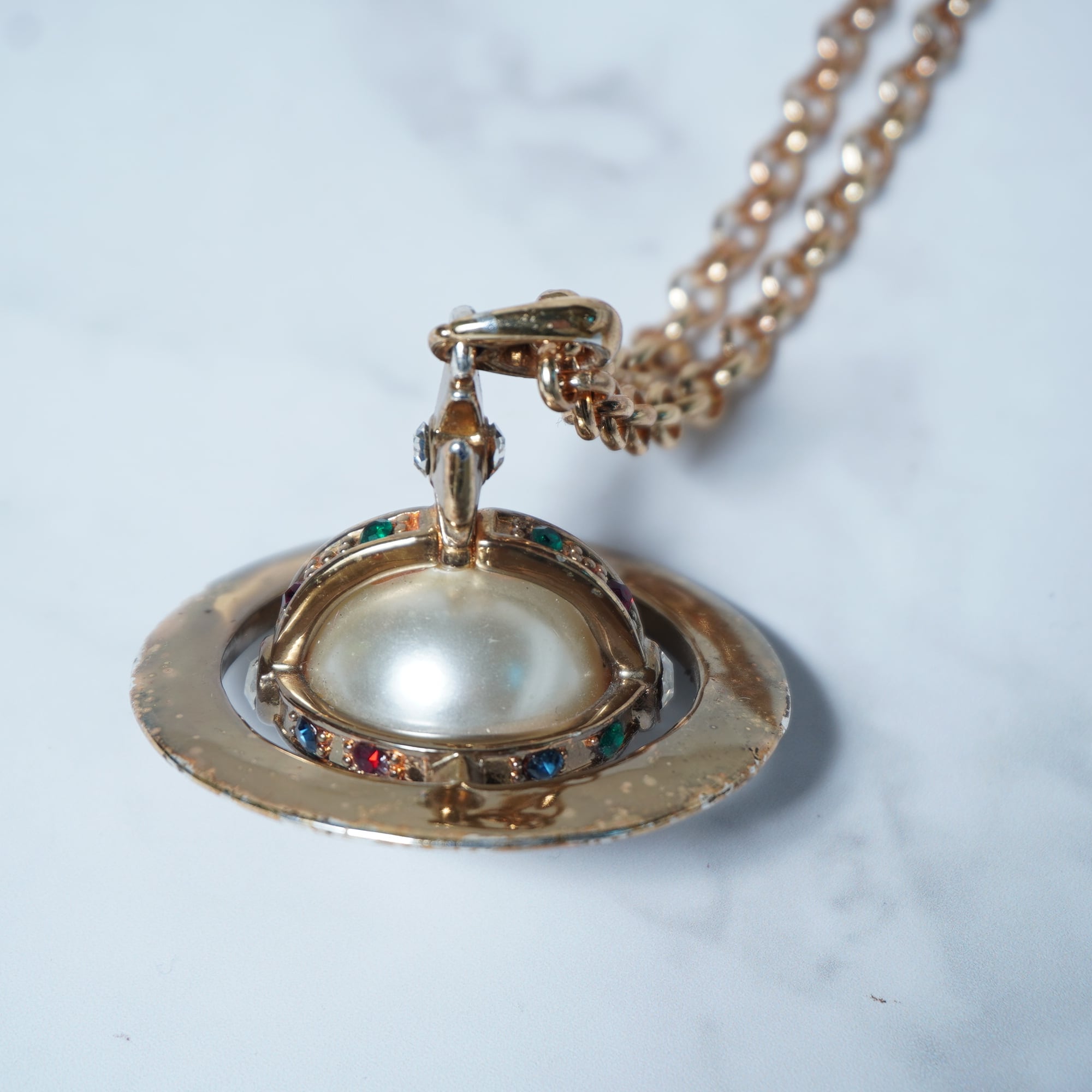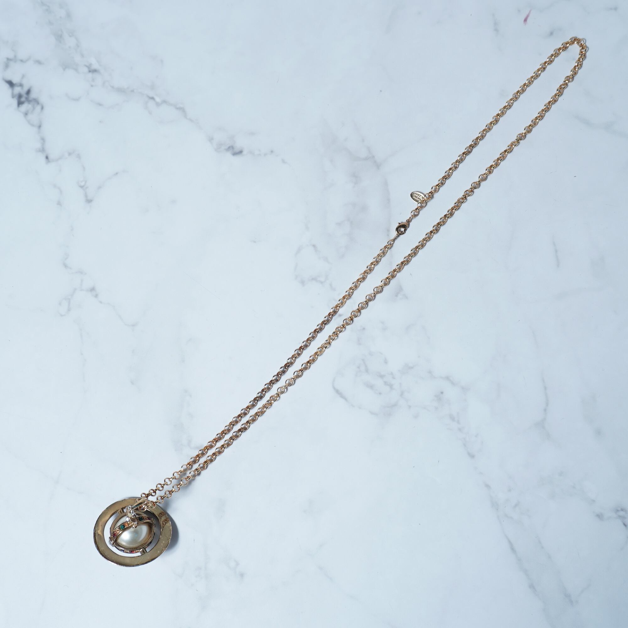 【Vivienne Westwood】ヴィヴィアンウエストウッド "3Dパールオーブロゴトップ" チェーンネックレス gold