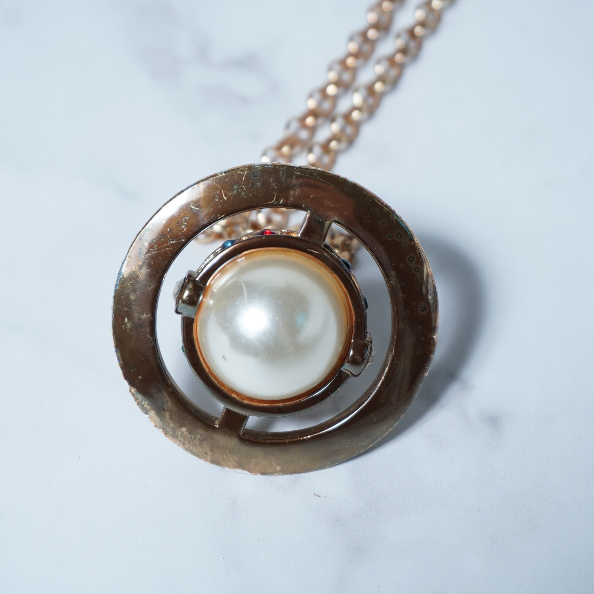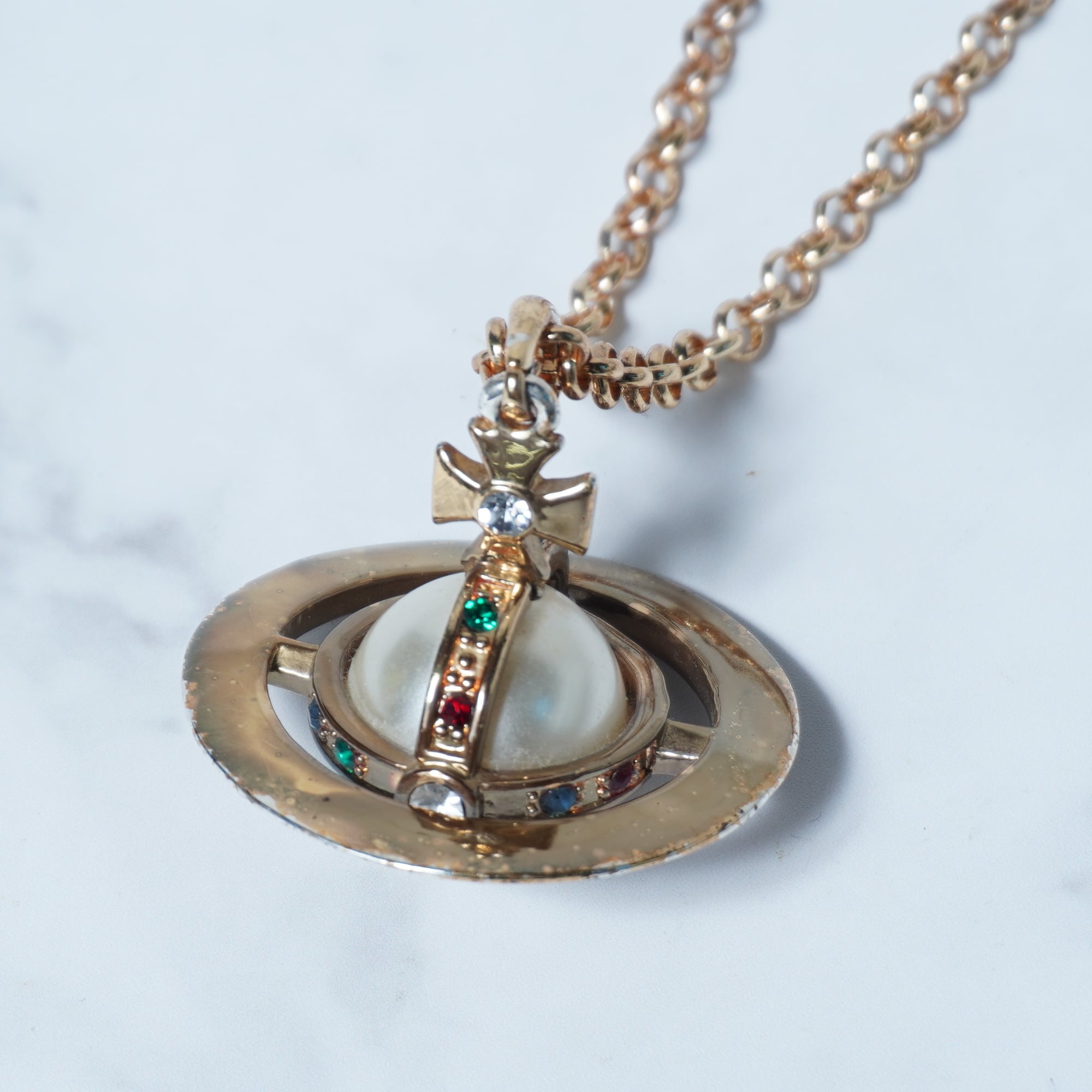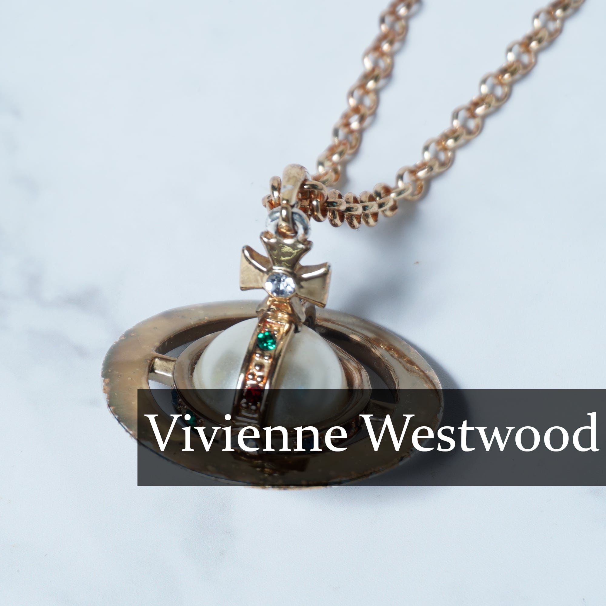 【Vivienne Westwood】ヴィヴィアンウエストウッド "3Dパールオーブロゴトップ" チェーンネックレス gold