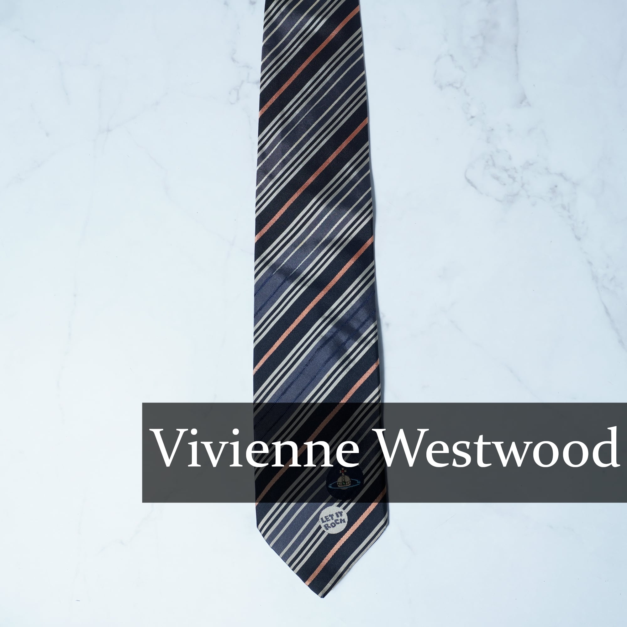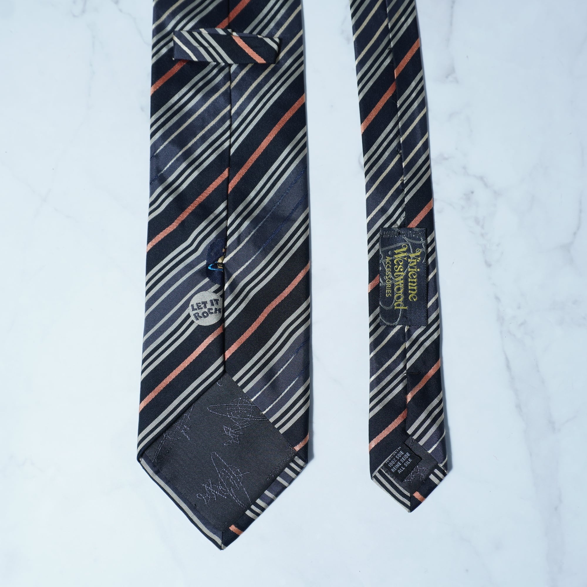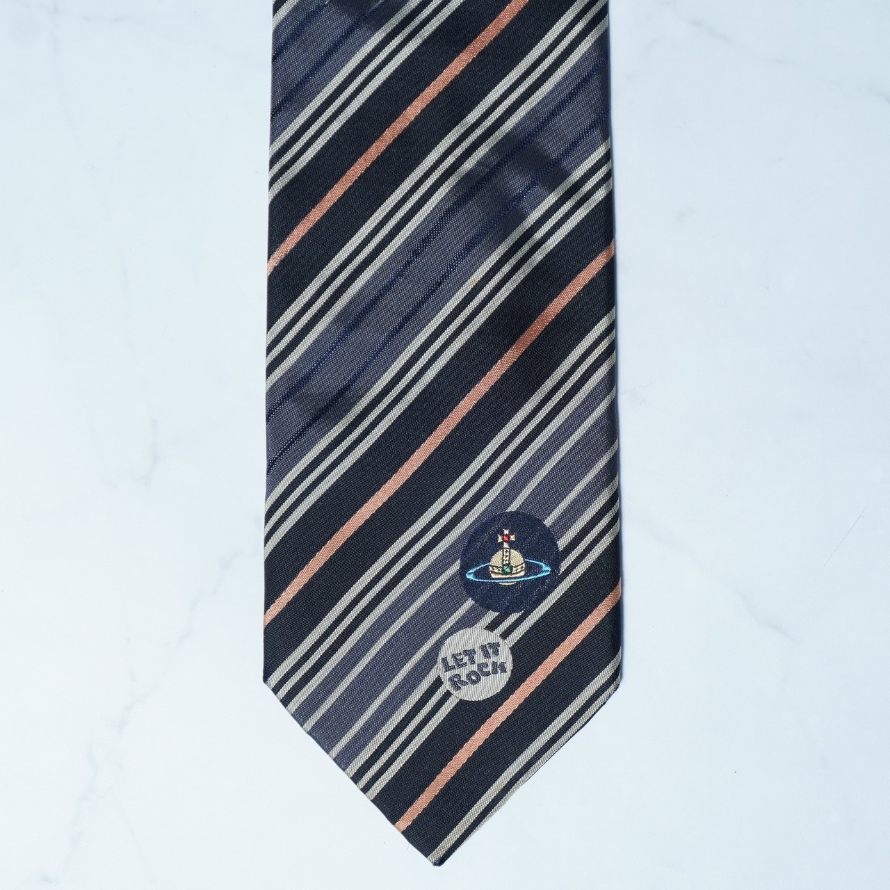 【Vivienne Westwood】ヴィヴィアンウエストウッド ”オーブロゴ” LET IT ROCK SILK100% レジメンタルネクタイ black&pink&beige