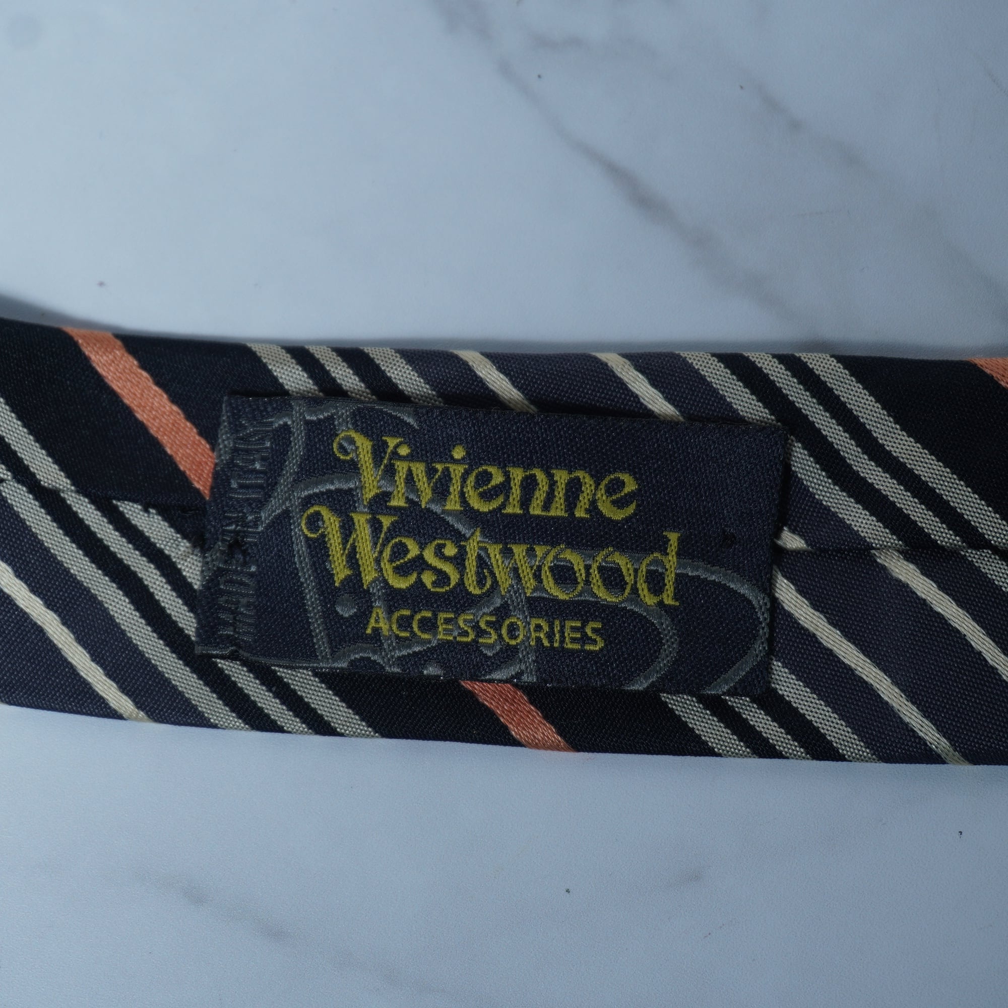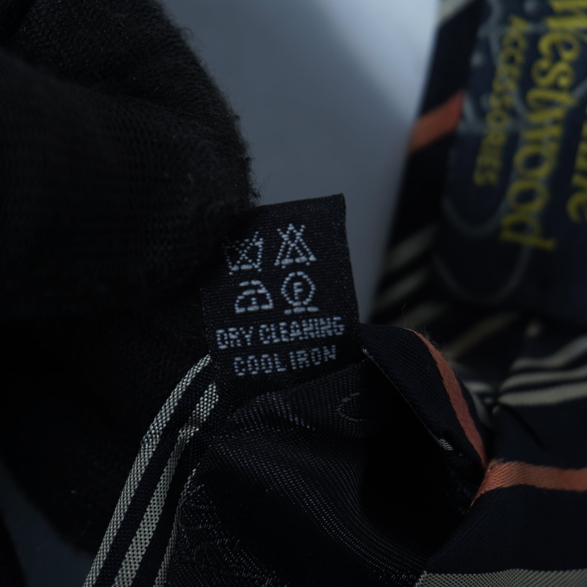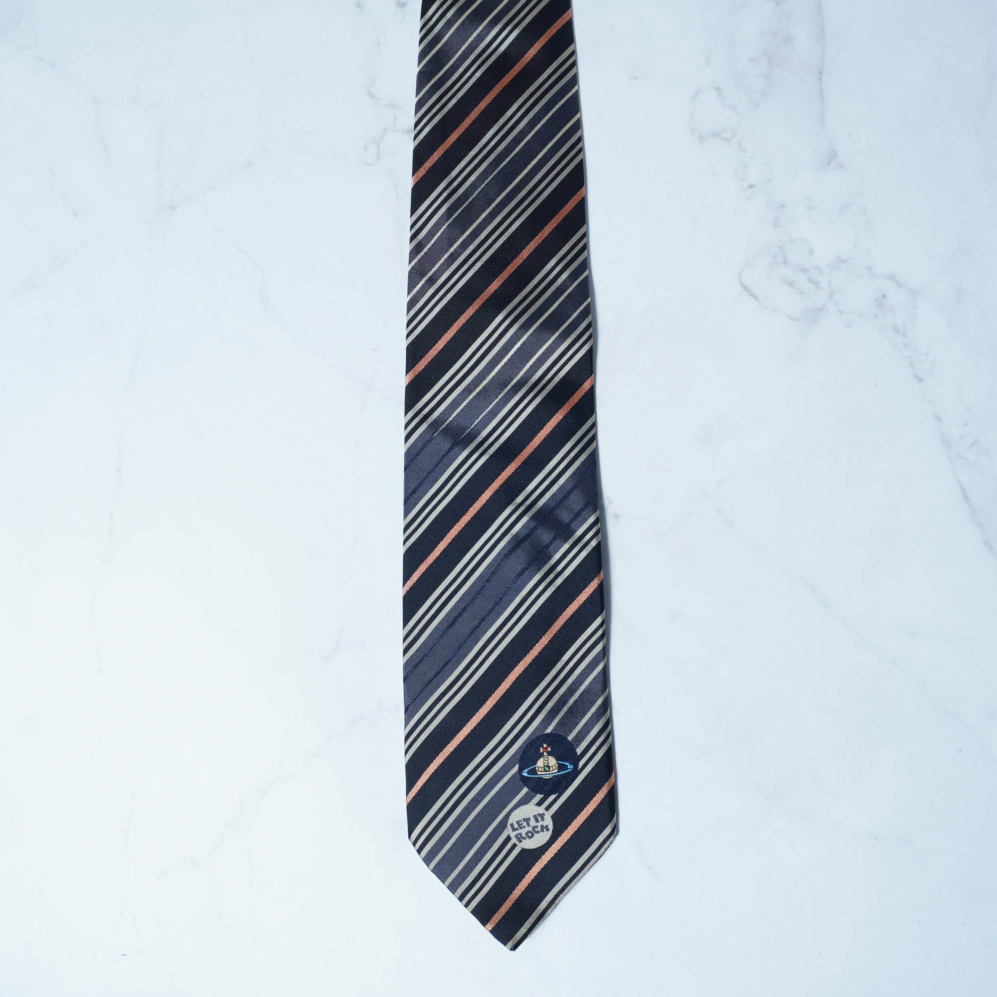【Vivienne Westwood】ヴィヴィアンウエストウッド ”オーブロゴ” LET IT ROCK SILK100% レジメンタルネクタイ black&pink&beige