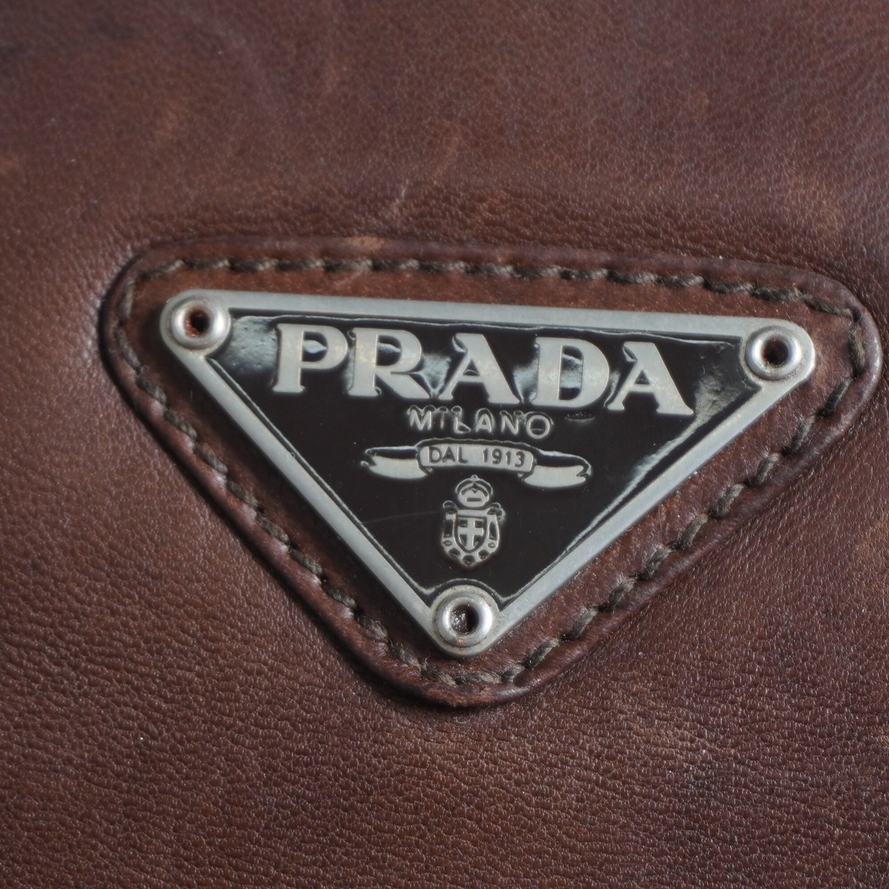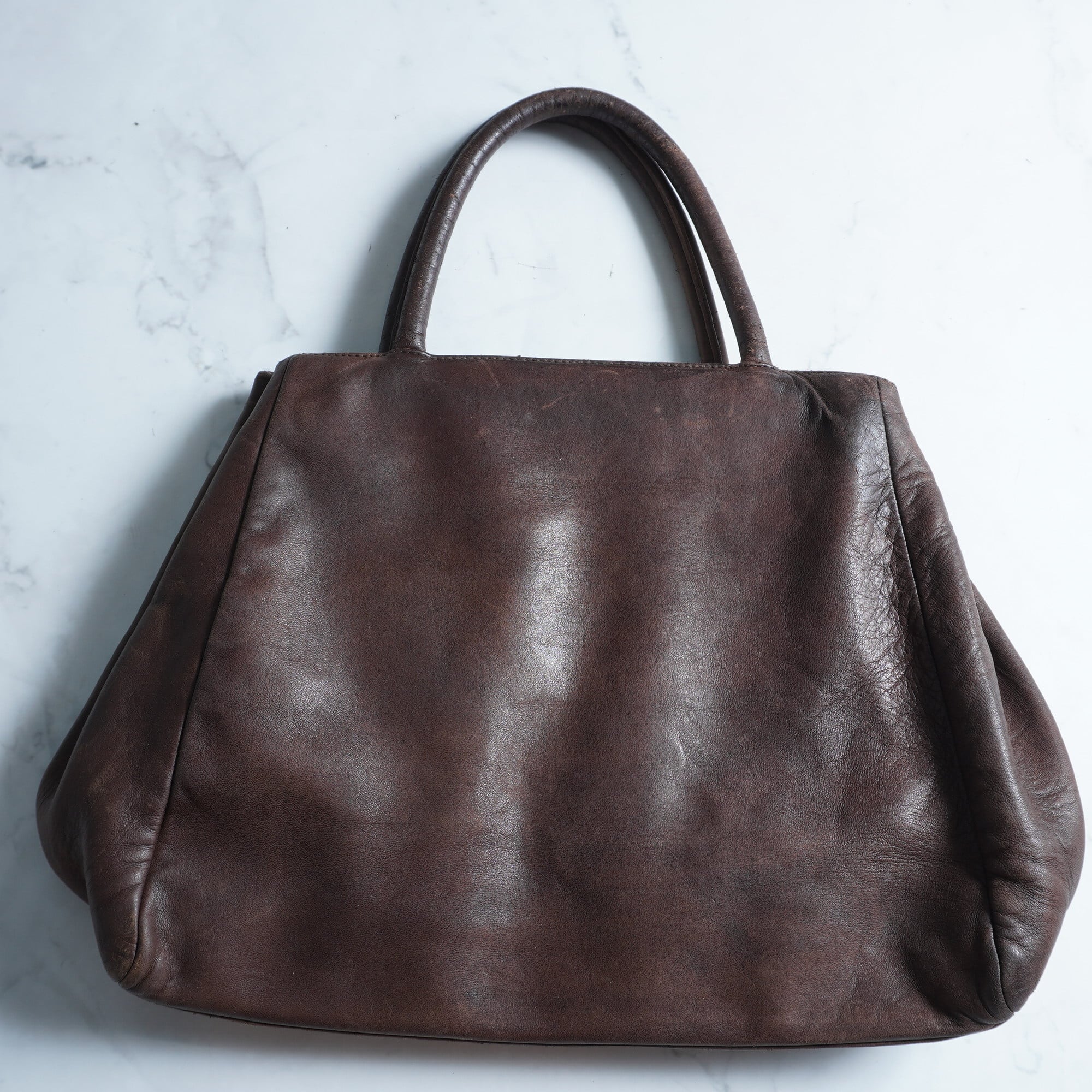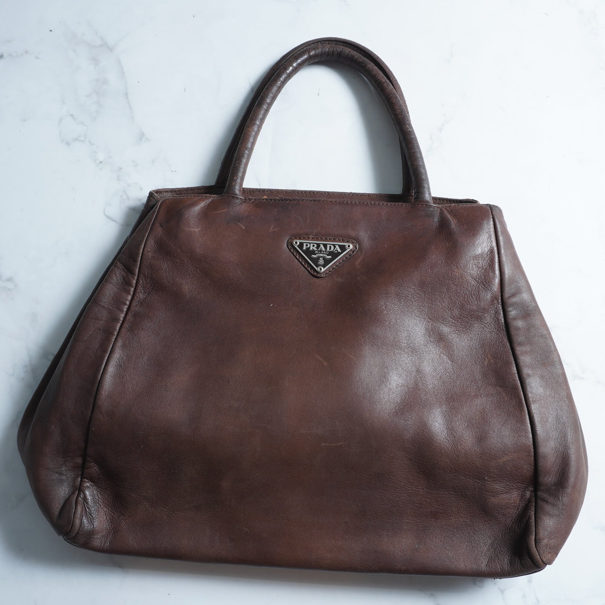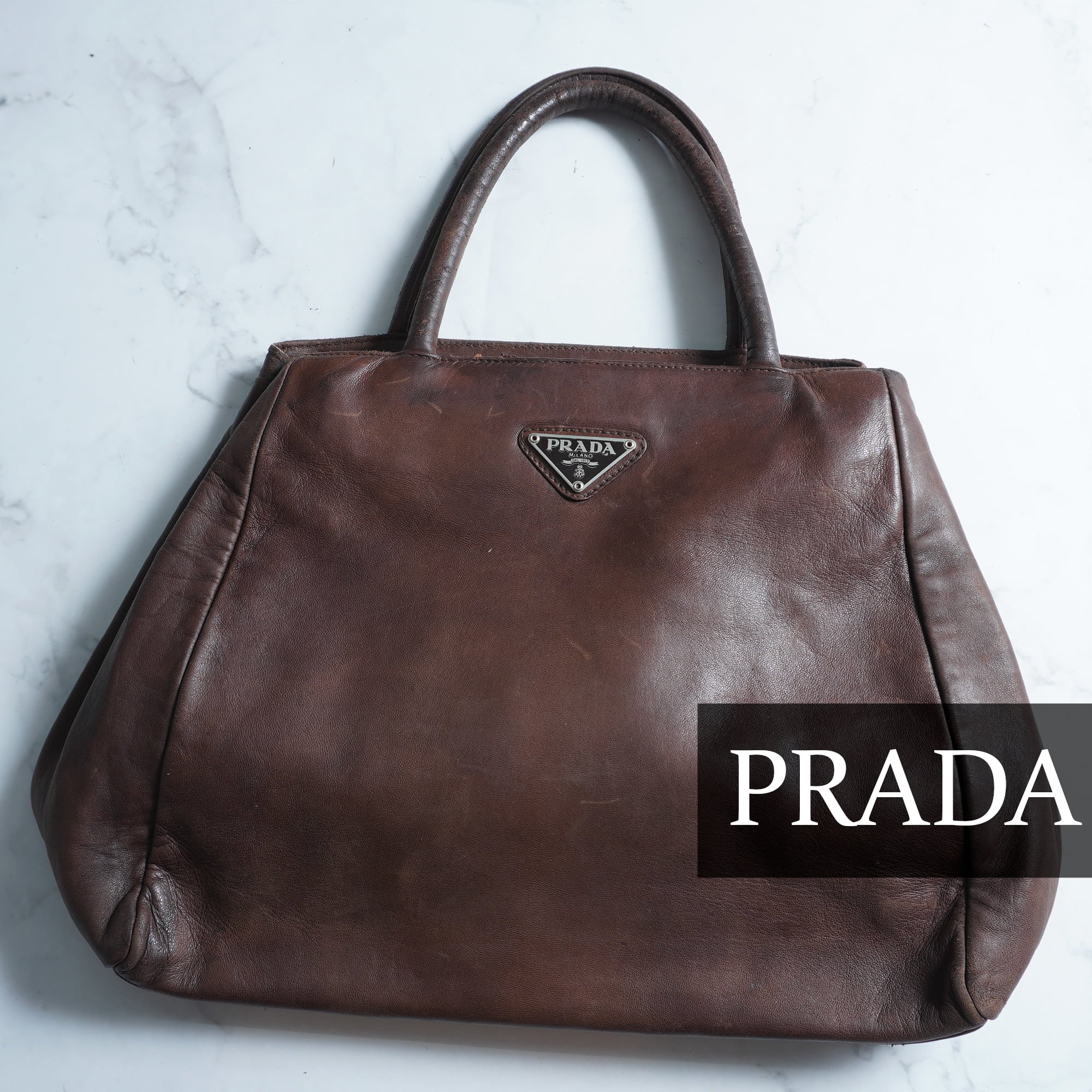 【PRADA】プラダ ナッパレザー 三角ロゴプレートレザーショルダーバッグ tan