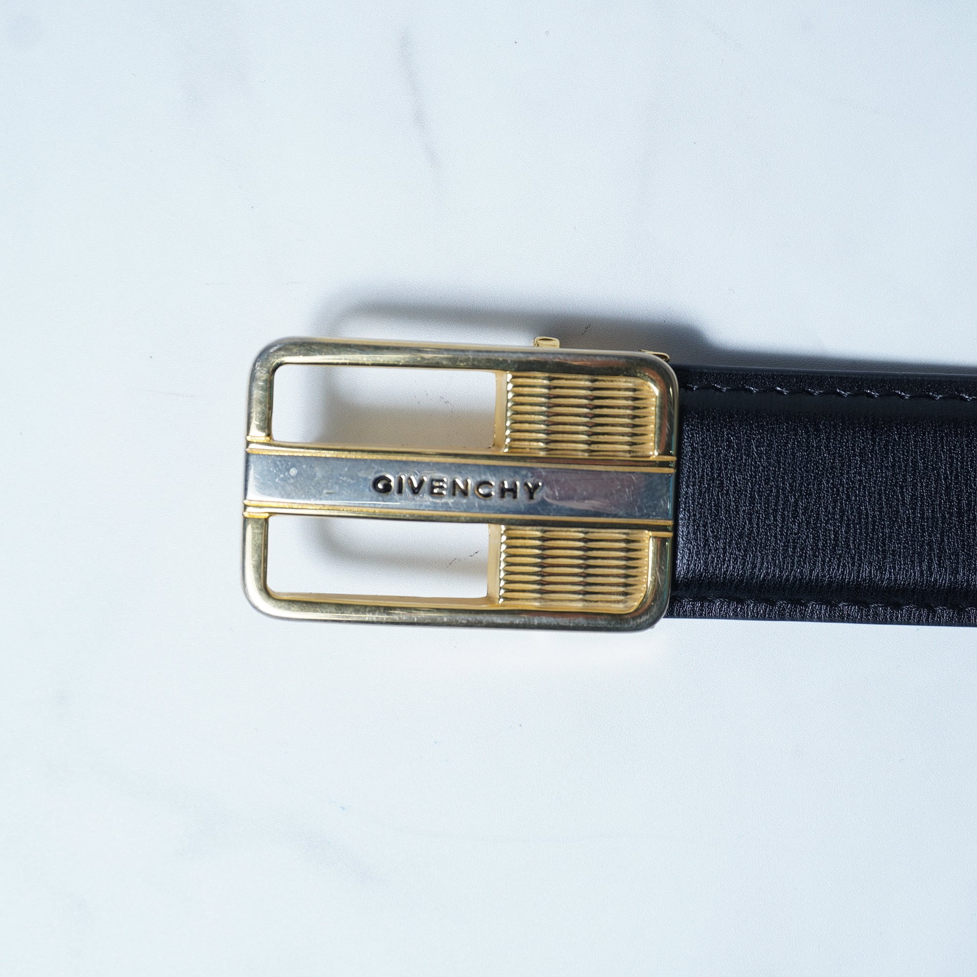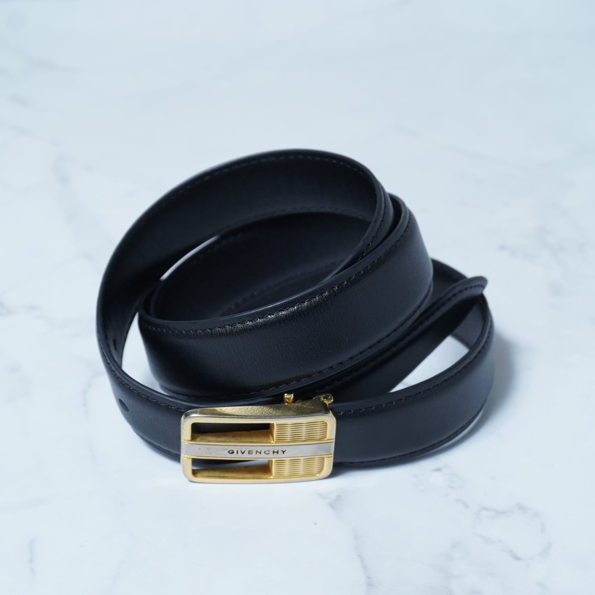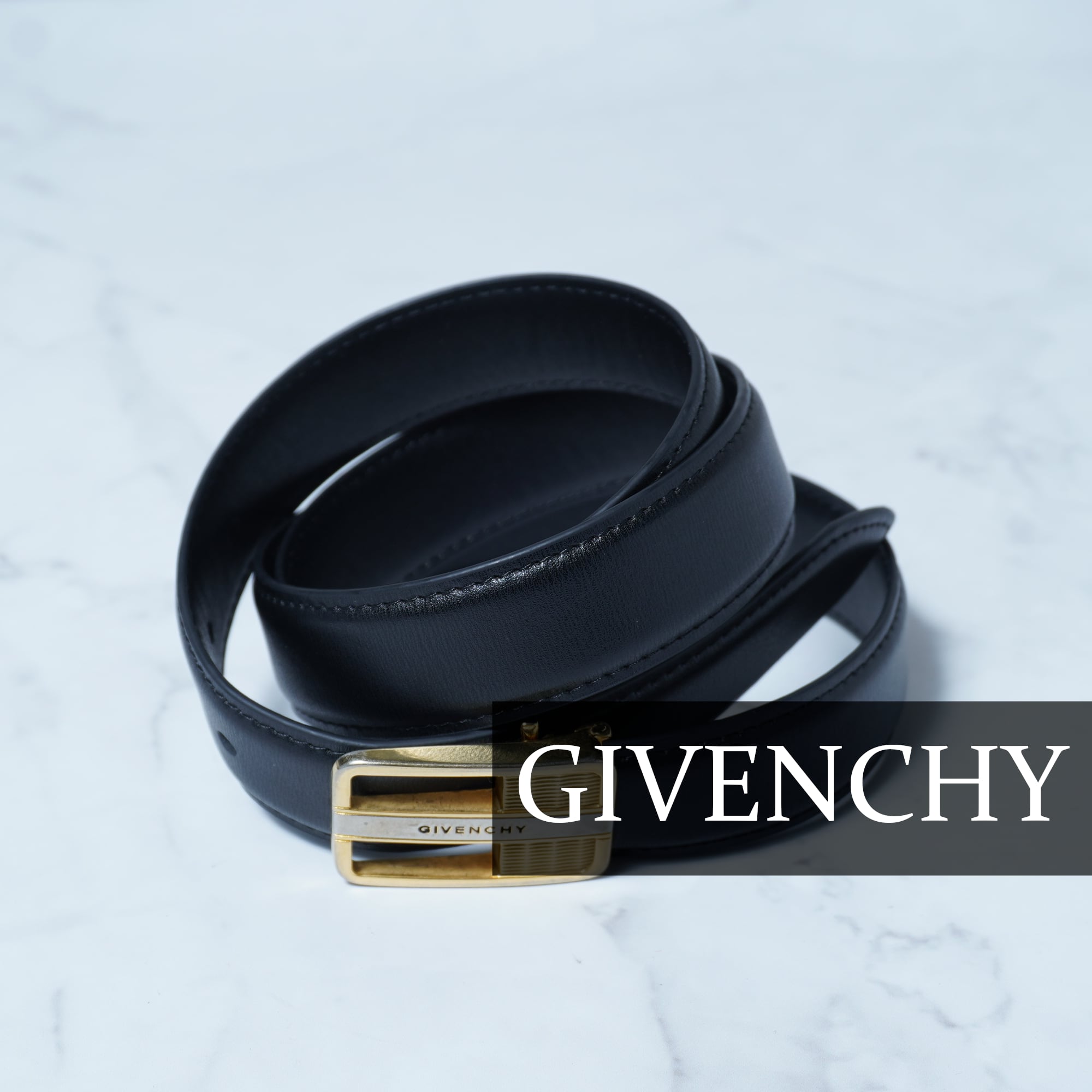 【GIVENCHY】ジバンシー ロゴ入 ゴールドバックルレザーベルト black
