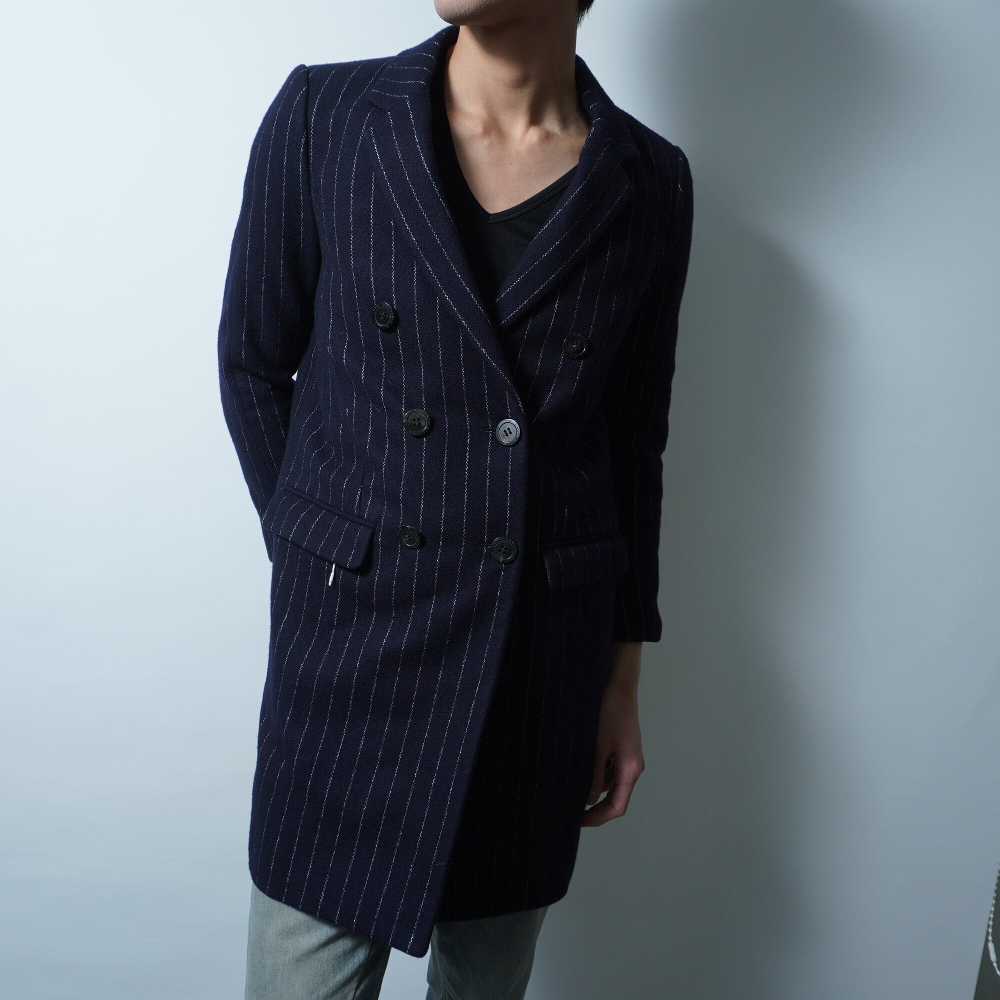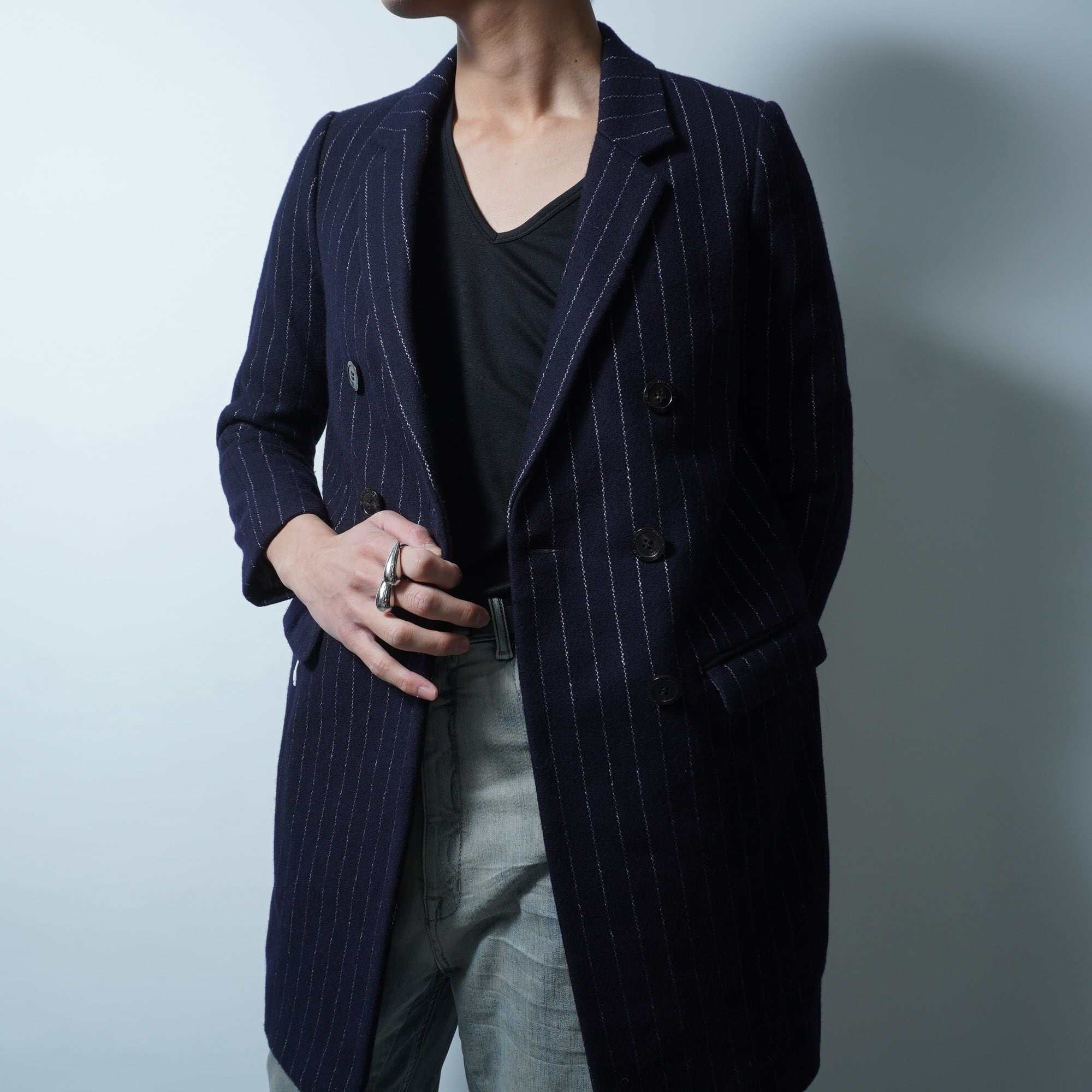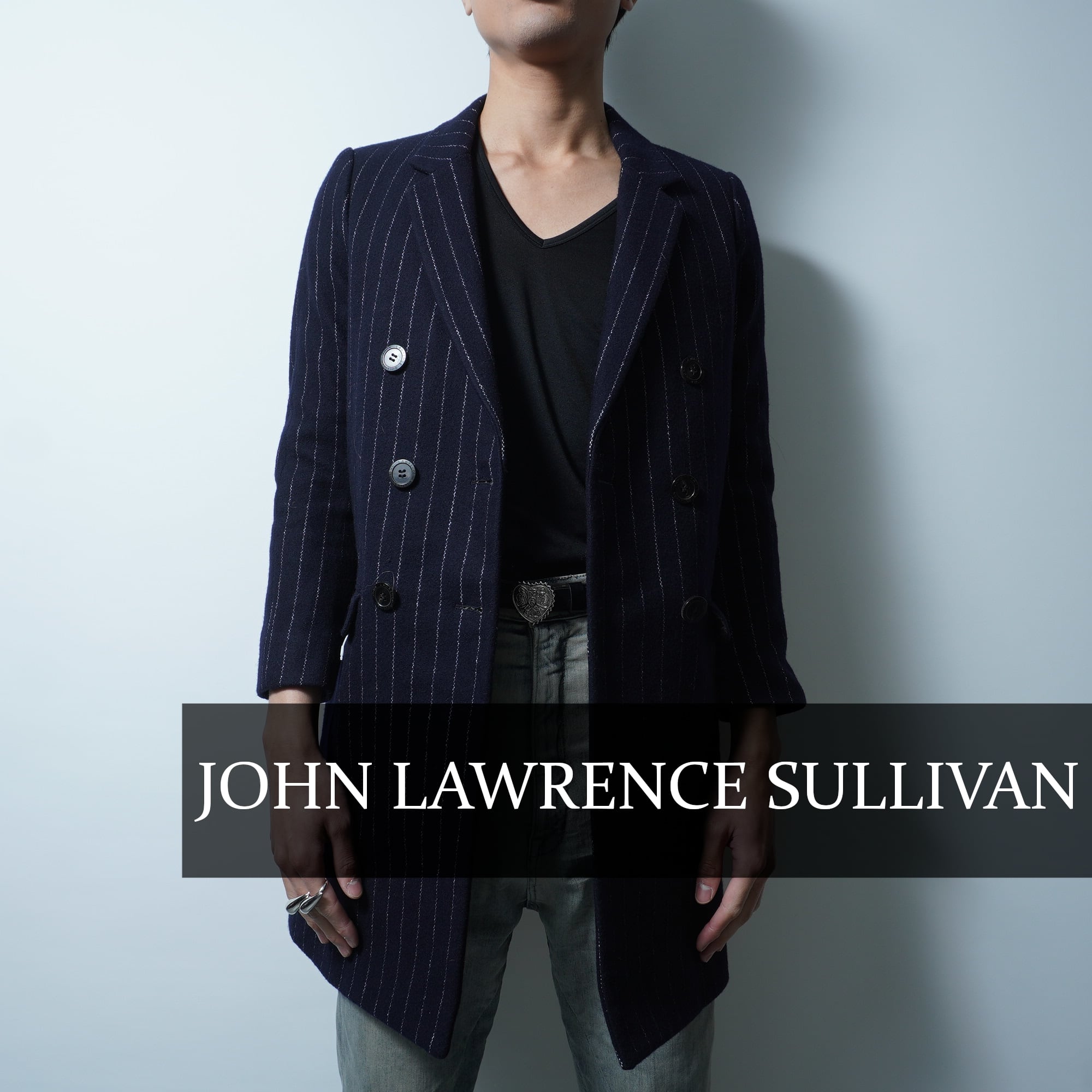 【JOHN LAWRENCE SULLIVAN】ジョンローレンスサリバン 13AWダブルブレストストライプチェスターコート navy