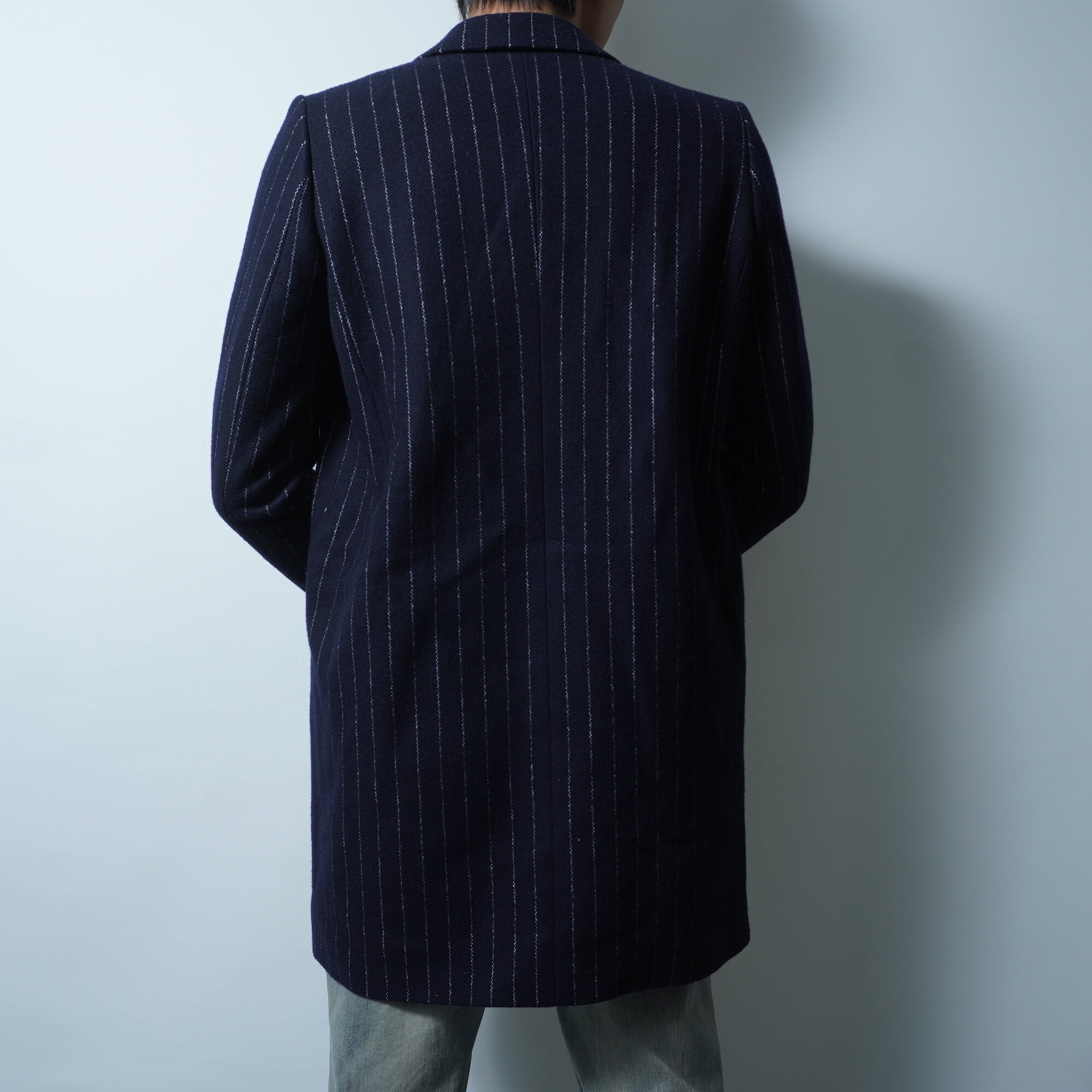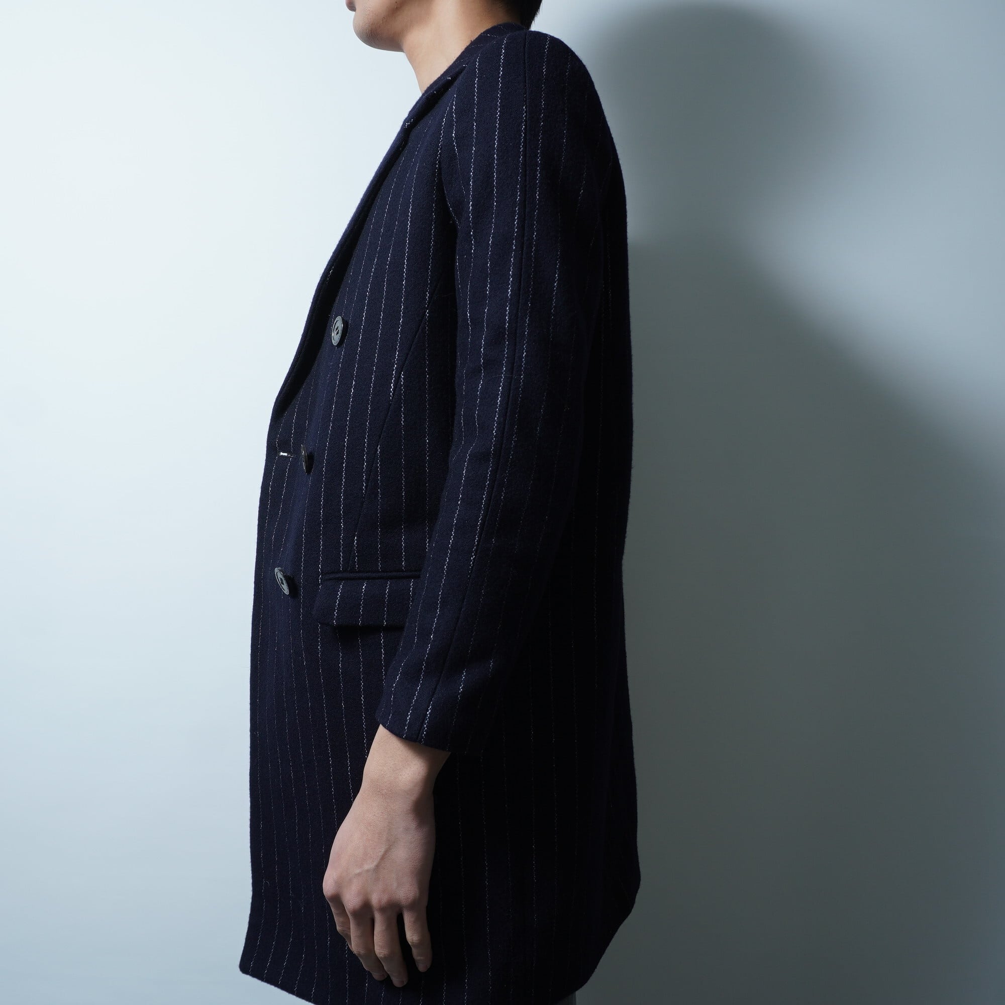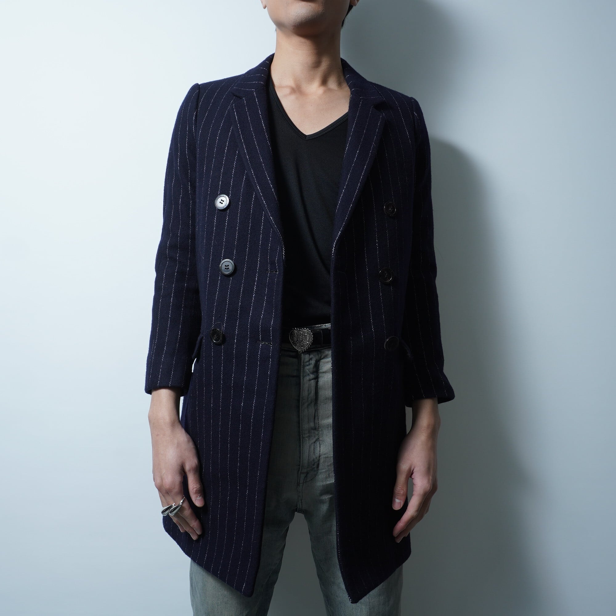 【JOHN LAWRENCE SULLIVAN】ジョンローレンスサリバン 13AWダブルブレストストライプチェスターコート navy