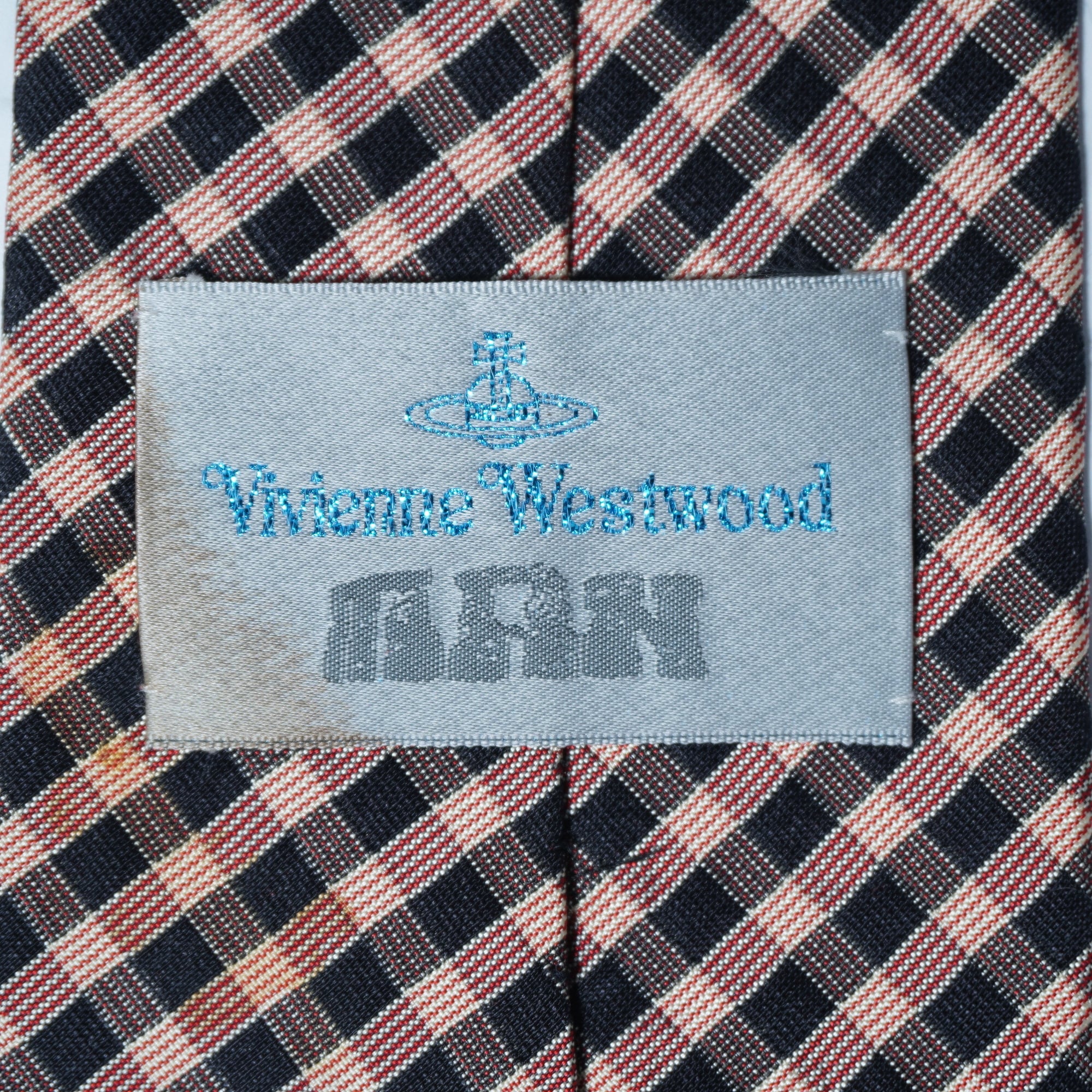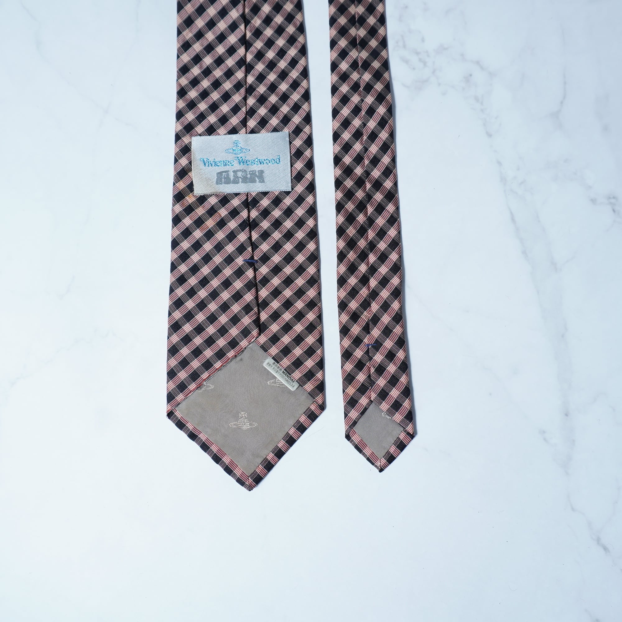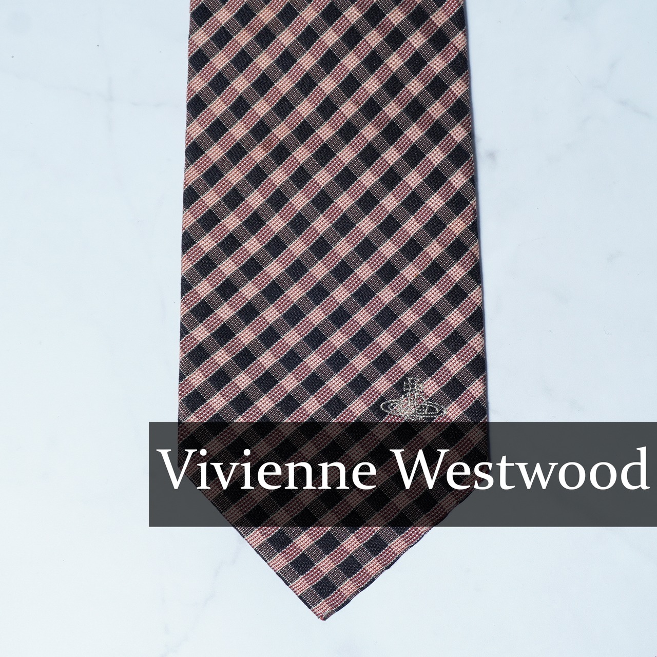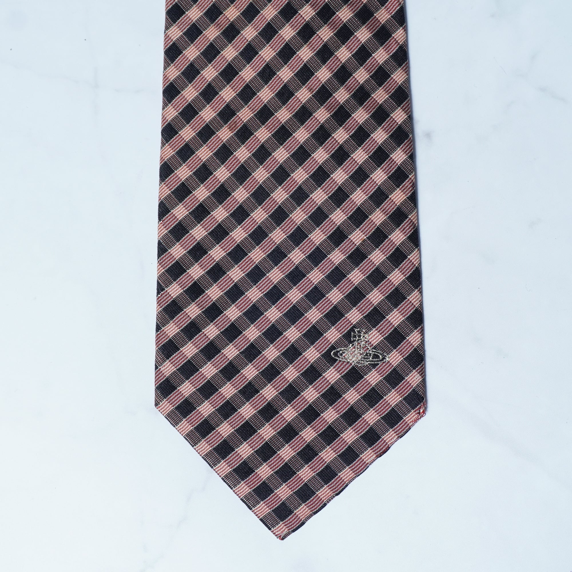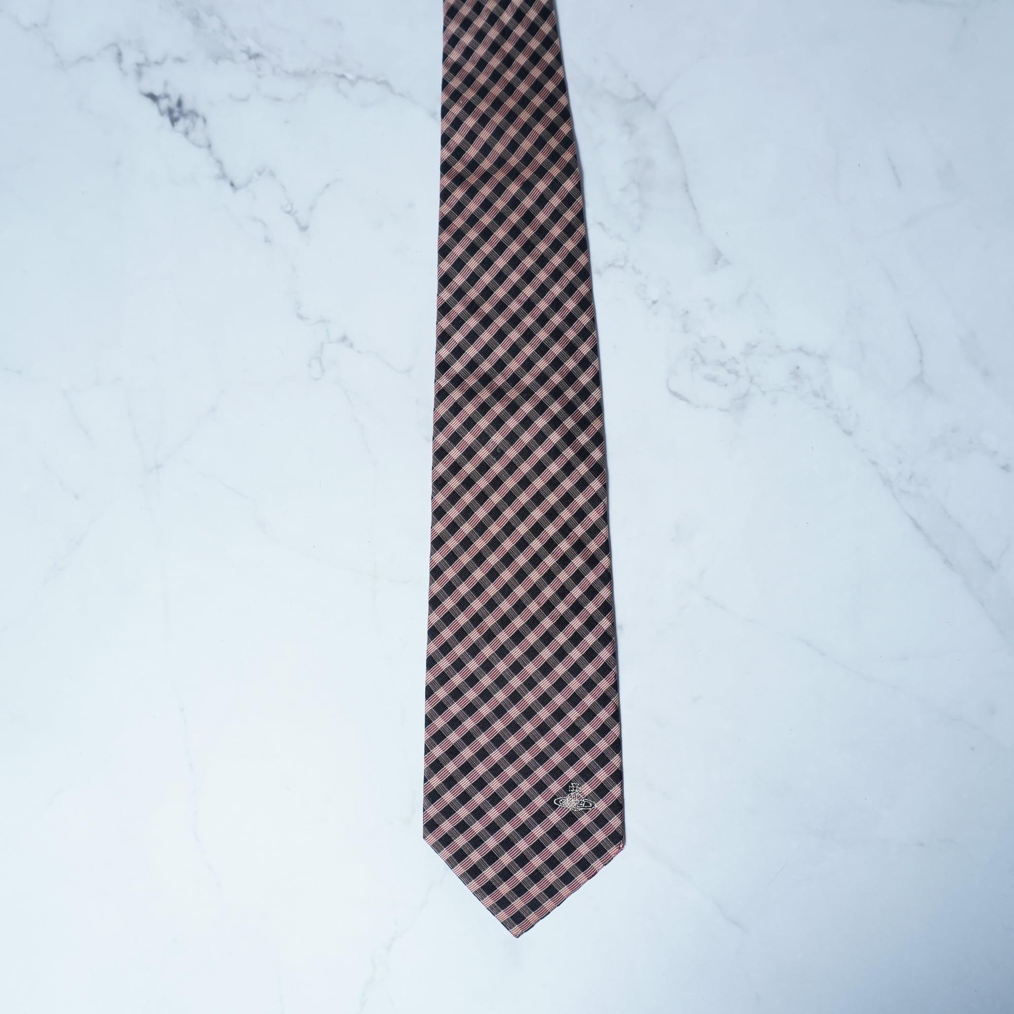【Vivienne Westwood】ヴィヴィアンウエストウッドオーブロゴ刺繡 クロスチェックウール混シルクネクタイ black&red