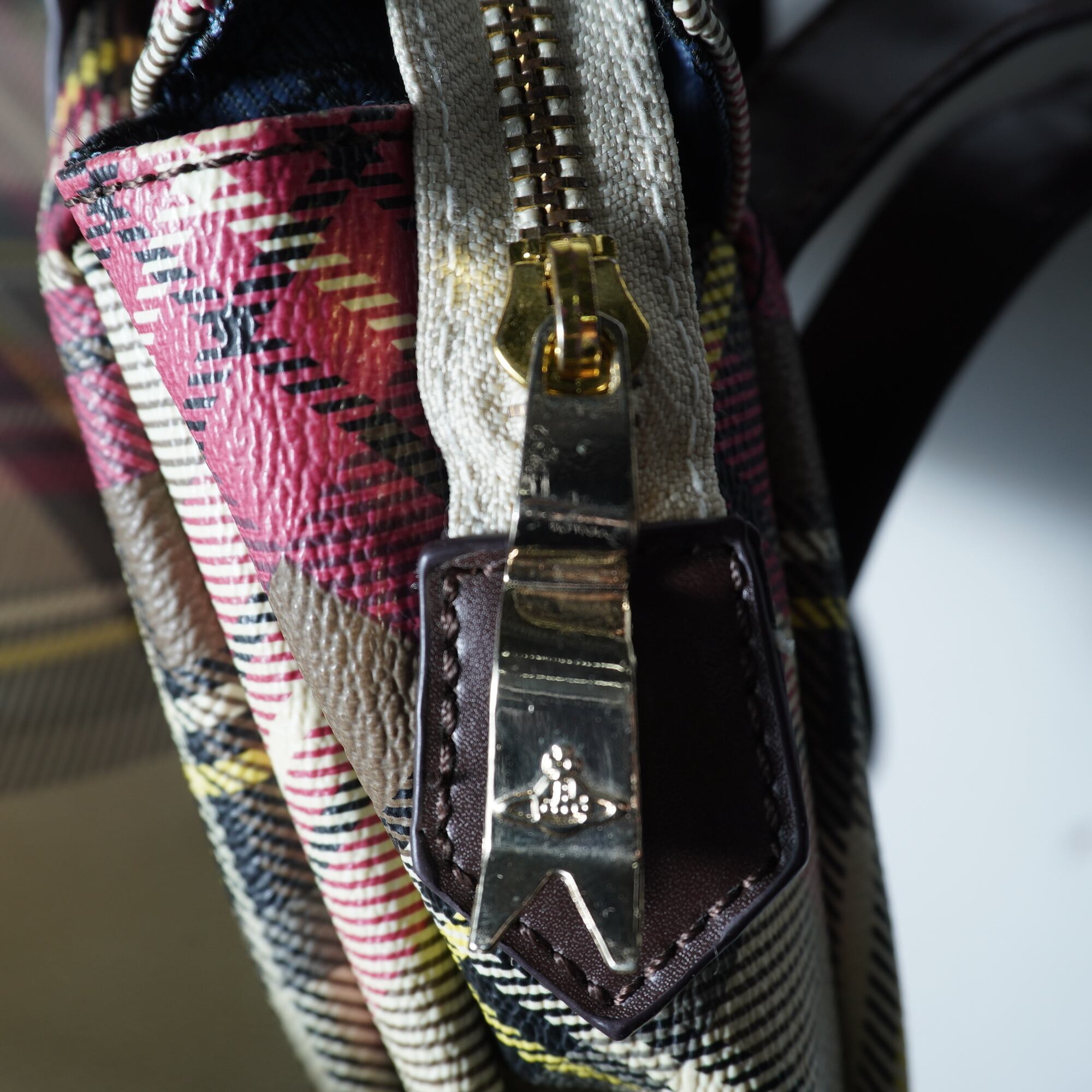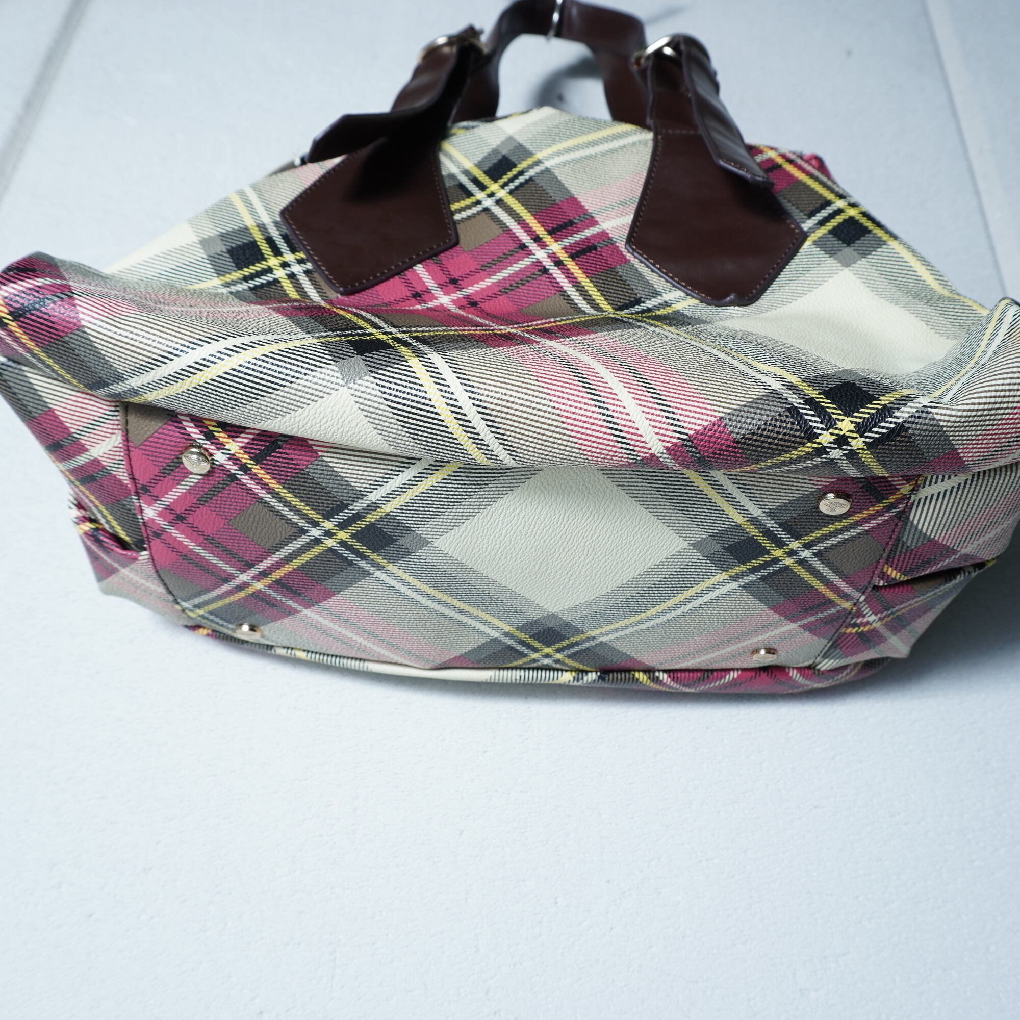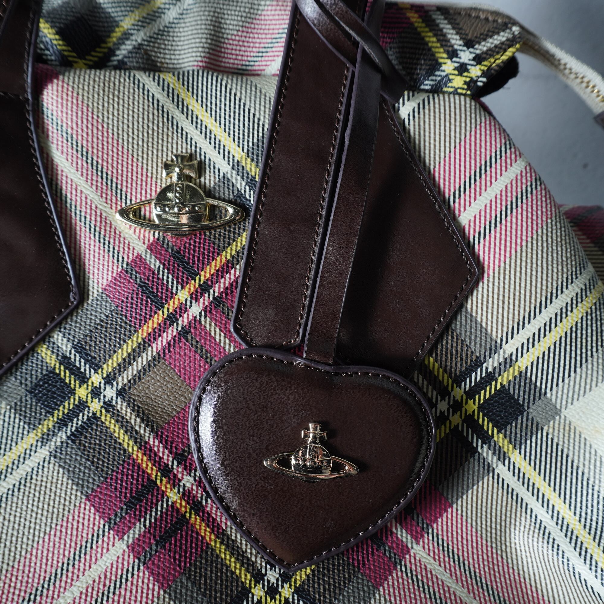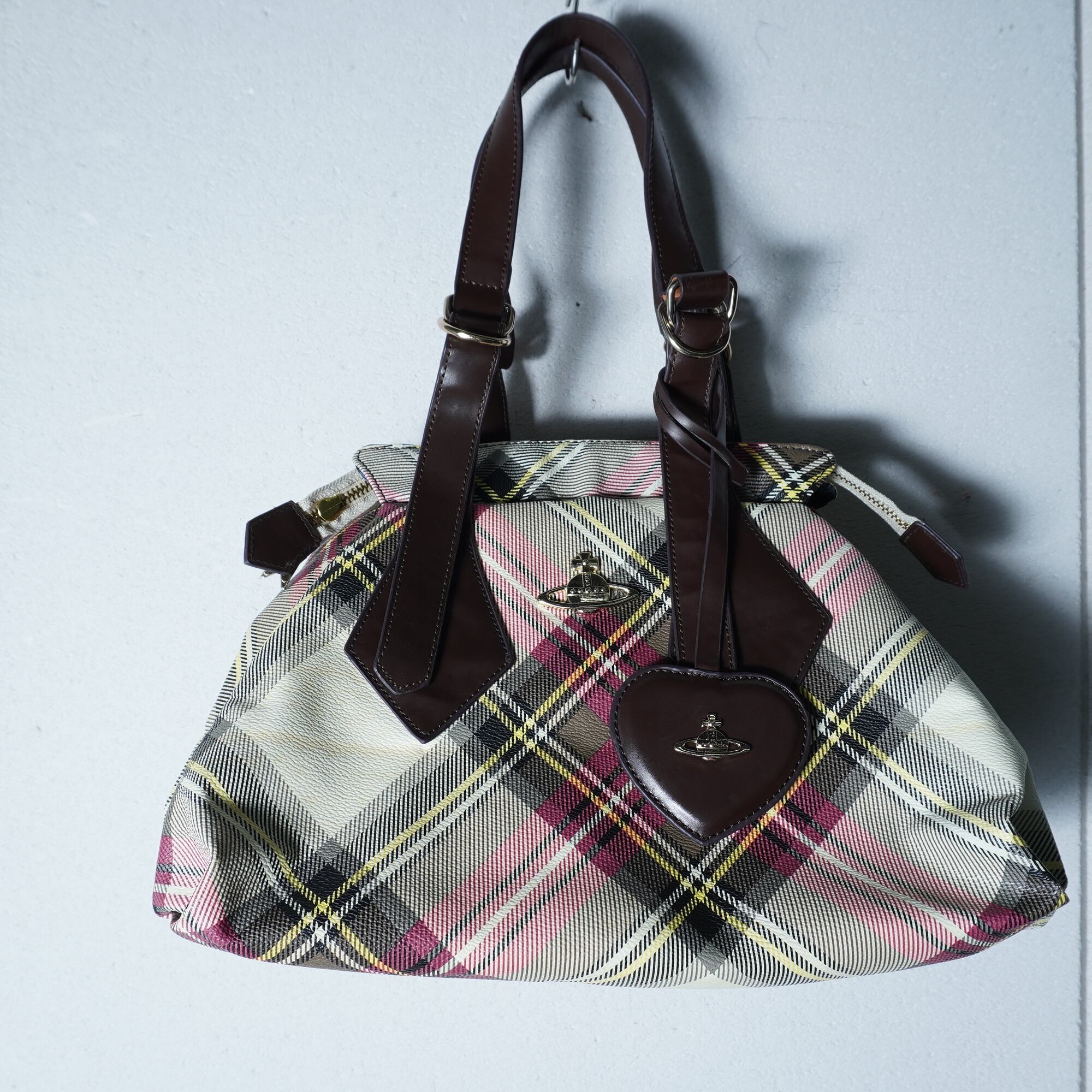 【Vivienne Westwood】ヴィヴィアンウエストウッド "オーブロゴ" ヤスミンリアルレザークロスチェックハンドバッグ red&beige&yellow