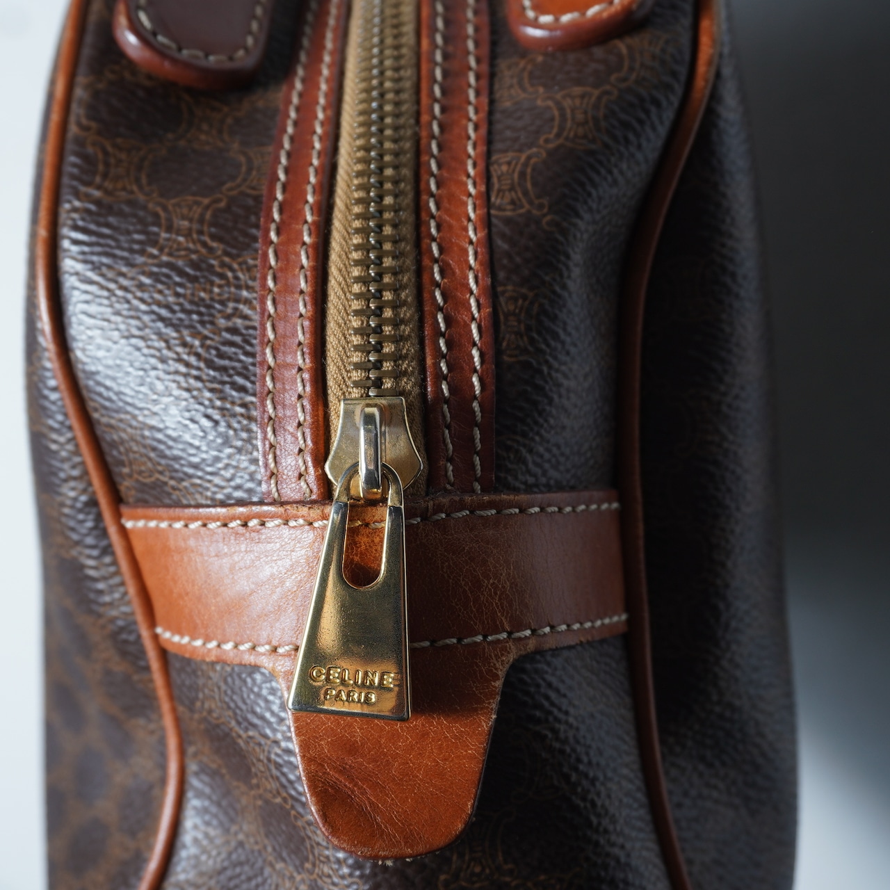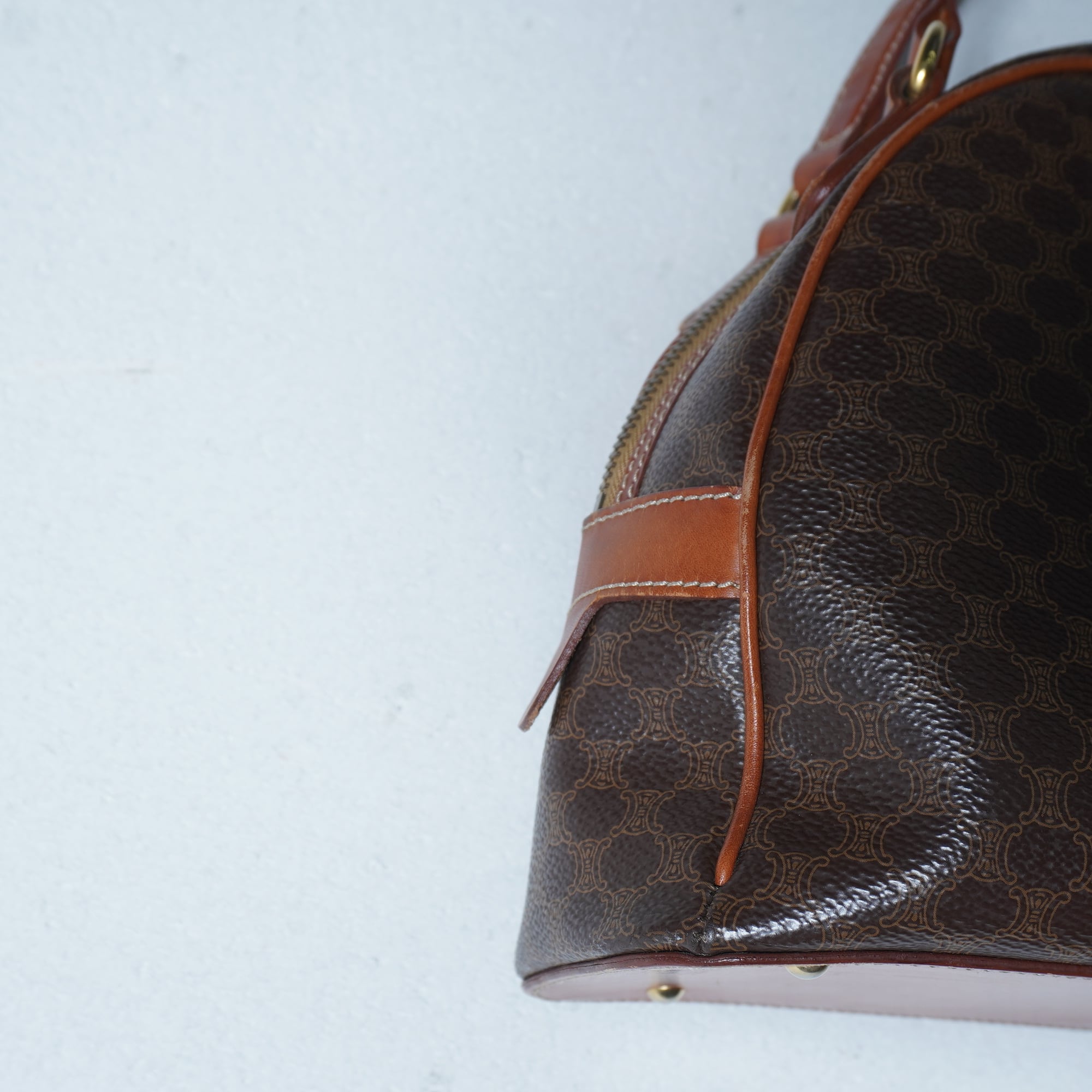 【CELINE】セリーヌ ”トリオンフロゴ” マカダム柄レザーハンドバッグ brown