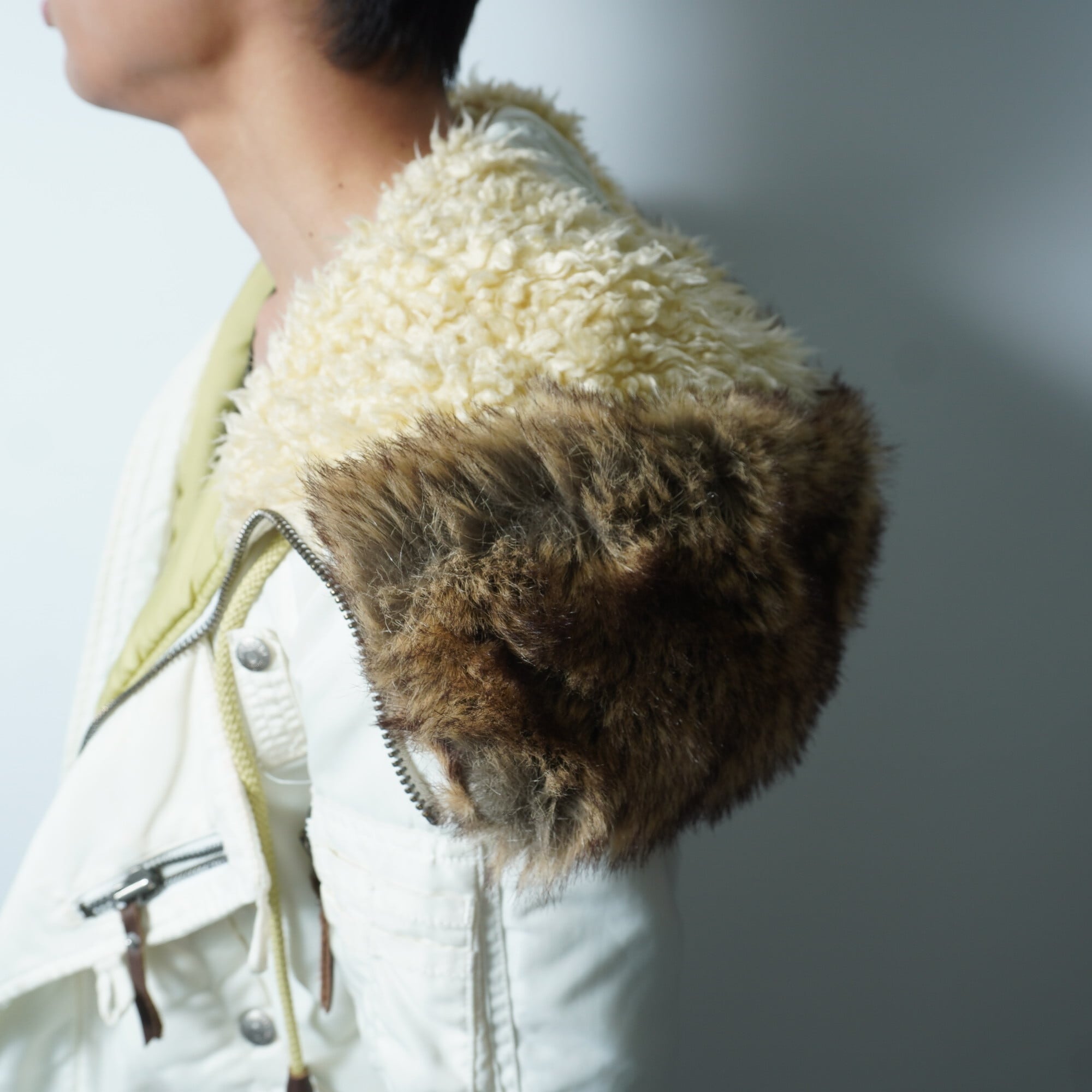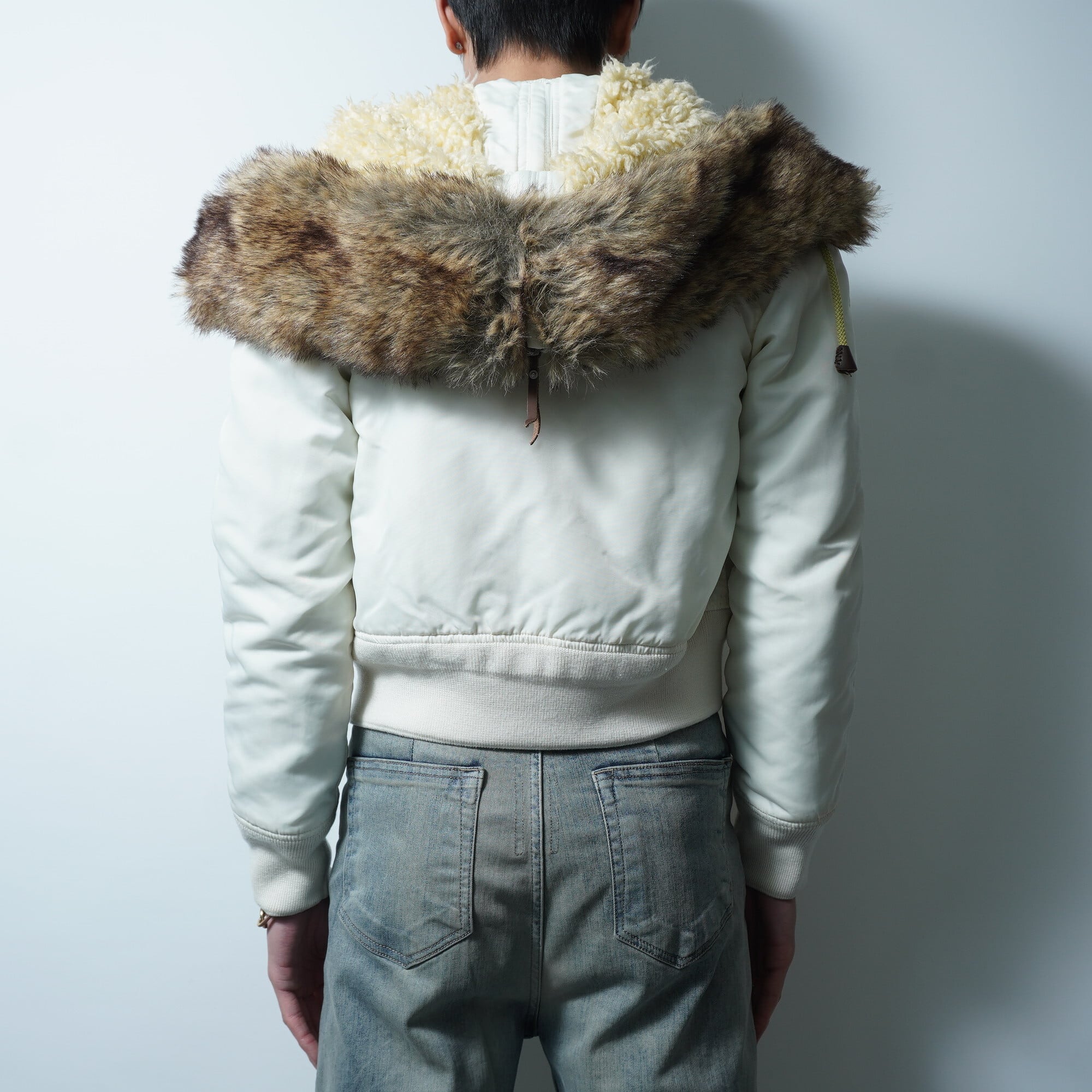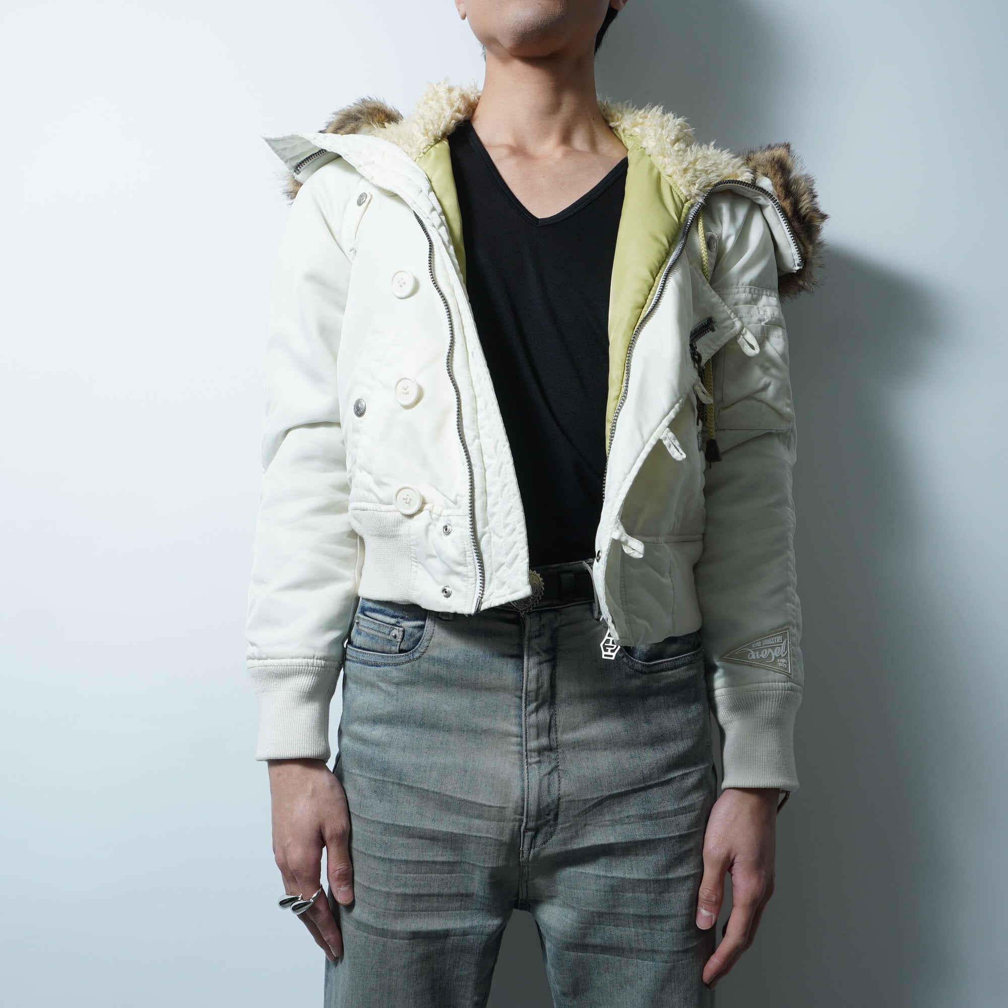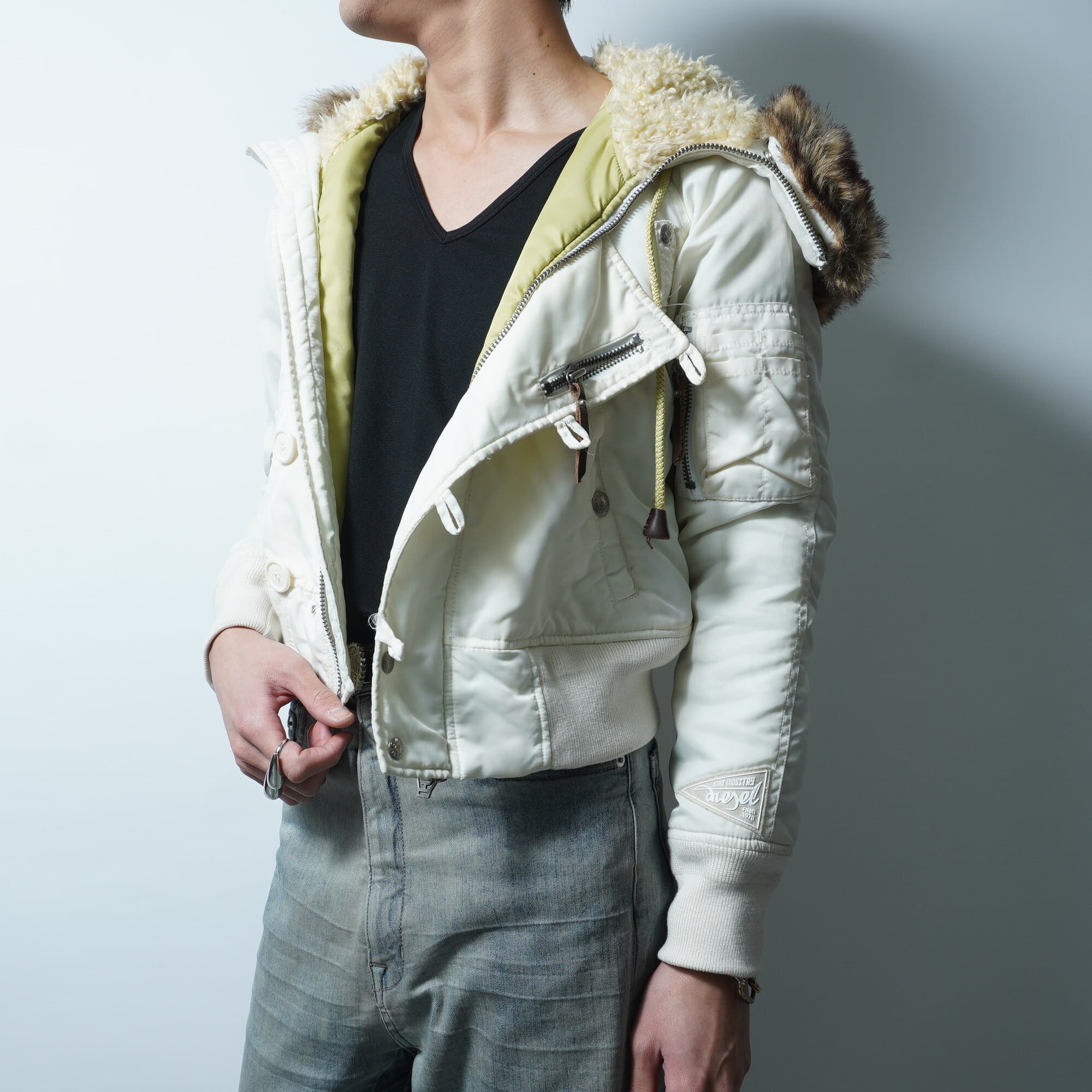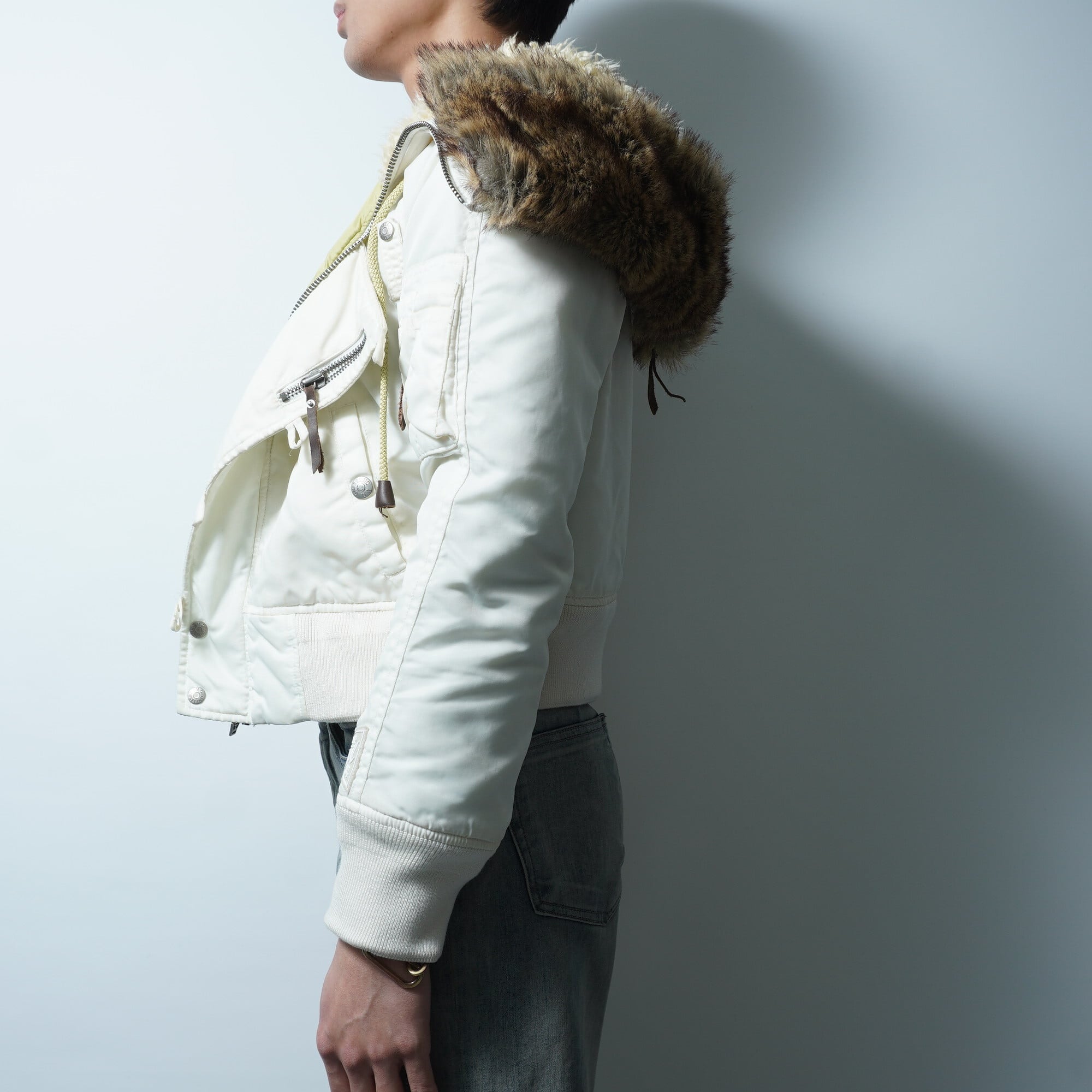 【DIESEL】ディーゼル フードボア&フェイクファー中綿ナイロンN2Bジャケット white