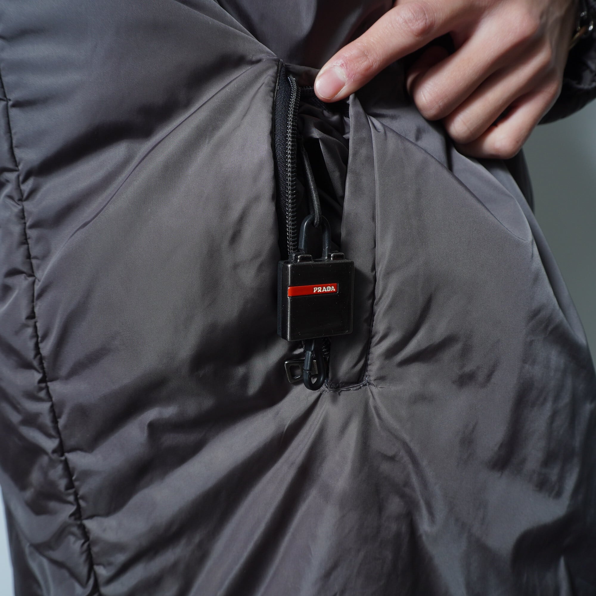 【PRADA】プラダ アーカイブ nylon中綿ダブルジップロングコート charcoal