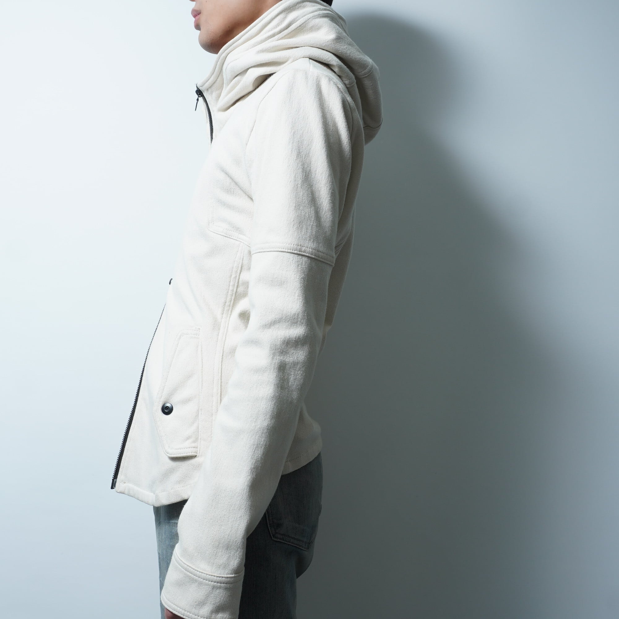 【NO ID.】ノーアイディ 14's ニットデニムZIPUPフーデッドブルゾン ivory