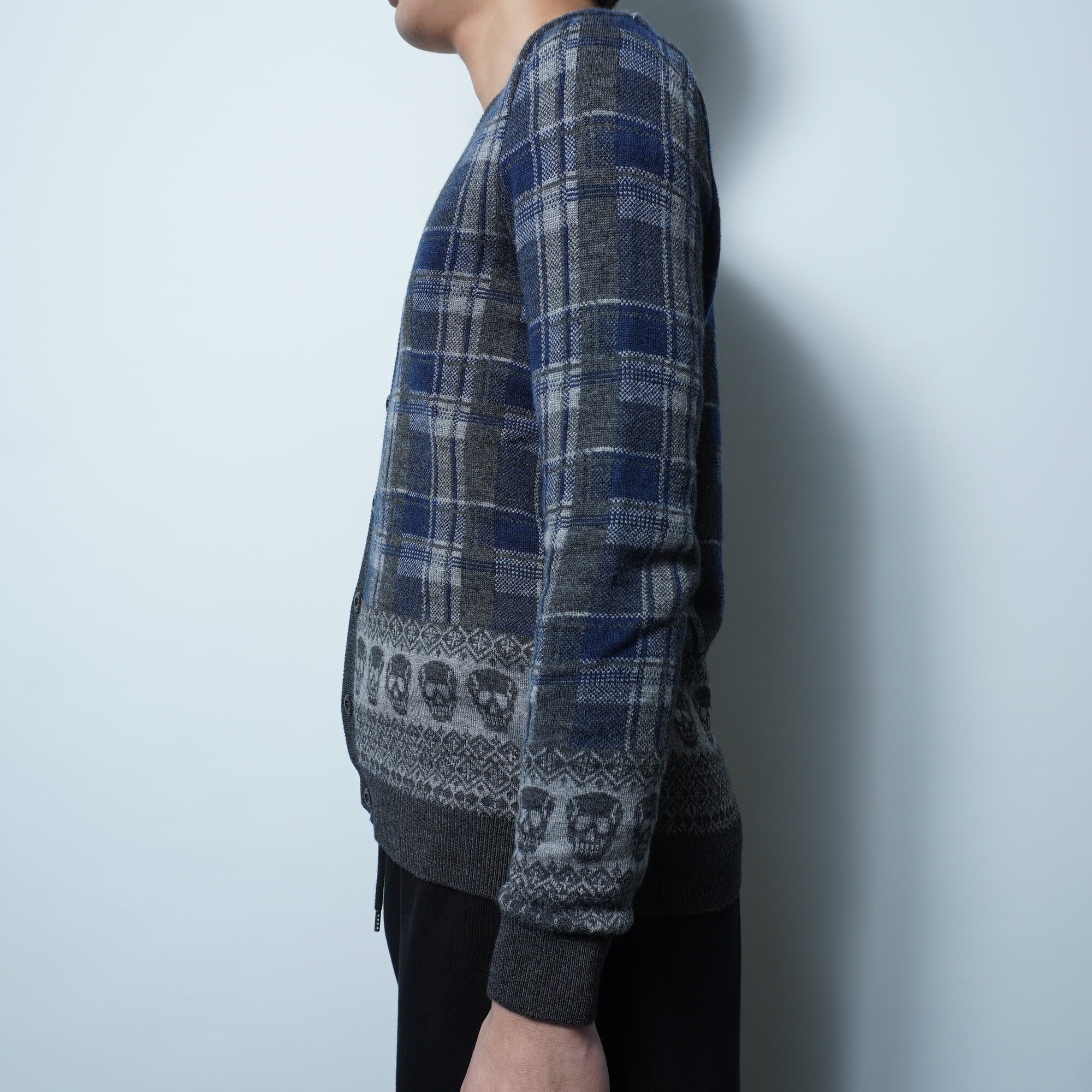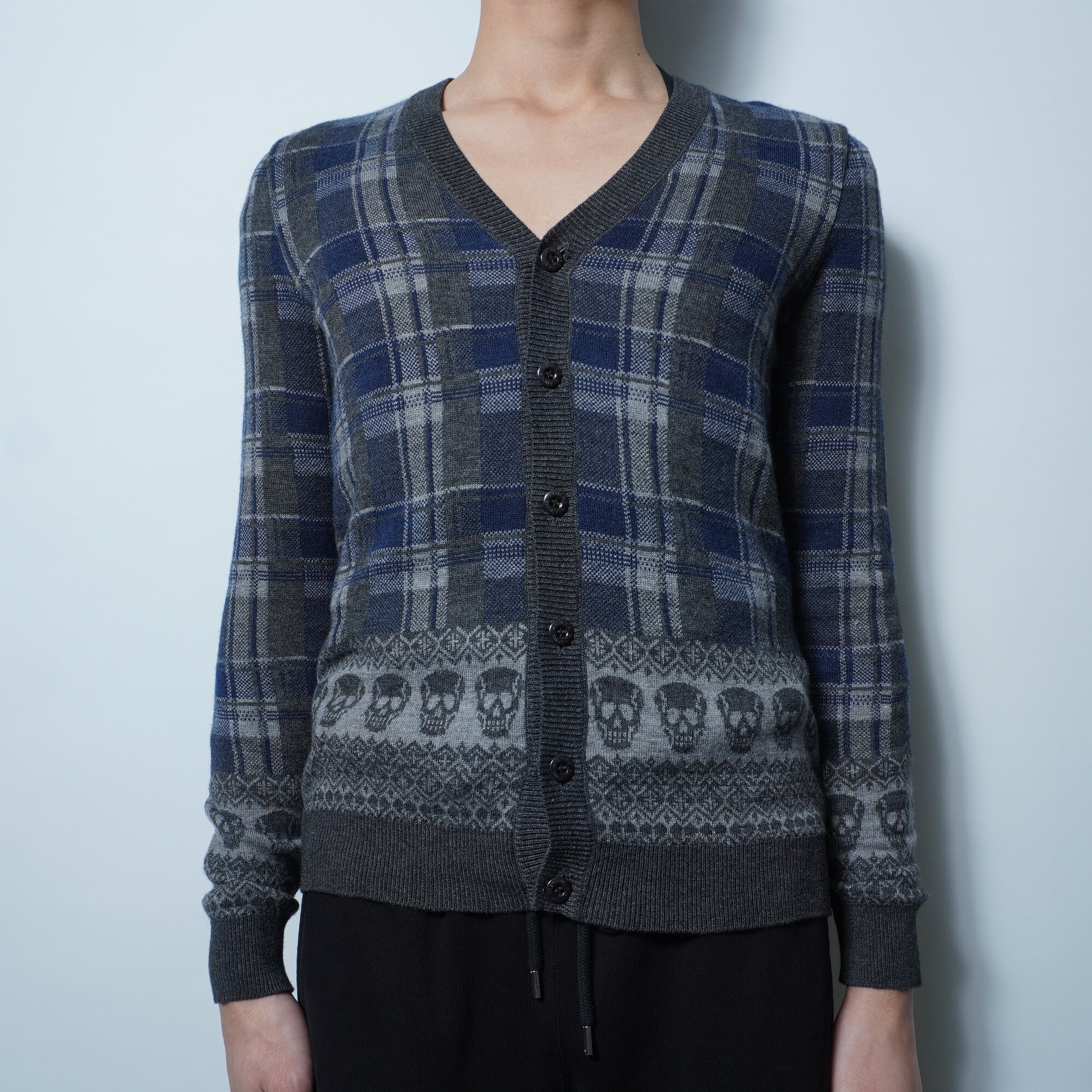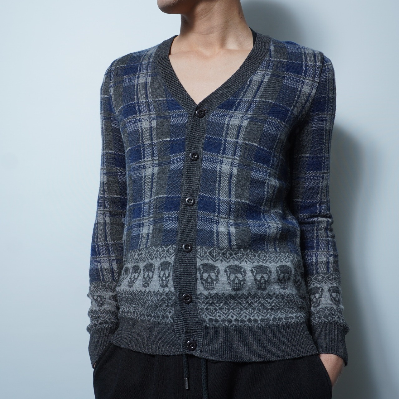 HYSTERIC GLAMOUR "Y2K" 木村拓哉着 "ドクロ・チェック柄カシミア・アンゴラ混ウールカーディガン gray&blue