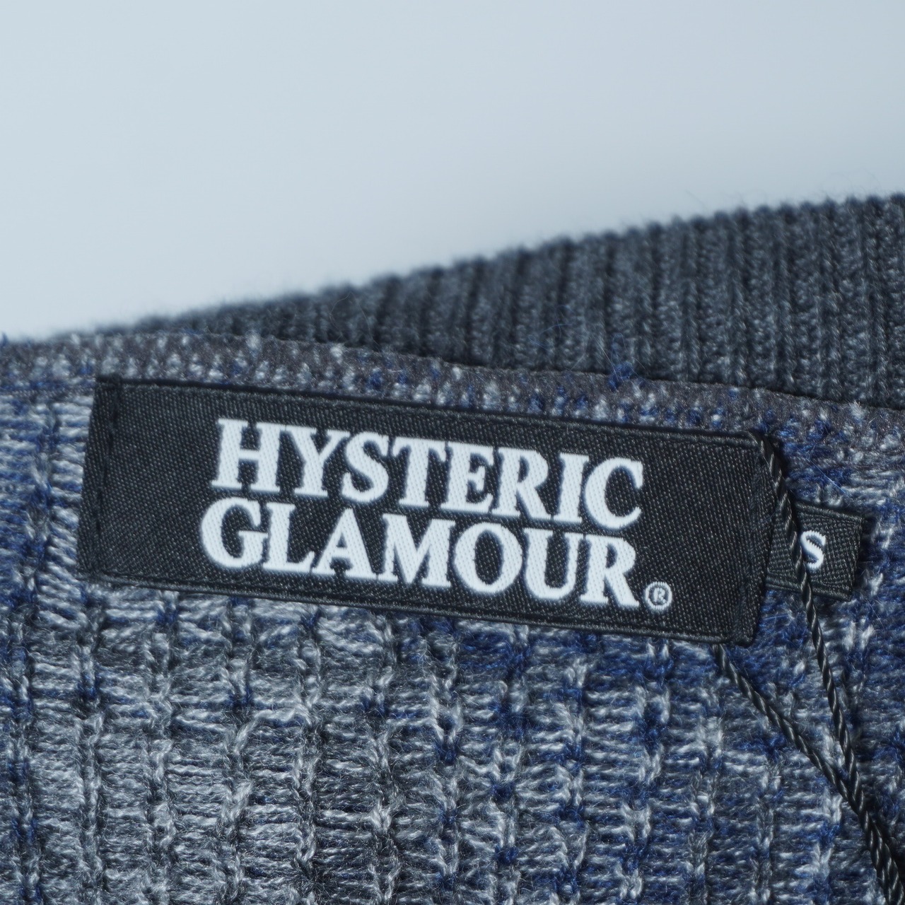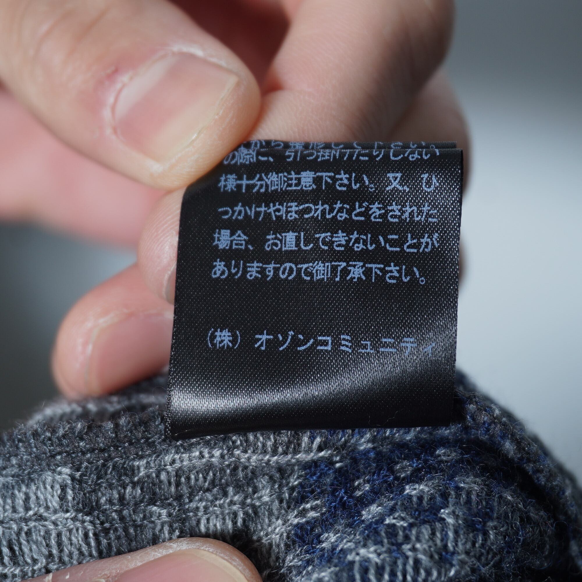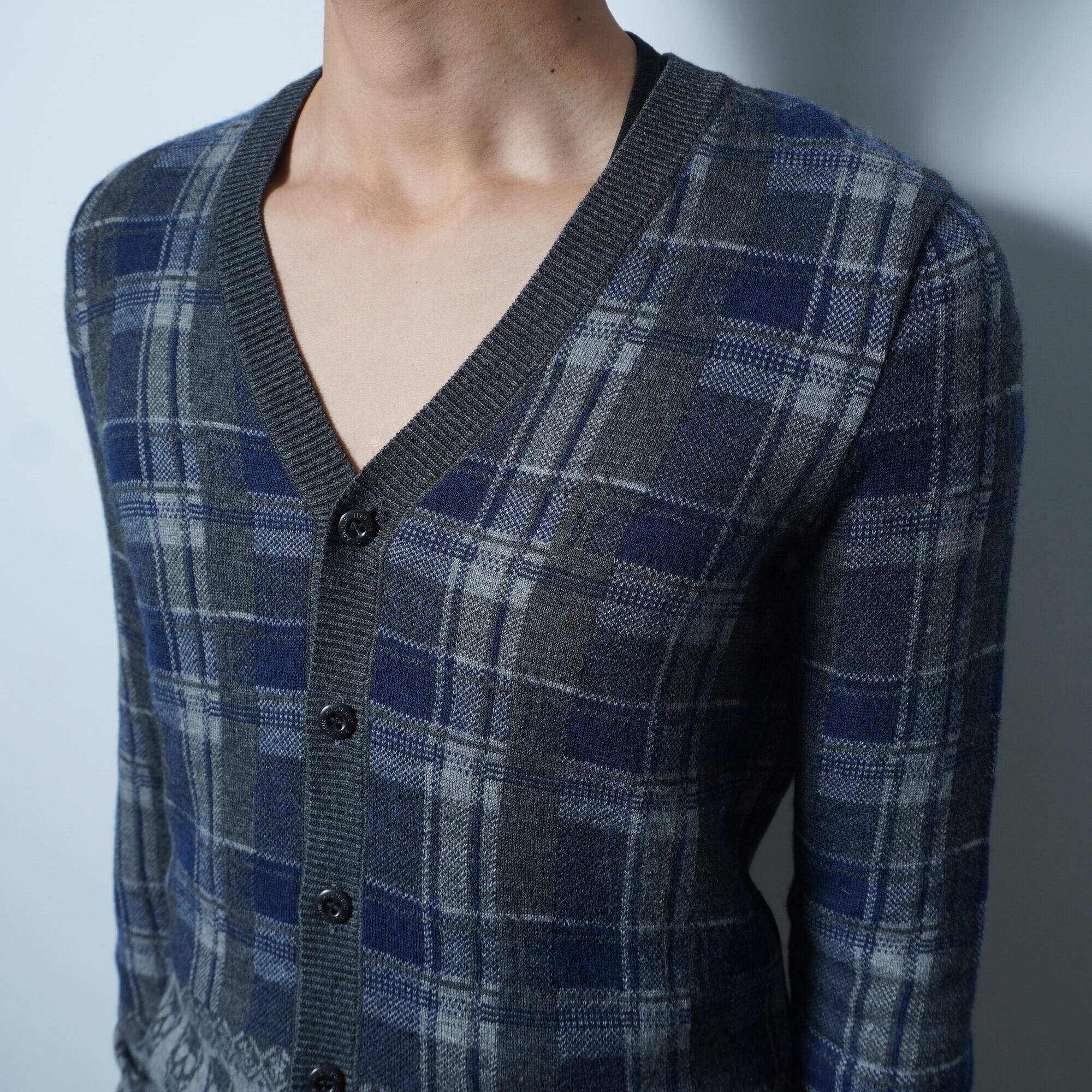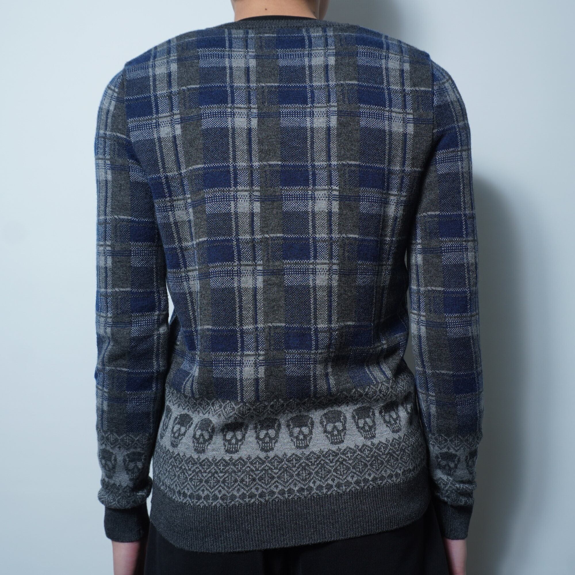 HYSTERIC GLAMOUR "Y2K" 木村拓哉着 "ドクロ・チェック柄カシミア・アンゴラ混ウールカーディガン gray&blue