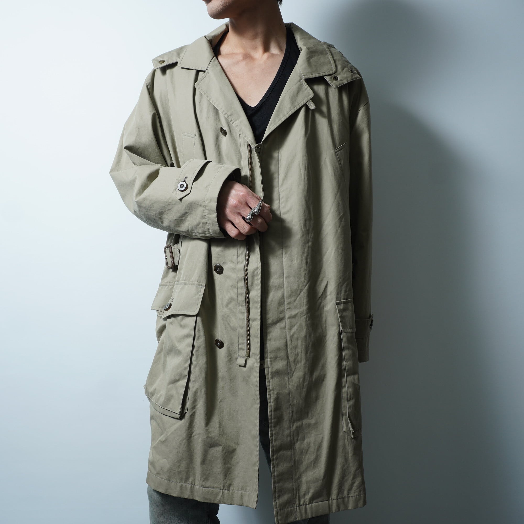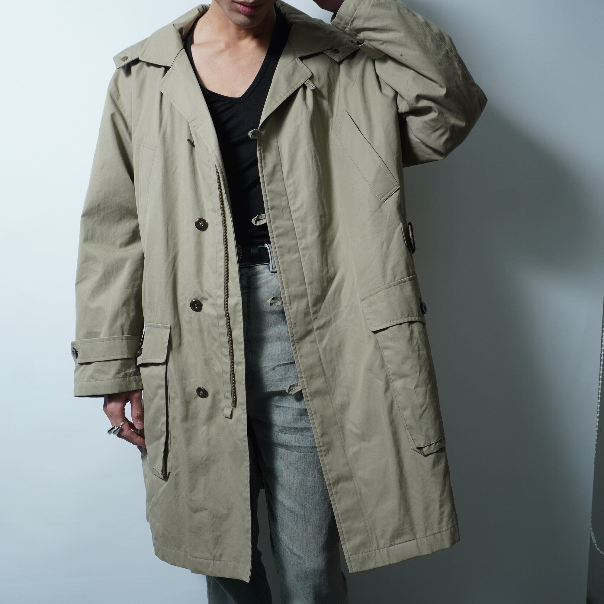 BURBERRY 裏地ノバチェックライナー付きベルトデザインフーデットコットンコート 3L beige